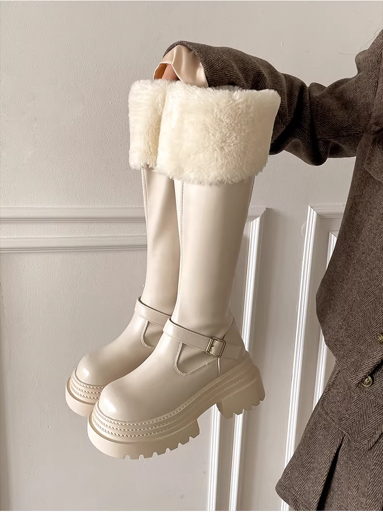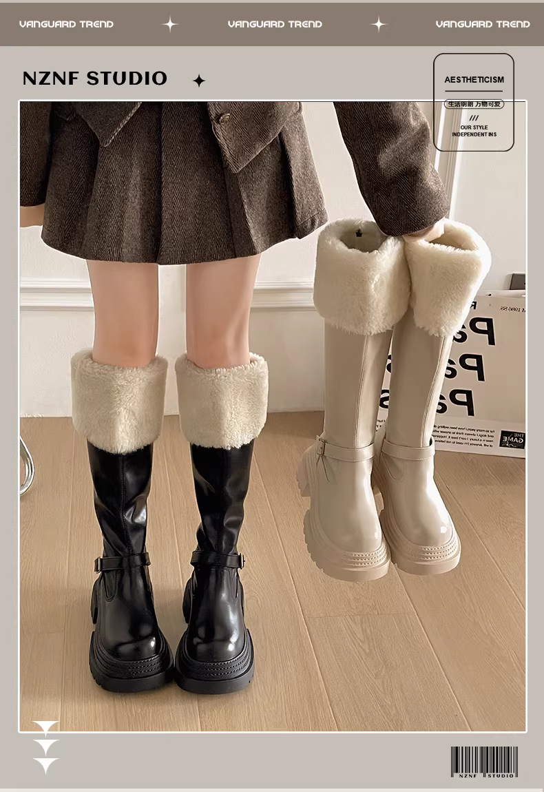 Giày bốt tuyết nữ đế dày lót lông ấm áp kiểu Anh, tăng chiều cao, chống trơn trượt, chất liệu bông dày dặn, mẫu mới mùa đông 2025