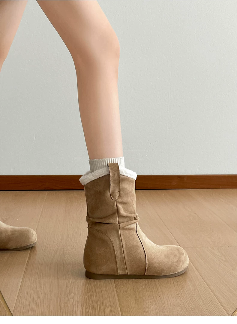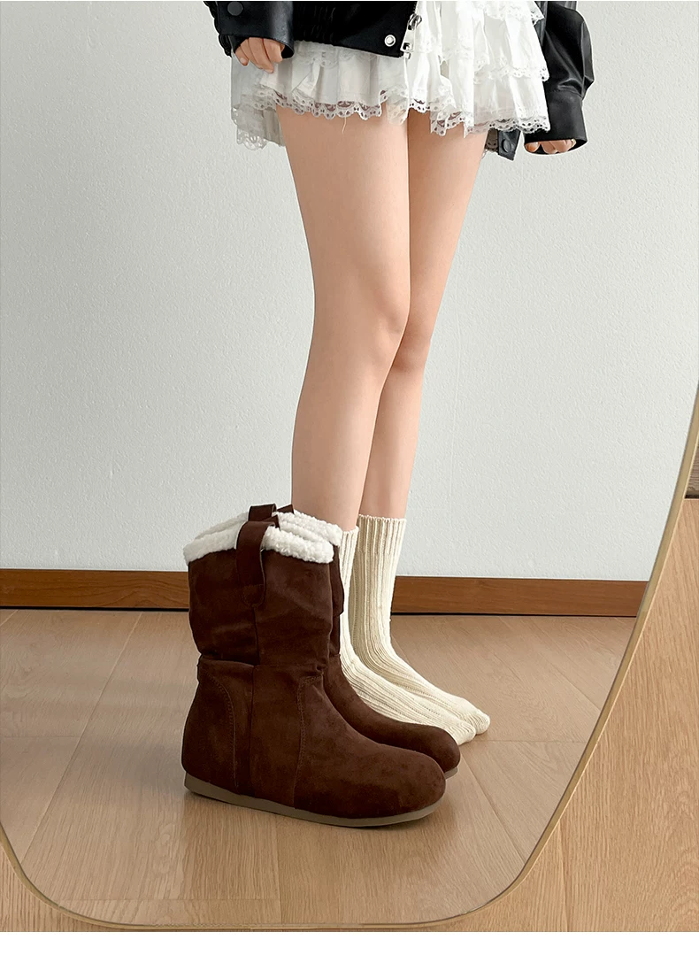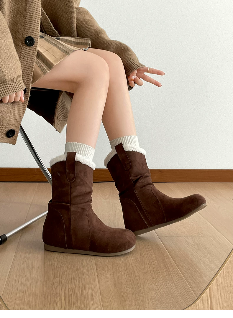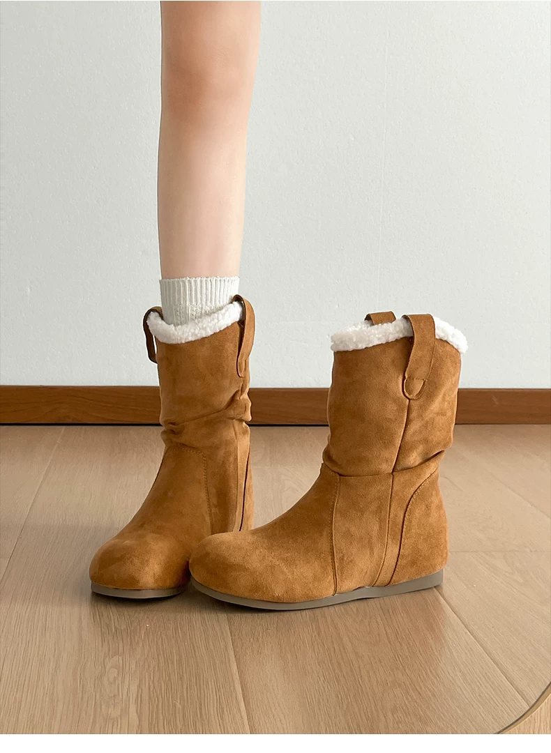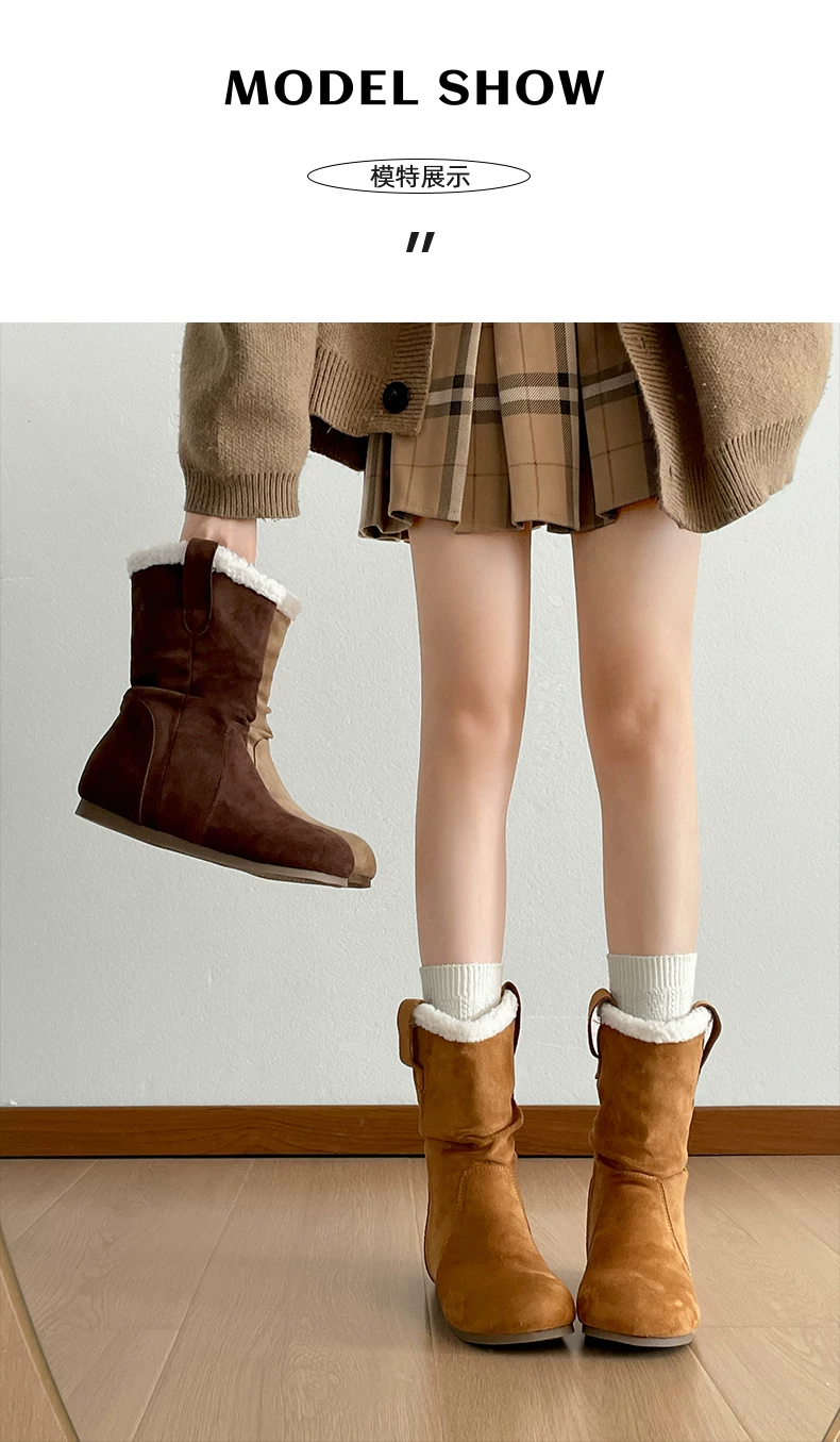 - Giày bốt tuyết nữ đế dày lót lông cừu dày dặn kiểu retro mùa đông 2025 mới giữ ấm chống trơn trượt kiểu Birkenstock chất liệu cotton