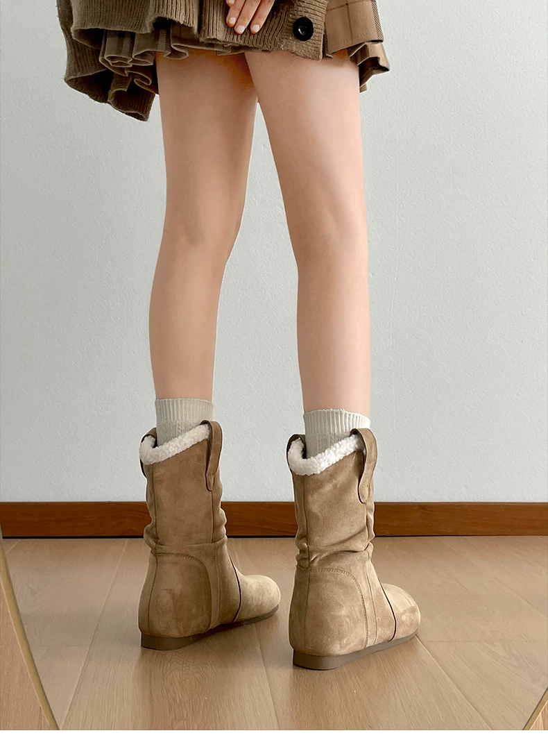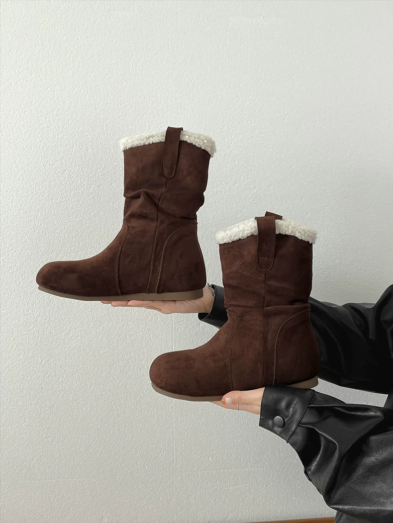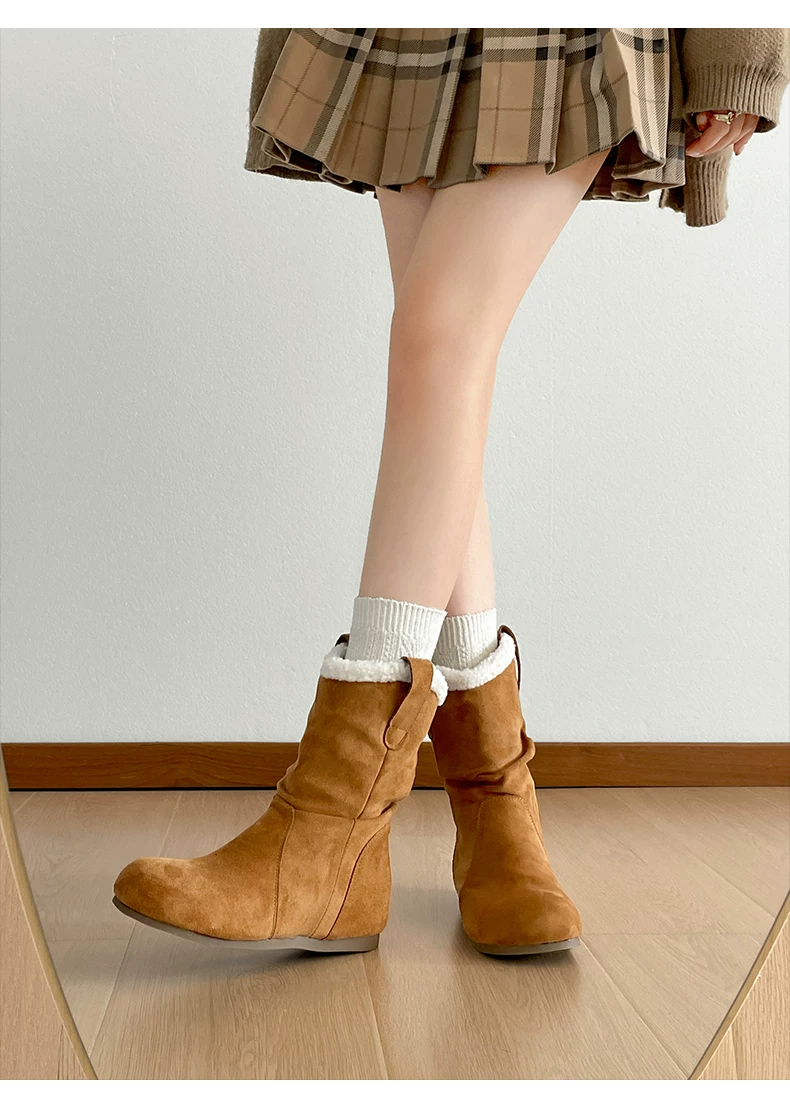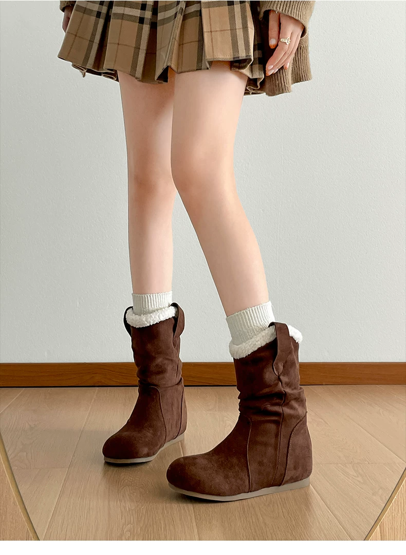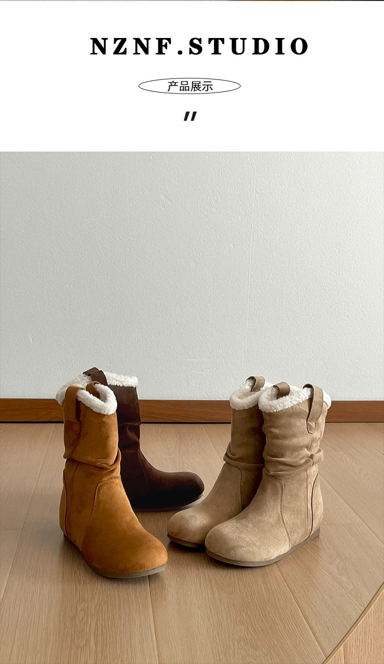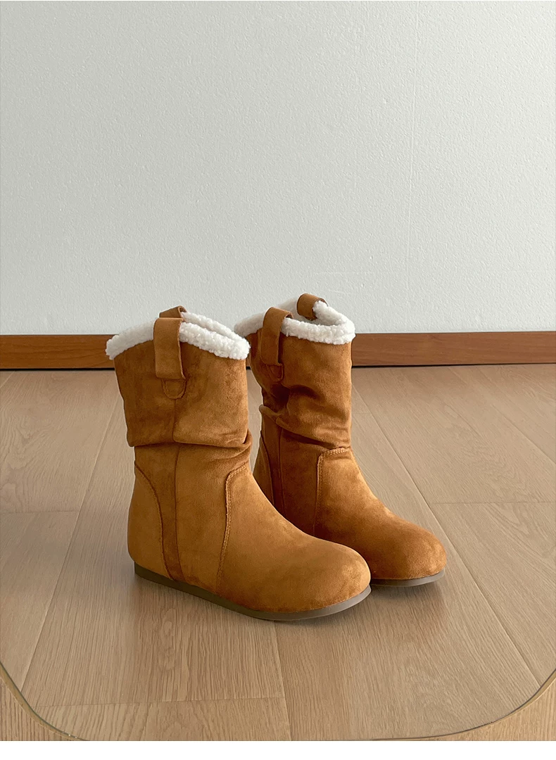 - Giày bốt tuyết nữ đế dày lót lông cừu dày dặn kiểu retro mùa đông 2025 mới giữ ấm chống trơn trượt kiểu Birkenstock chất liệu cotton