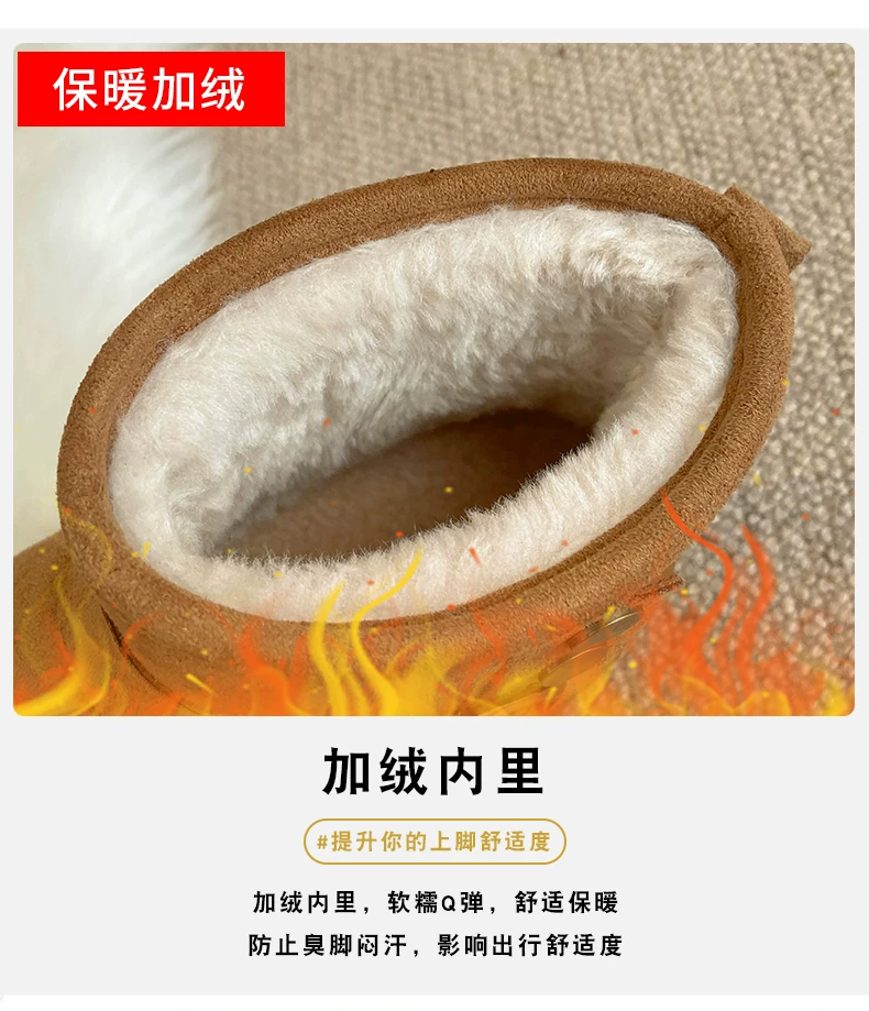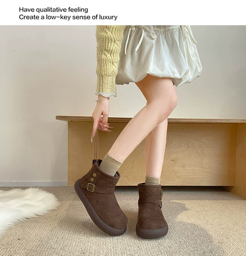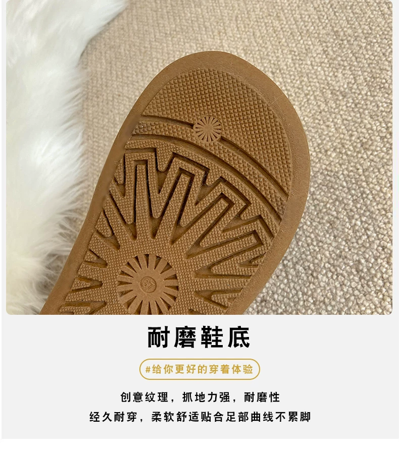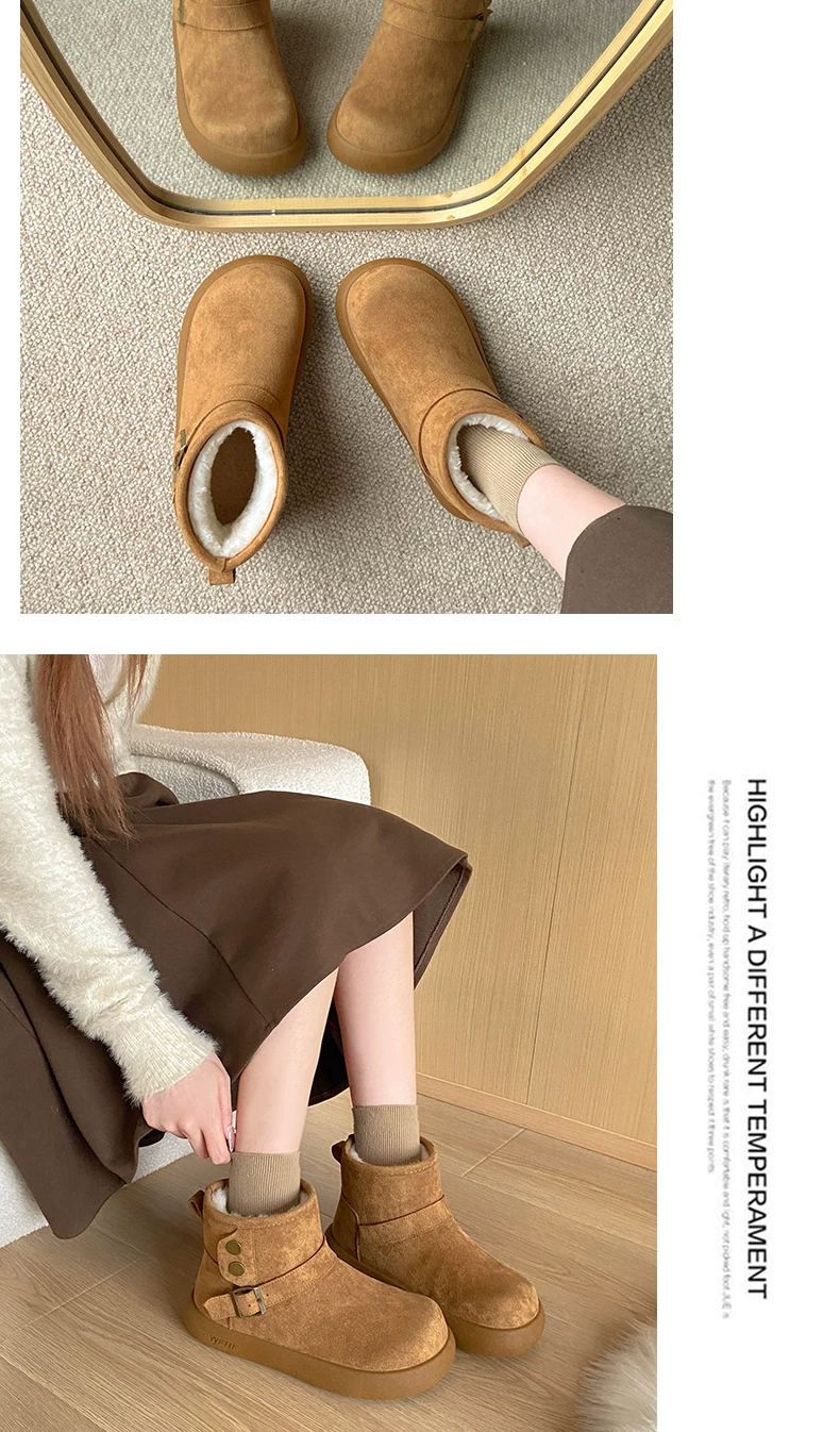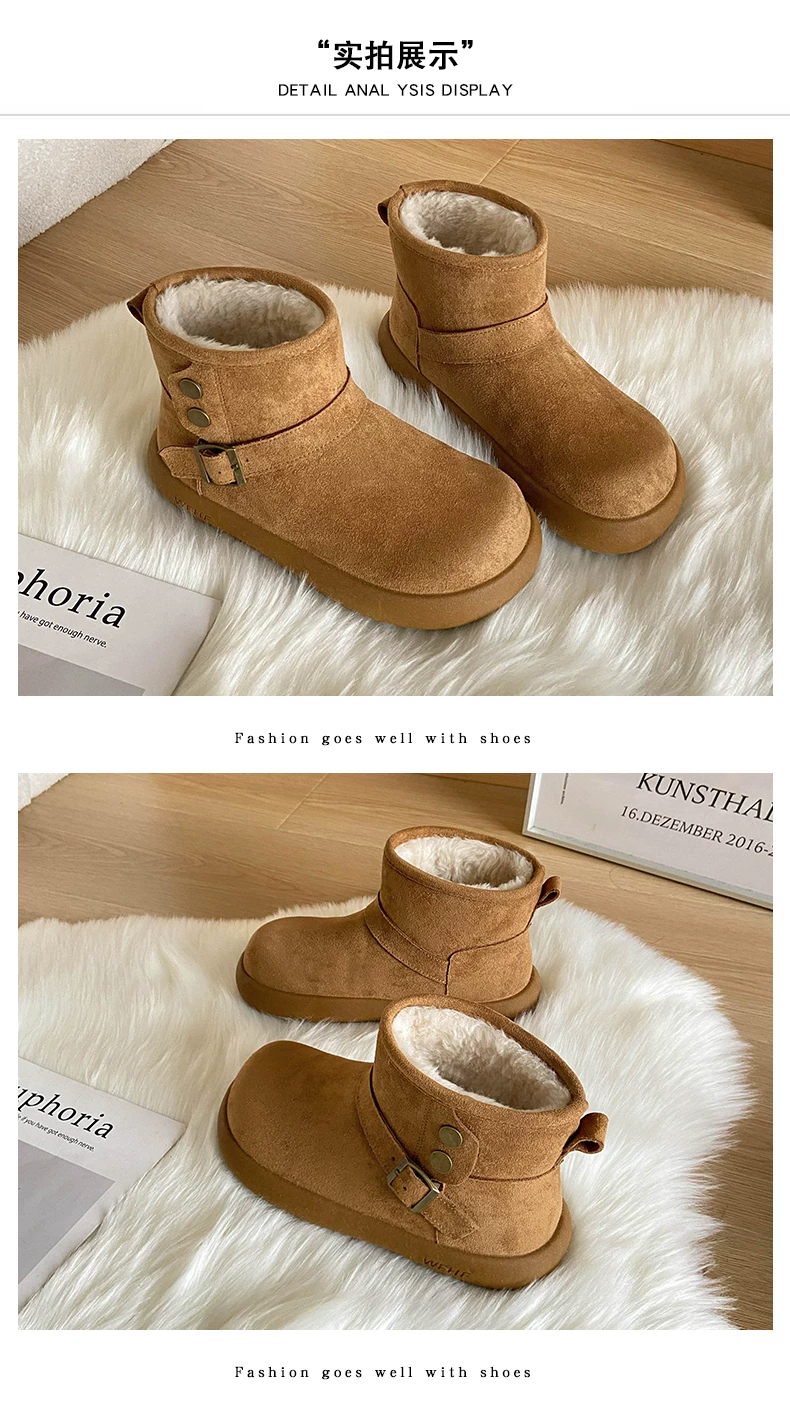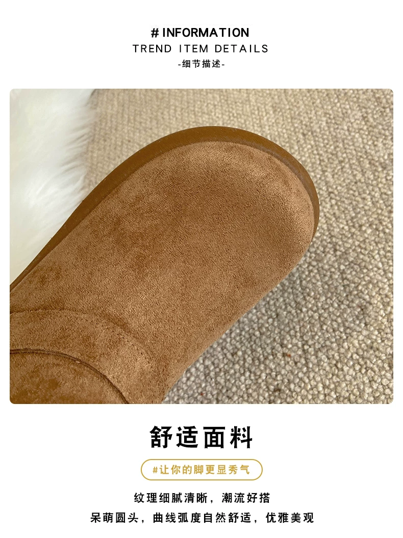 - Giày bốt tuyết nữ đế dày lót lông cừu kiểu retro màu nâu, mùa đông 2025, giữ ấm, đi ngoài trời, chống trơn trượt, kiểu Birkenstock, chất liệu cotton