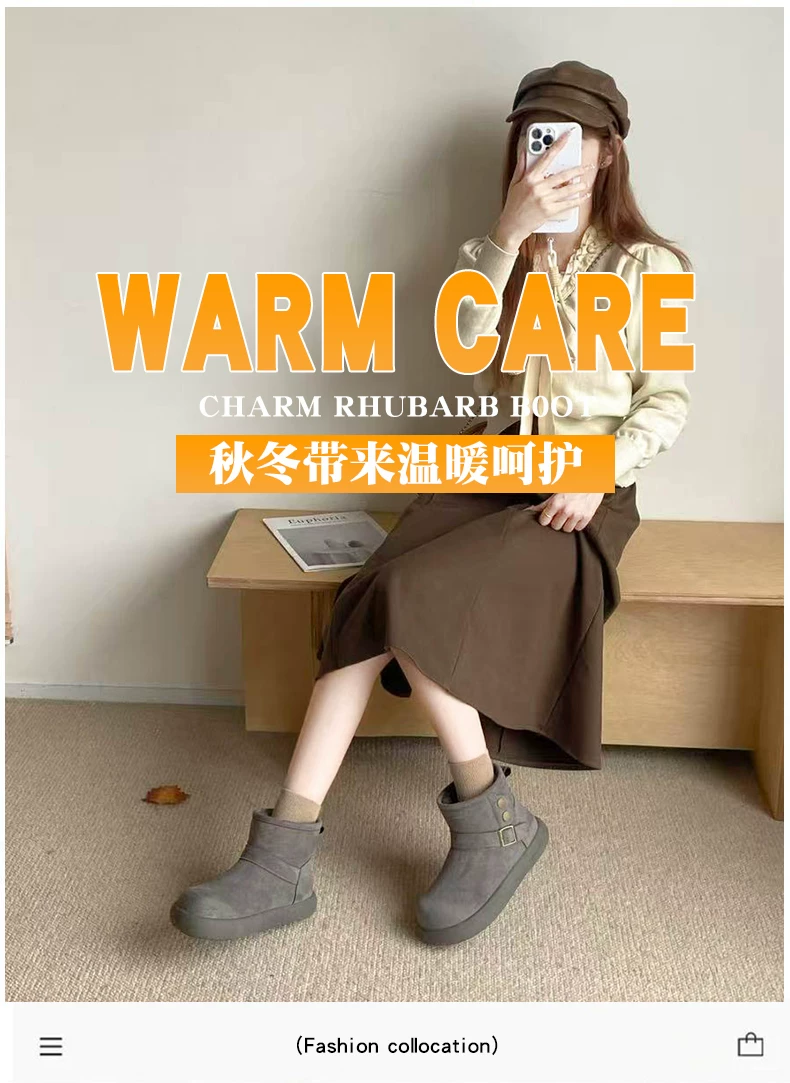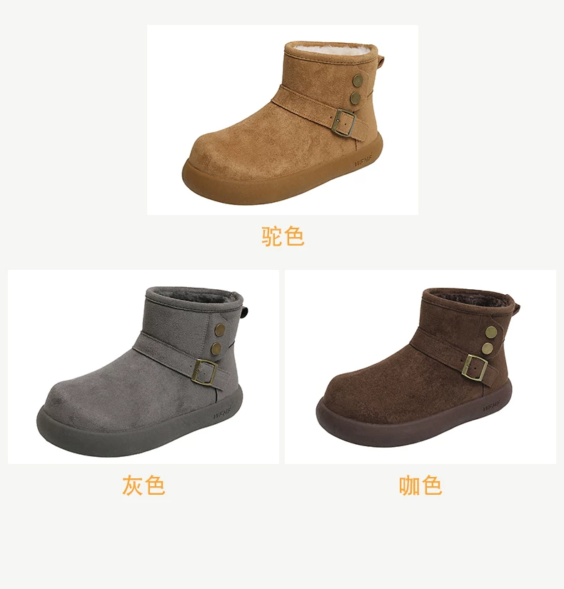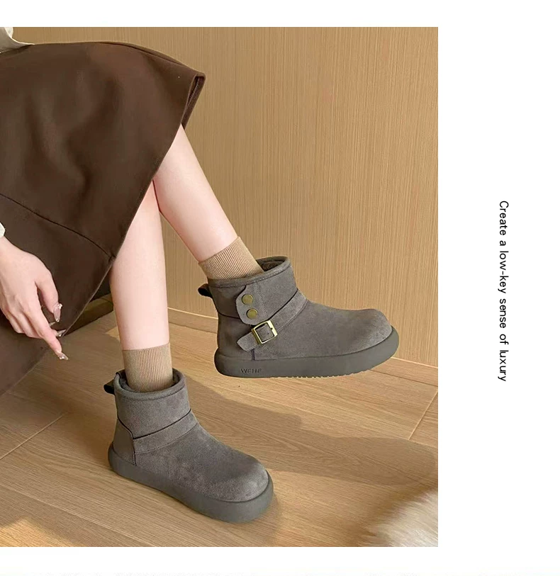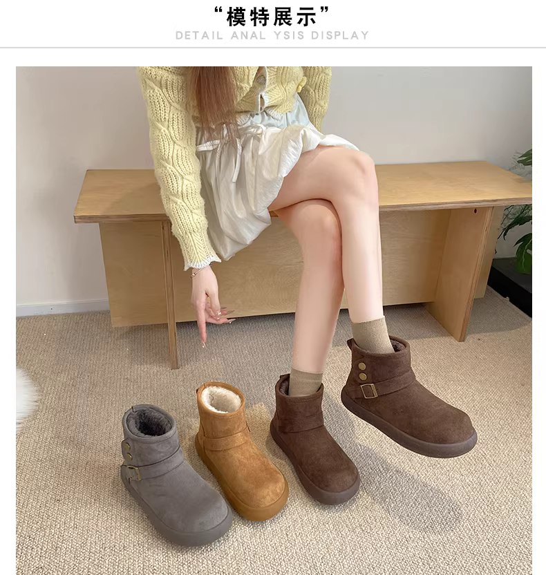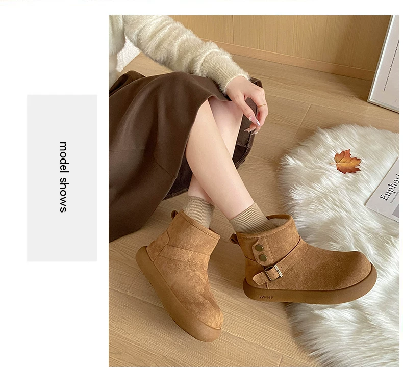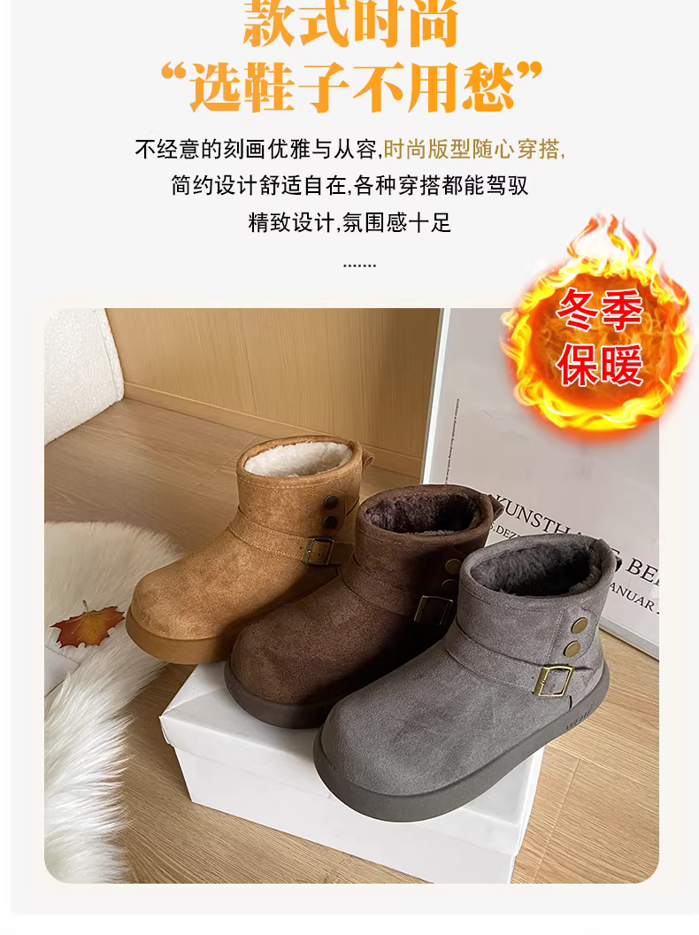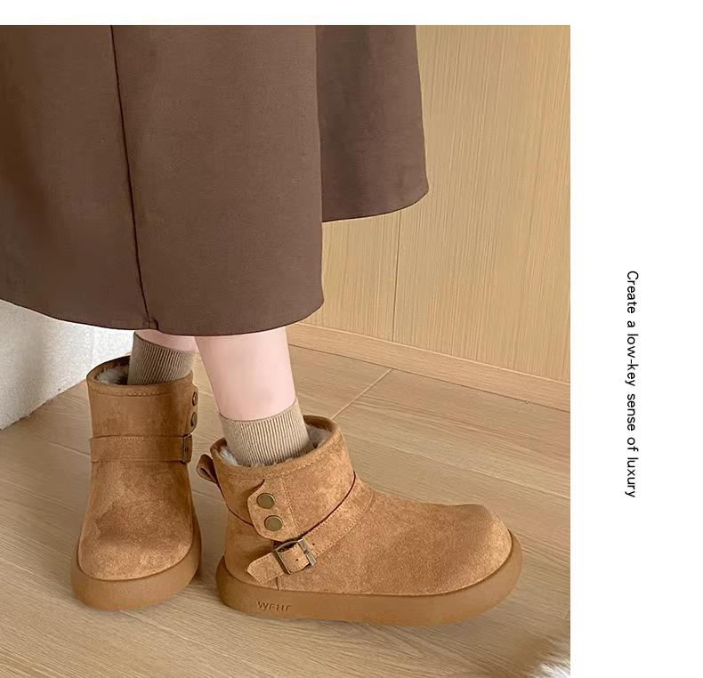 - Giày bốt tuyết nữ đế dày lót lông cừu kiểu retro màu nâu, mùa đông 2025, giữ ấm, đi ngoài trời, chống trơn trượt, kiểu Birkenstock, chất liệu cotton