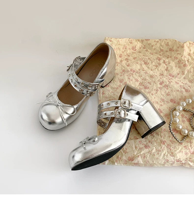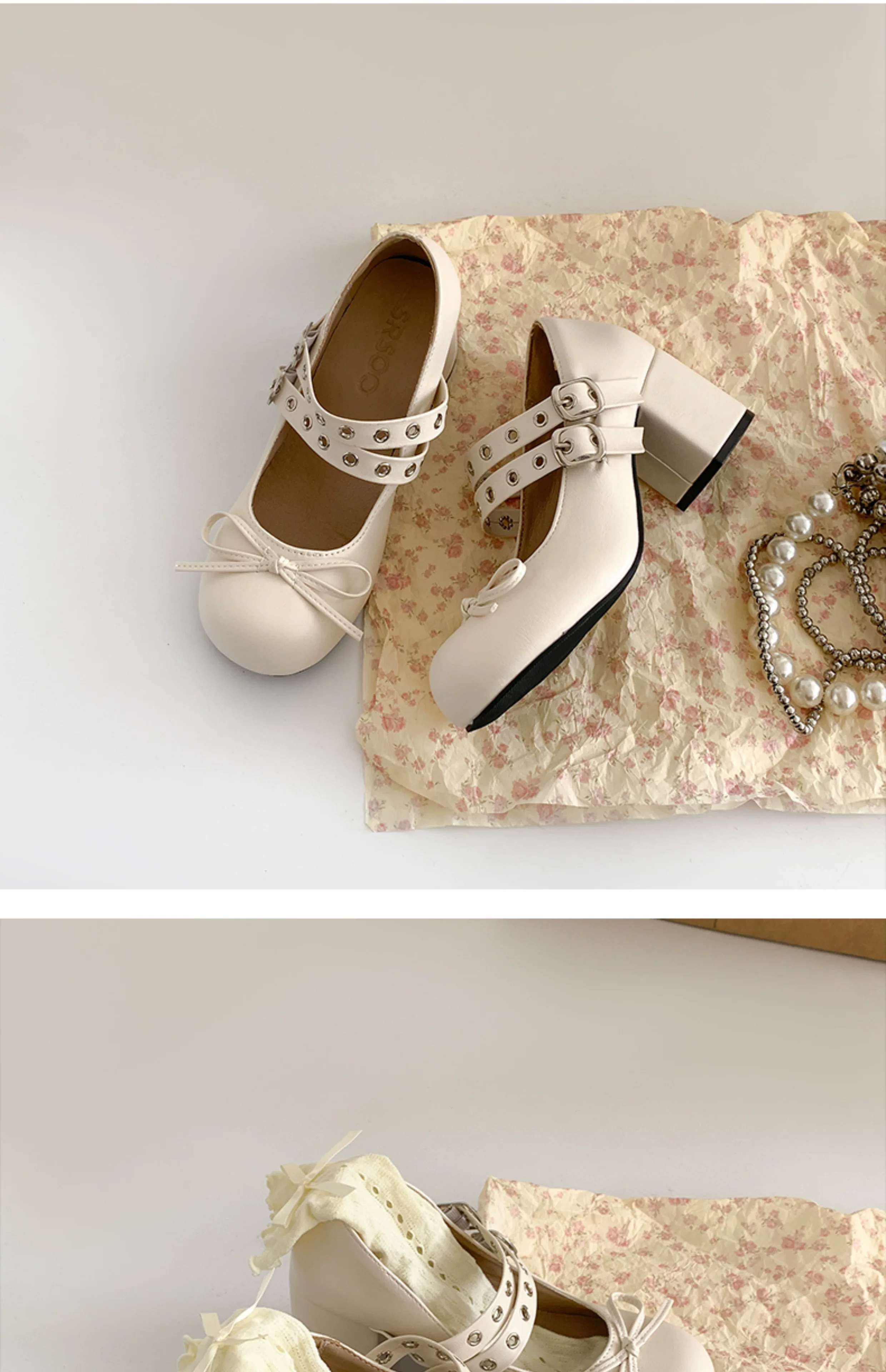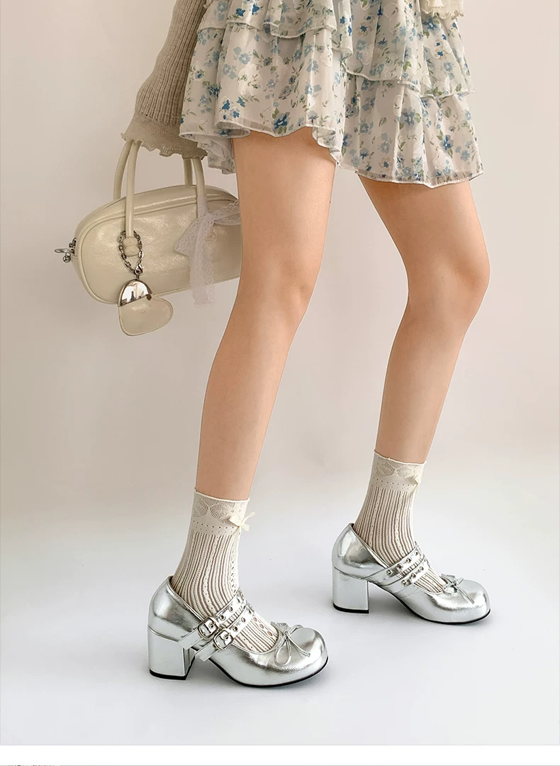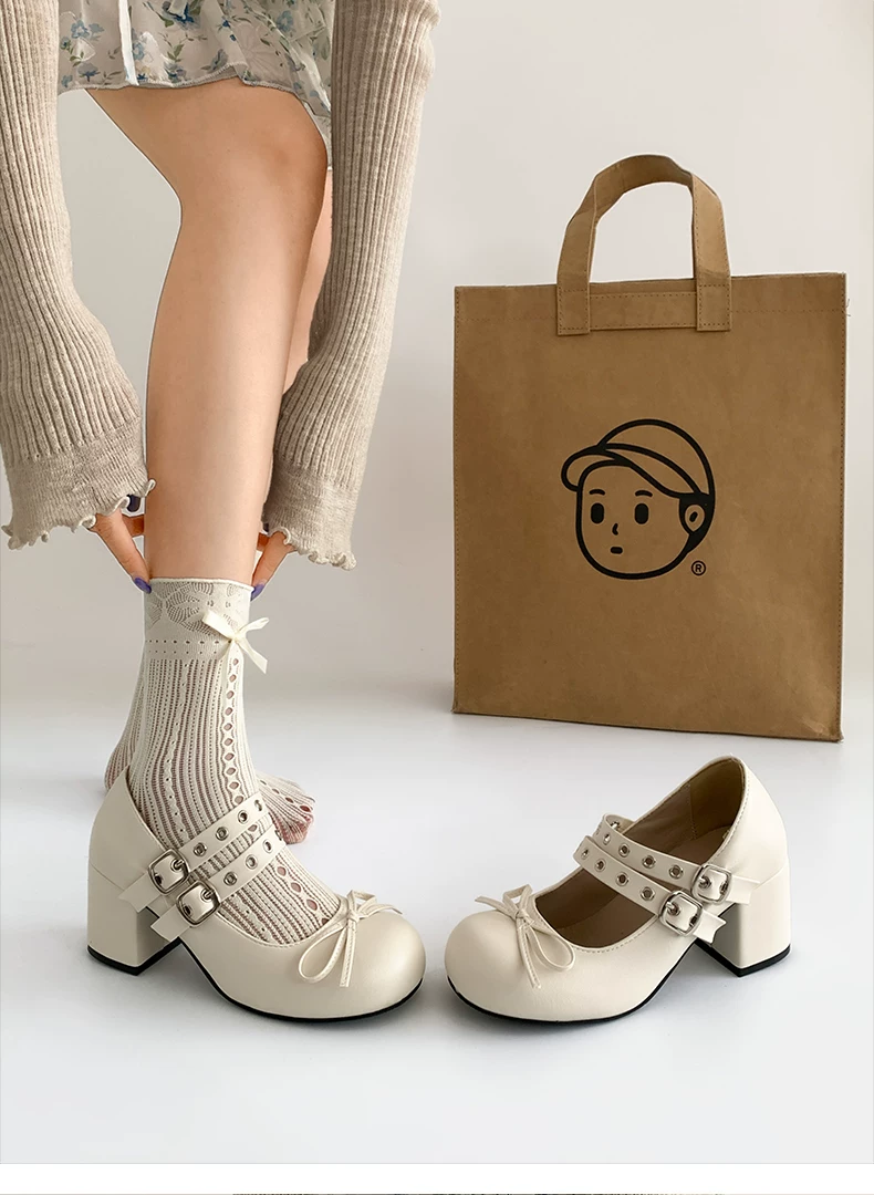 - Giày cao gót chunky kiểu Pháp cổ điển màu trắng dành cho nữ, kiểu dáng thu mới 2025, phù hợp phối với chân váy, giày Mary Jane.
