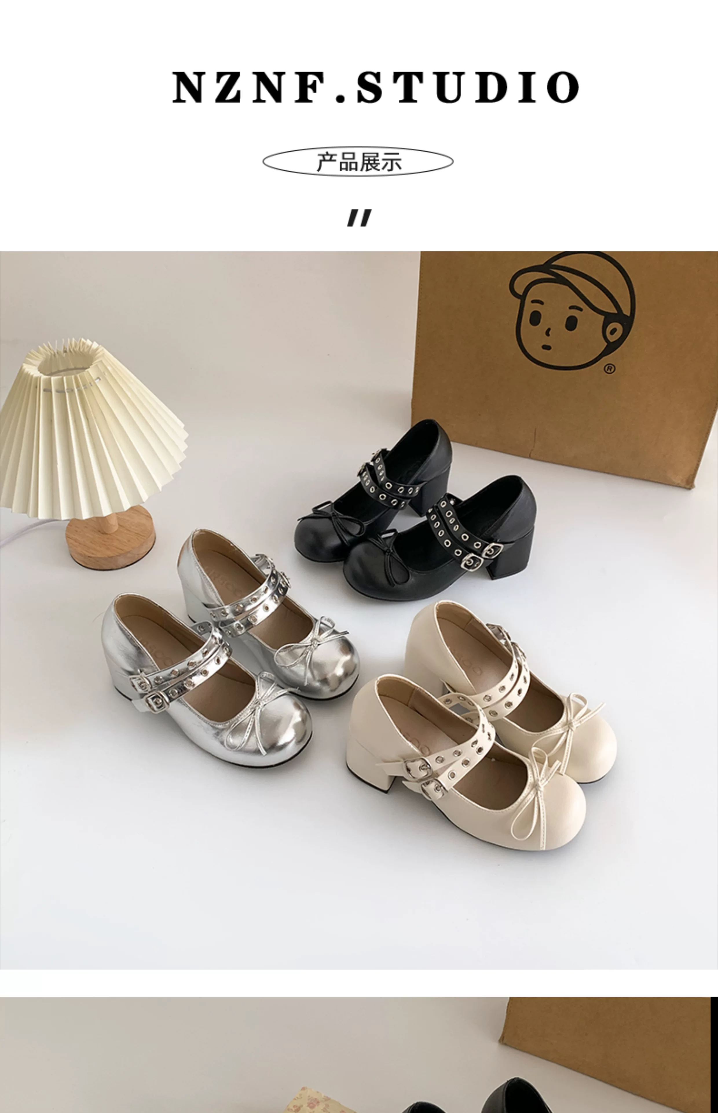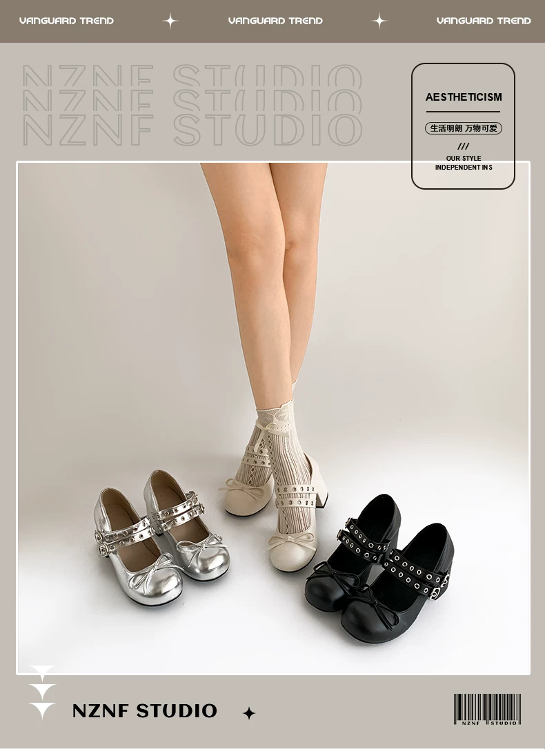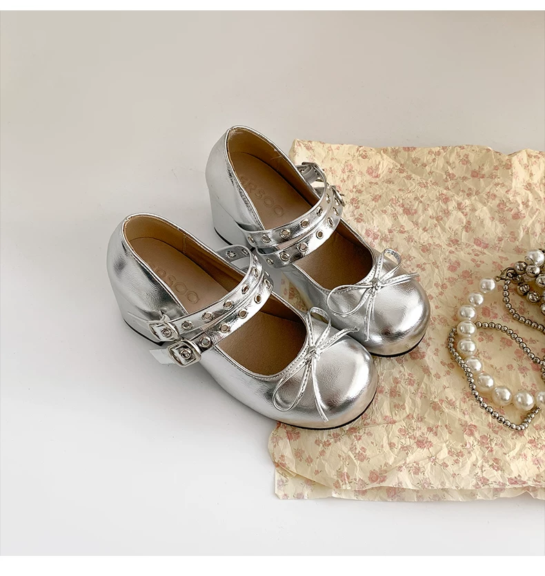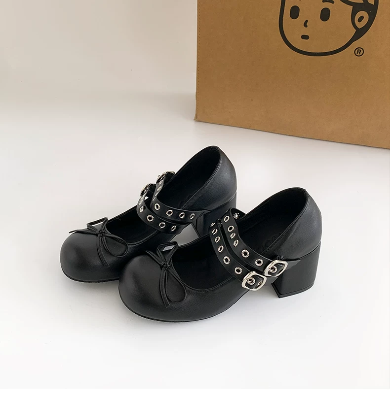 - Giày cao gót chunky kiểu Pháp cổ điển màu trắng dành cho nữ, kiểu dáng thu mới 2025, phù hợp phối với chân váy, giày Mary Jane.
