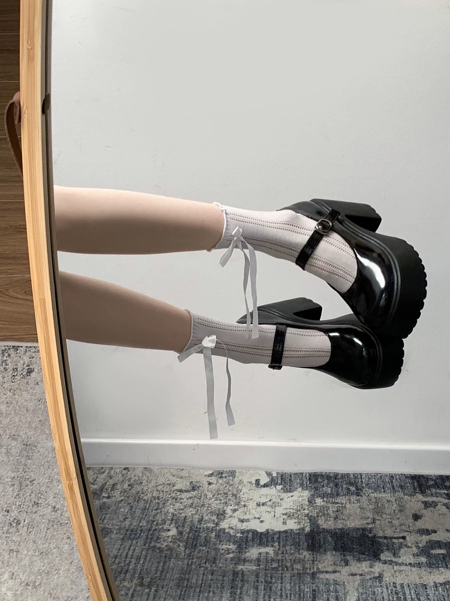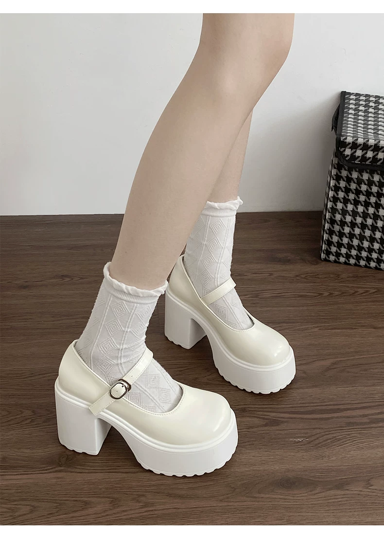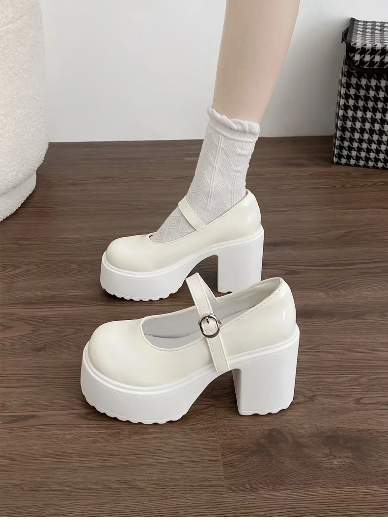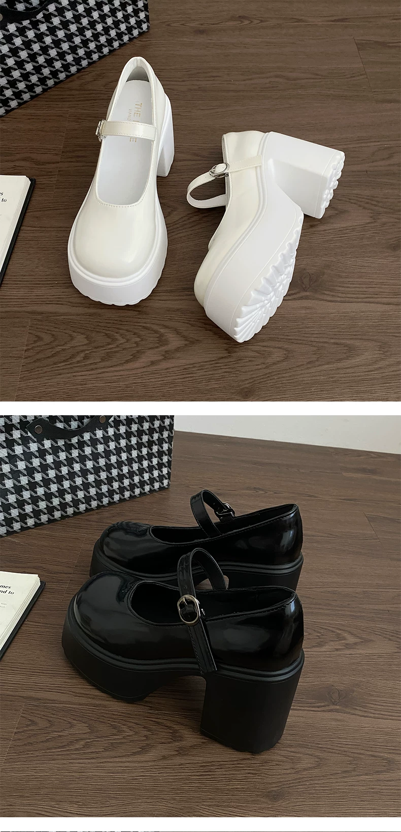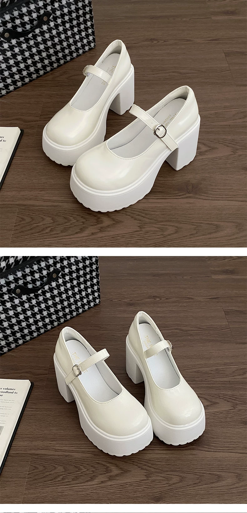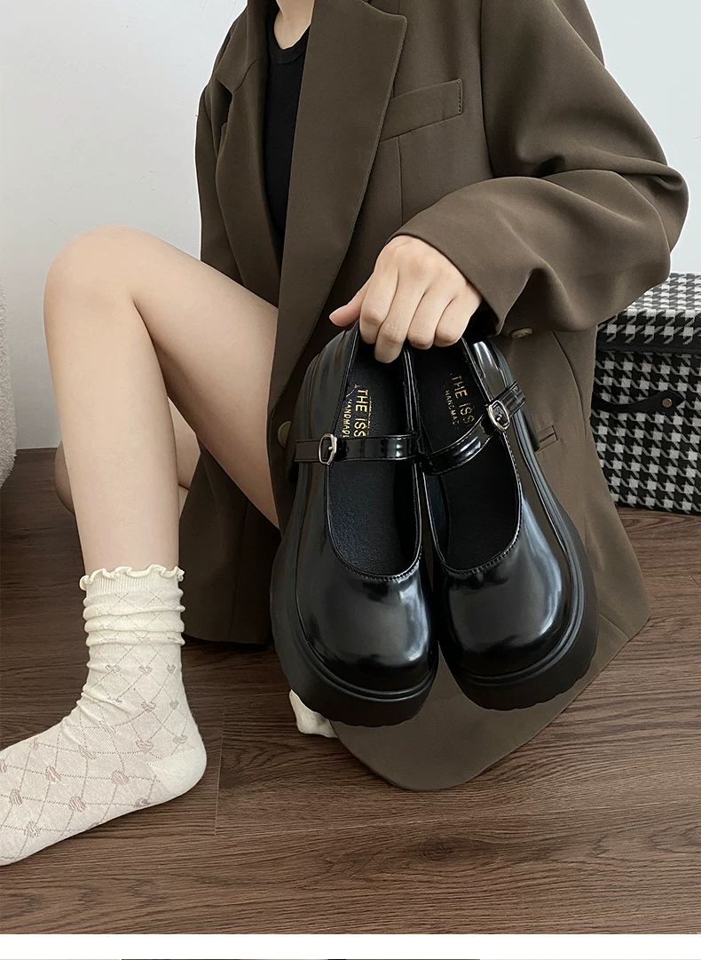 - Giày cao gót chunky retro kiểu Pháp màu đen dành cho nữ, mẫu mới thu 2025, tăng chiều cao, kiểu Mary Jane bằng da, dành cho người nhỏ nhắn