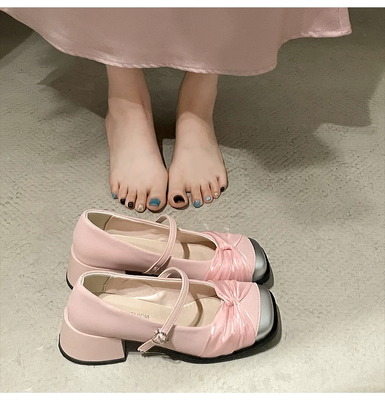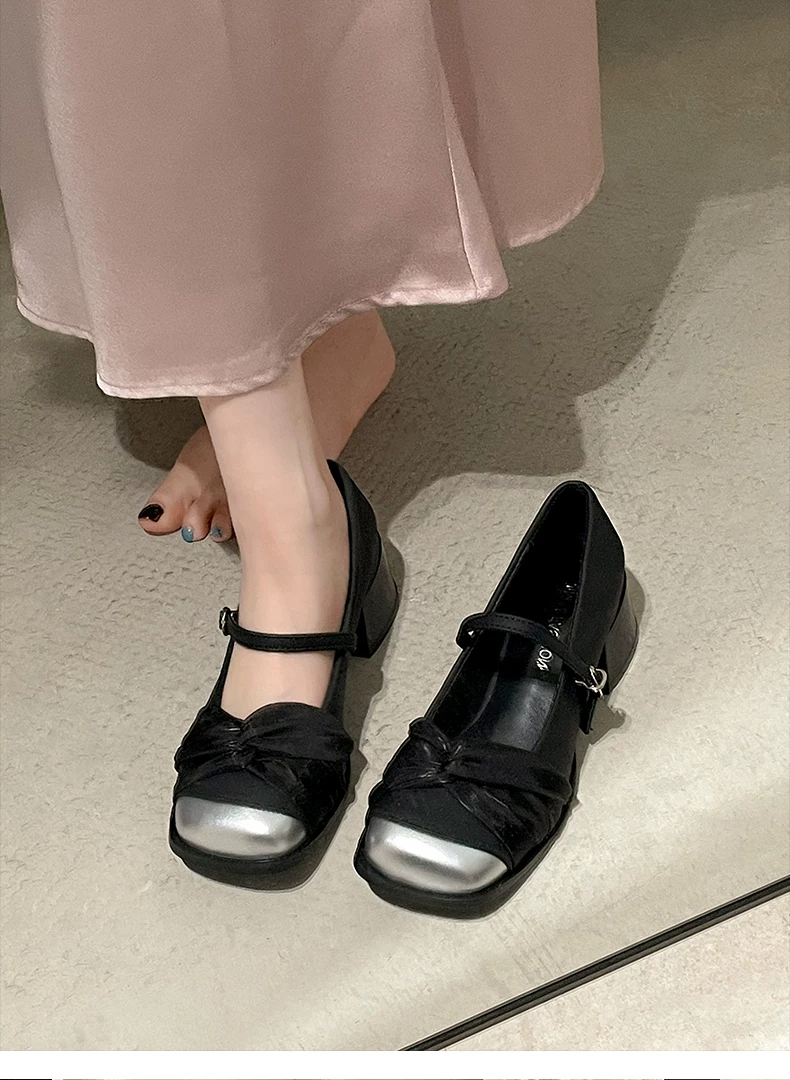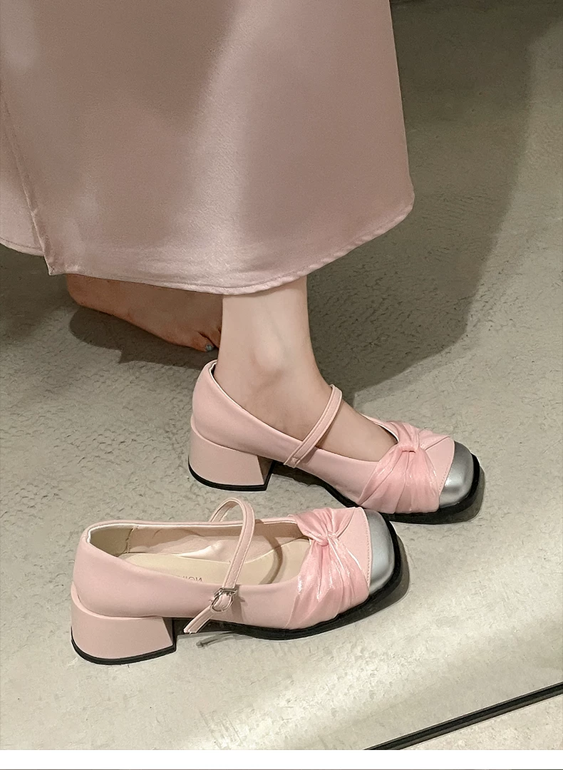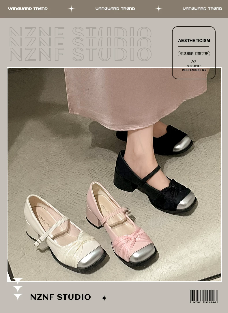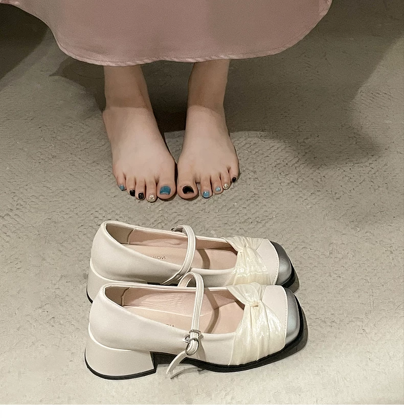 - Giày cao gót đế dày kiểu tiên nữ Pháp màu trắng dành cho nữ, kiểu thu mới 2025, phù hợp với chân váy, giày Mary Jane mũi vuông.