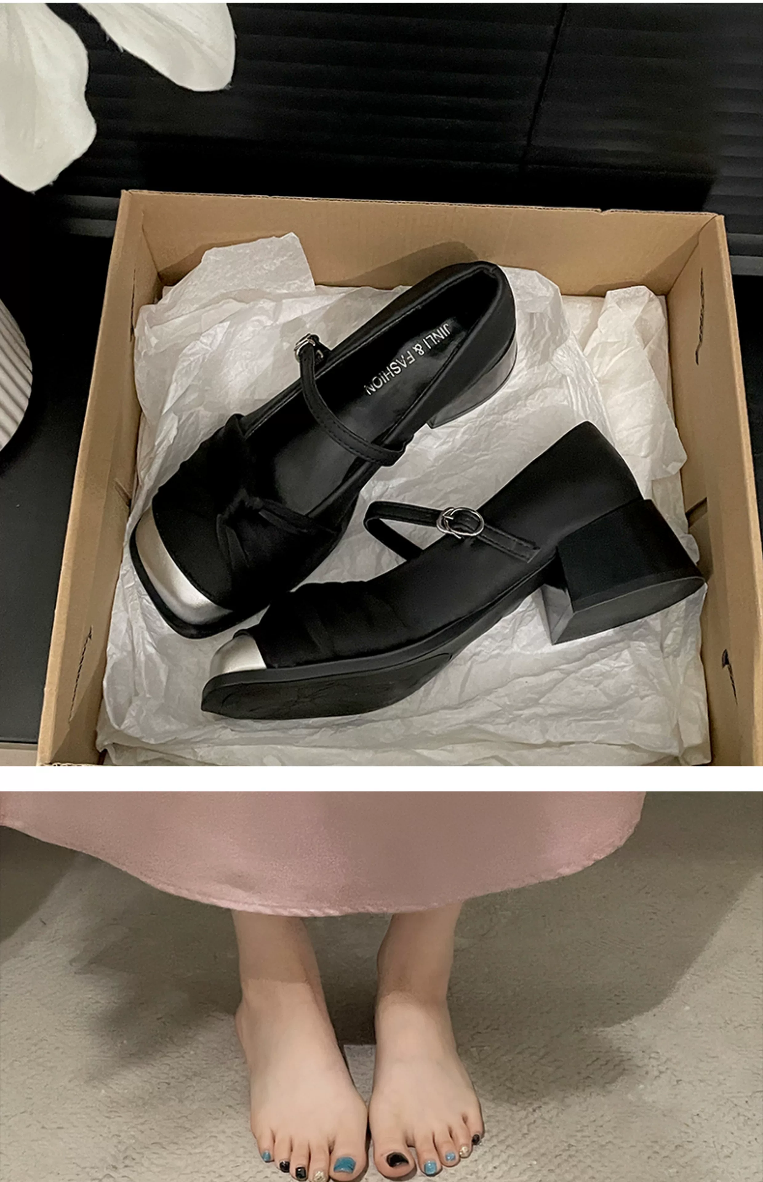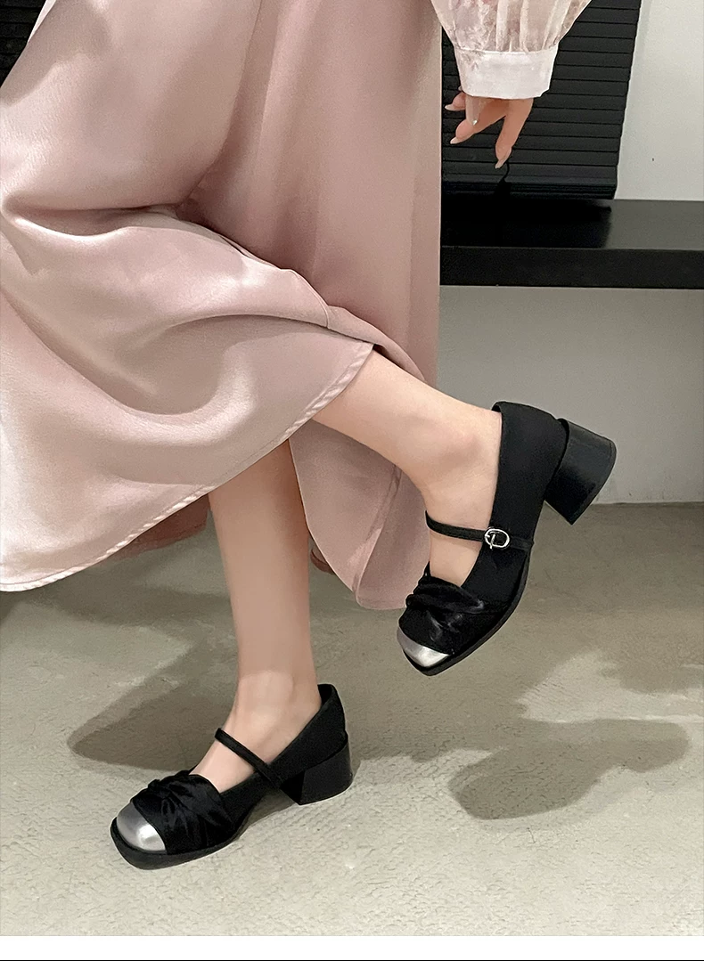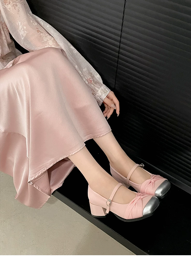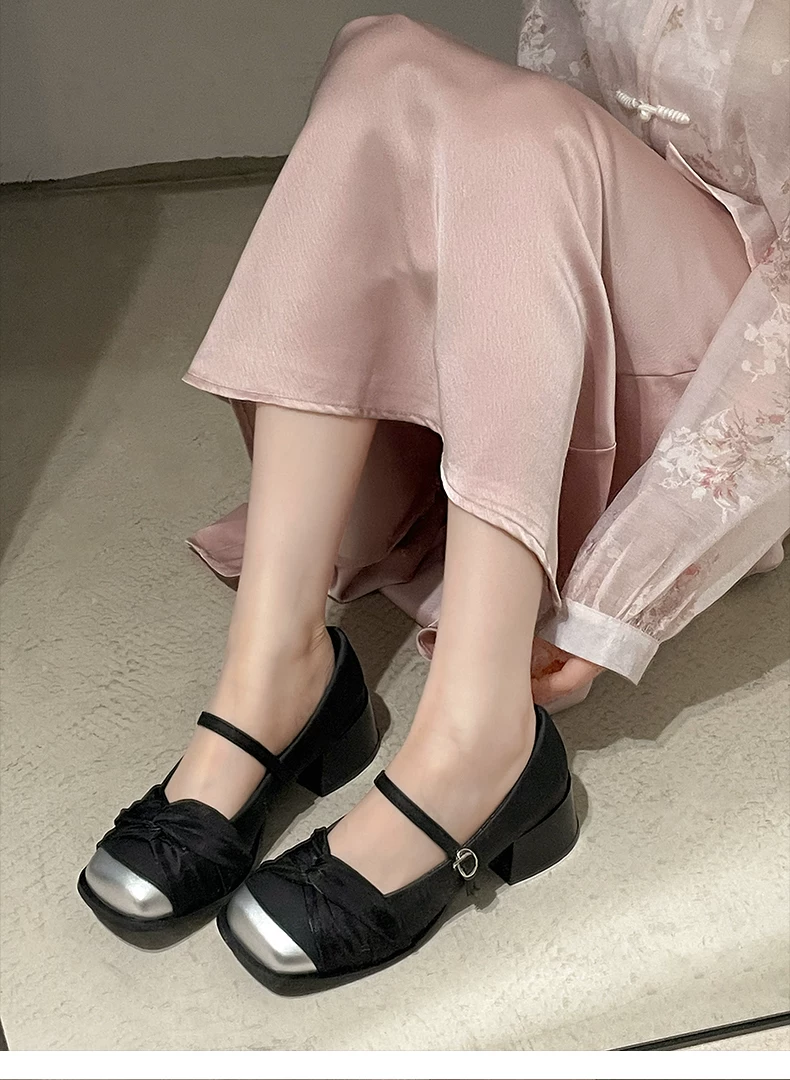 - Giày cao gót đế dày kiểu tiên nữ Pháp màu trắng dành cho nữ, kiểu thu mới 2025, phù hợp với chân váy, giày Mary Jane mũi vuông.