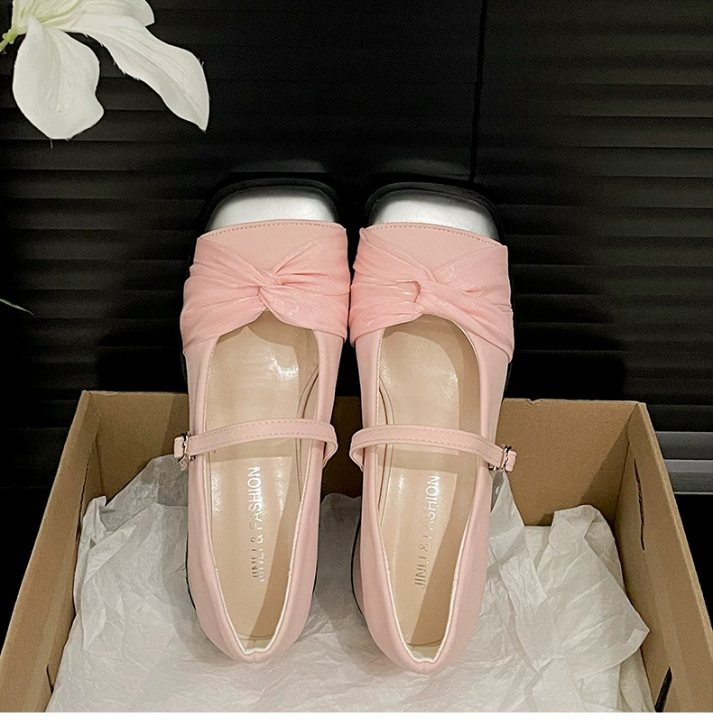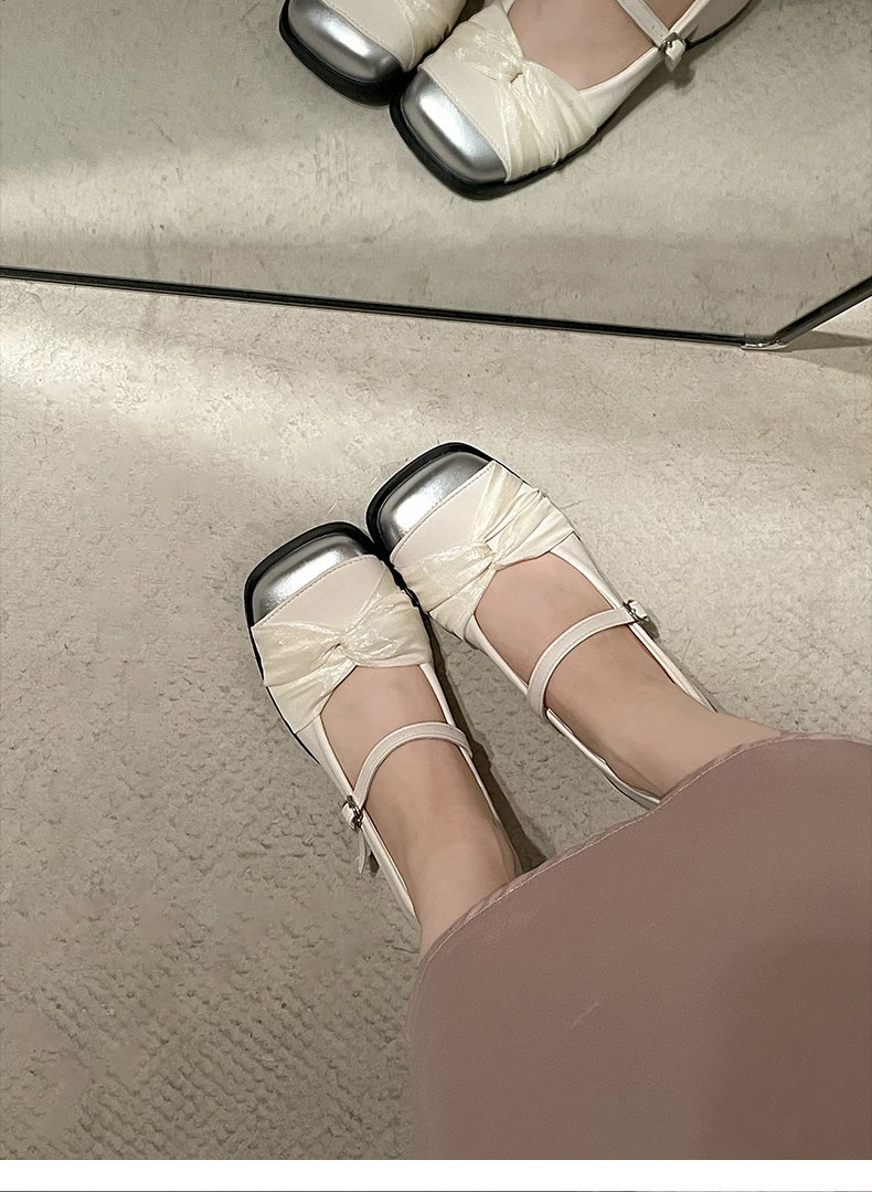 Giày cao gót đế dày kiểu tiên nữ Pháp màu trắng dành cho nữ, kiểu thu mới 2025, phù hợp với chân váy, giày Mary Jane mũi vuông.