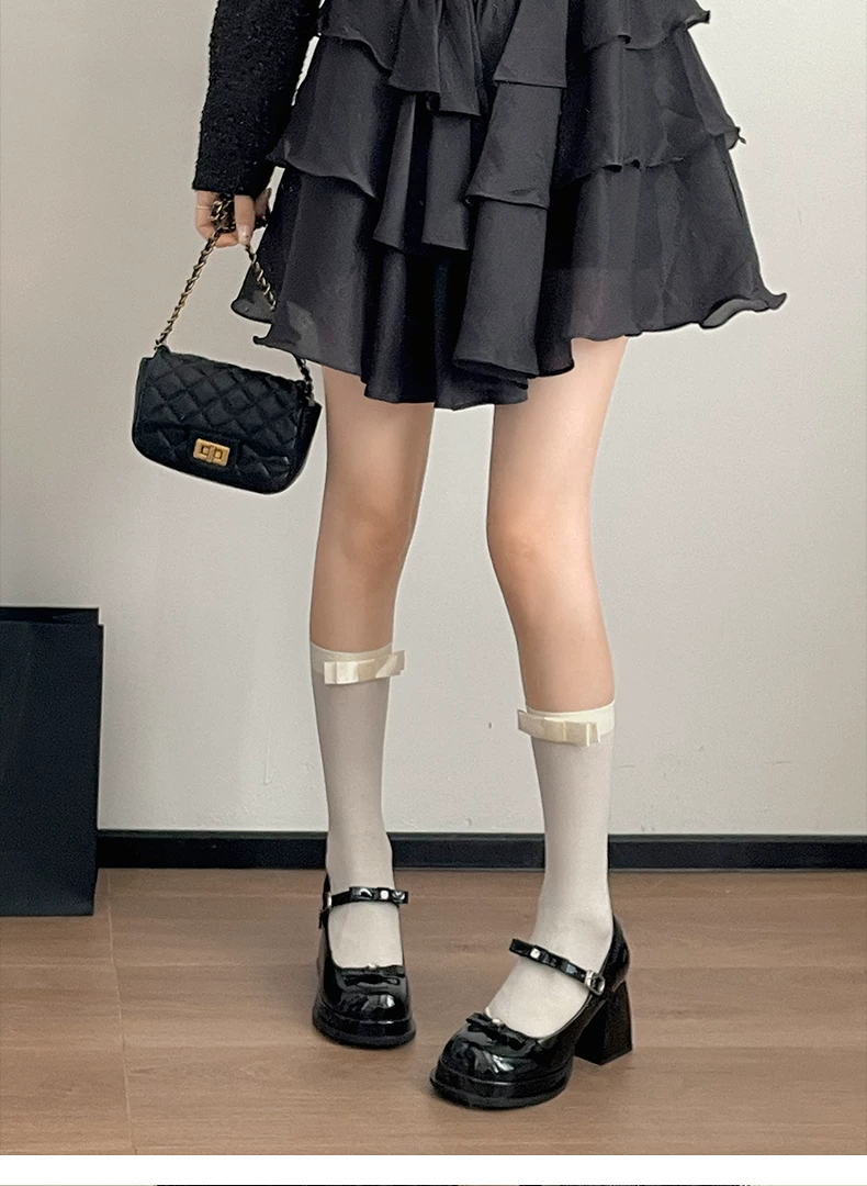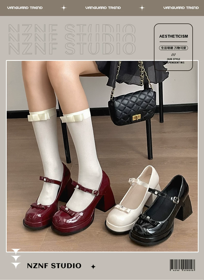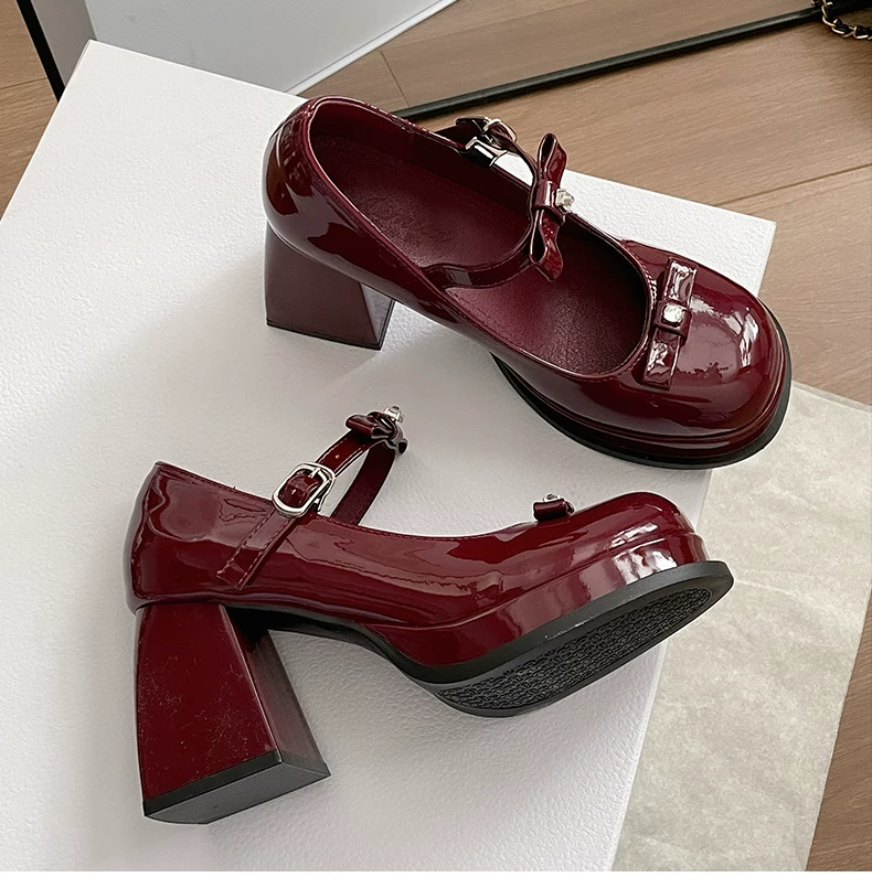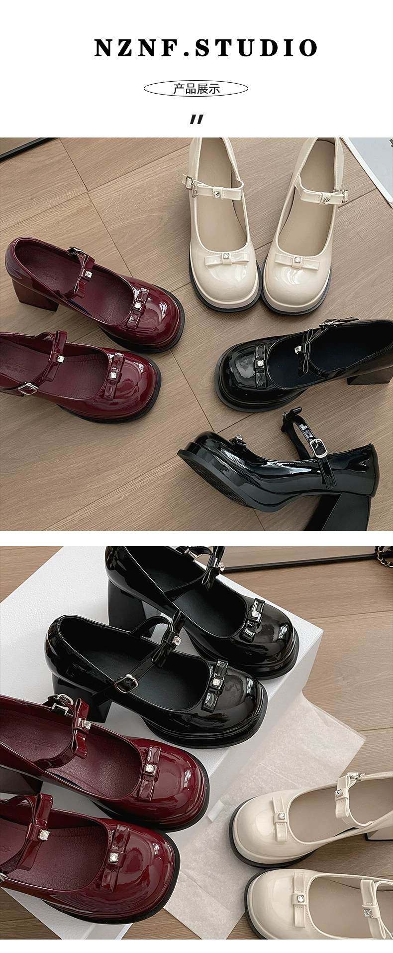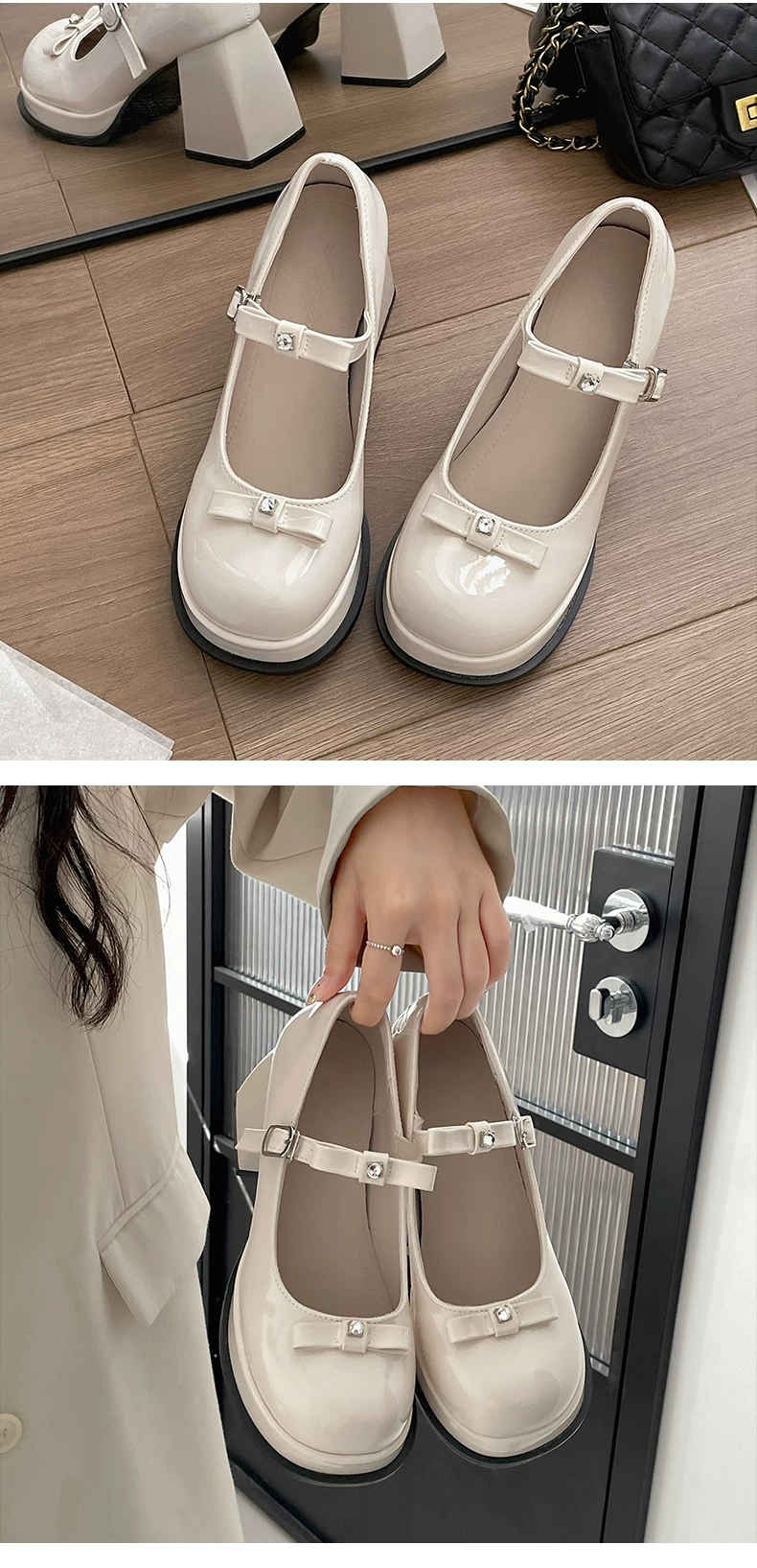 - Giày cao gót đế thô kiểu Pháp cổ điển màu trắng dành cho phụ nữ nhỏ nhắn, mẫu mới thu đông 2025, giày Mary Jane đa năng phối cùng chân váy.