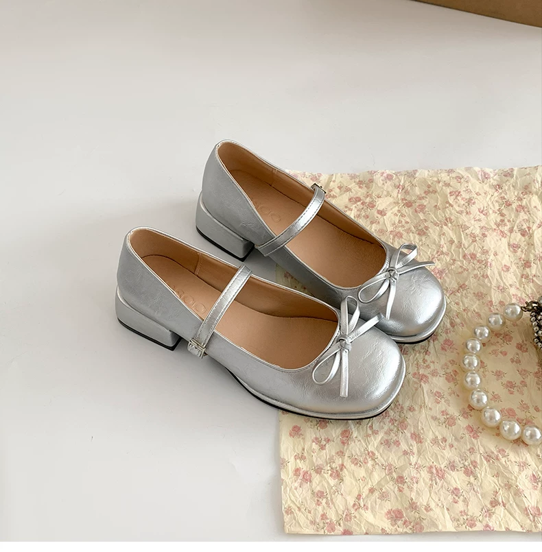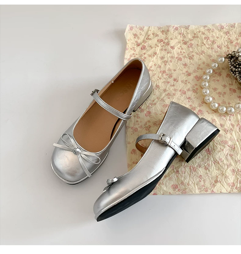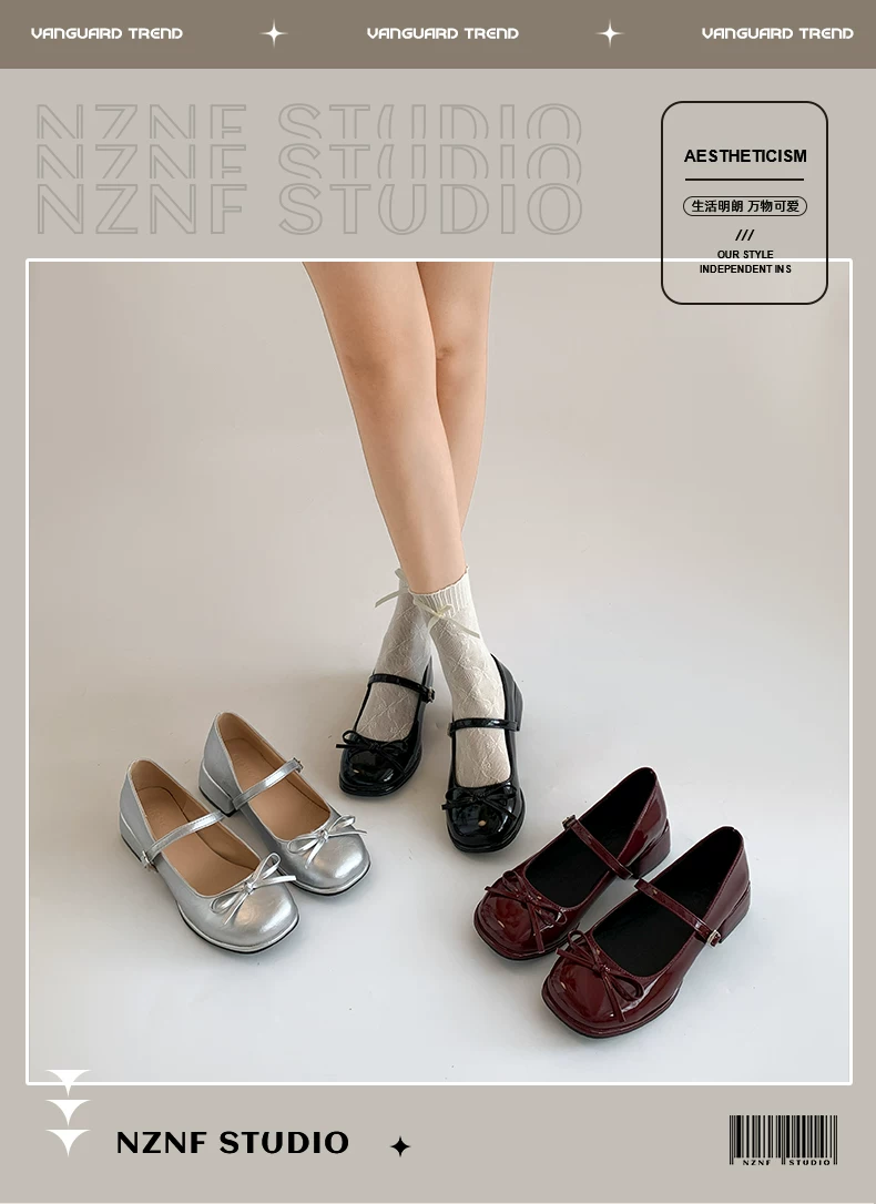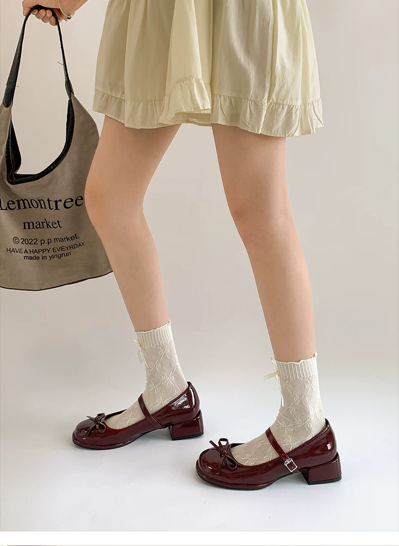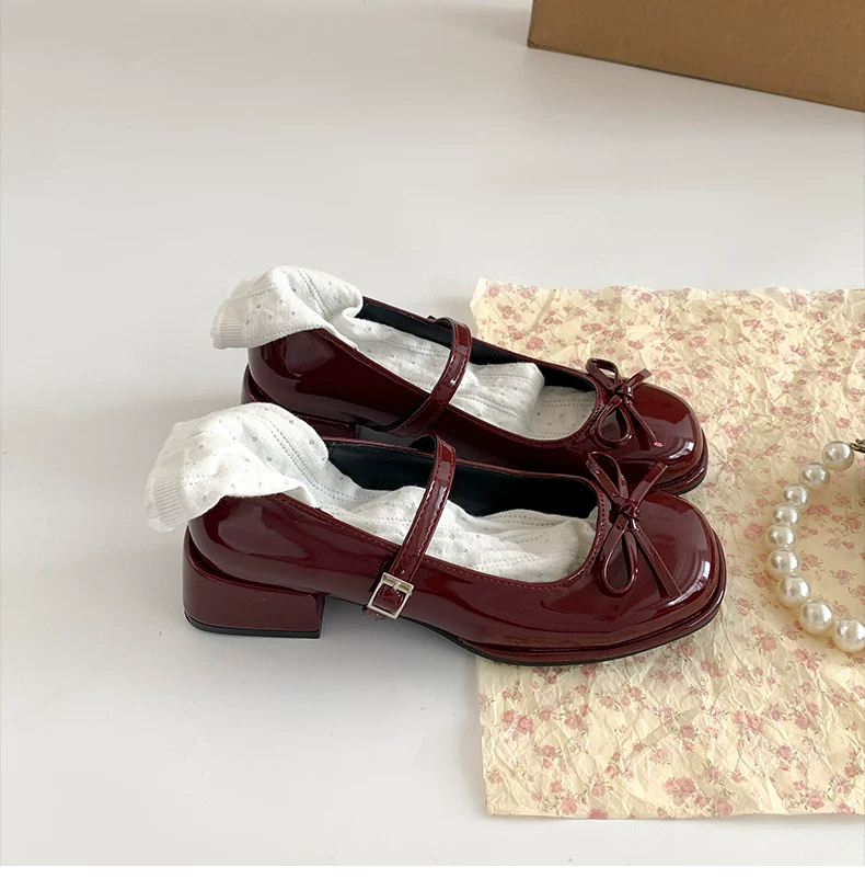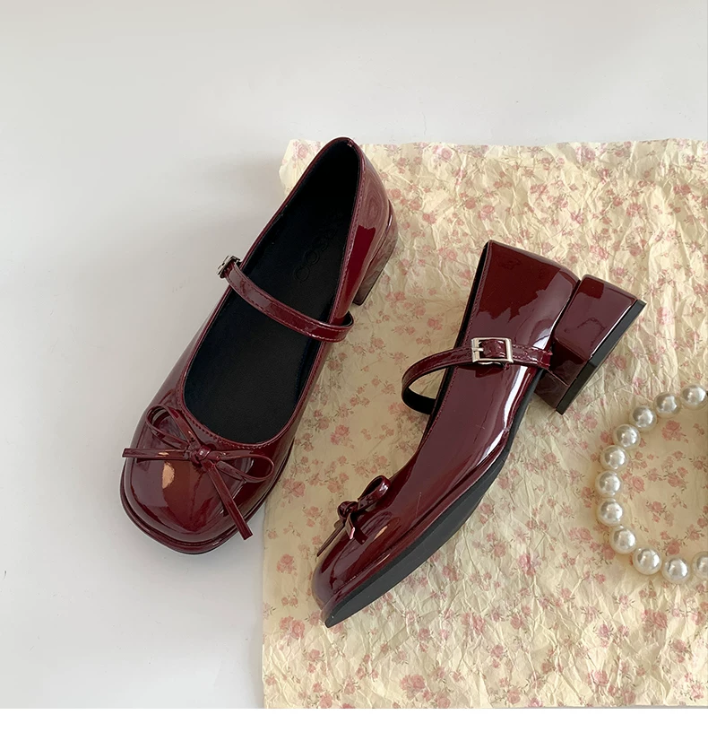 - Giày cao gót đế thô mũi tròn kiểu Pháp màu đỏ dành cho nữ, mẫu mới thu đông 2025, đa năng phối với chân váy, giày Mary Jane tăng chiều cao.