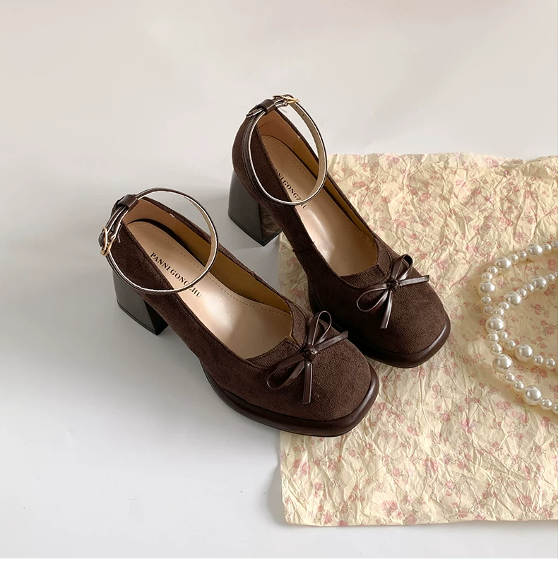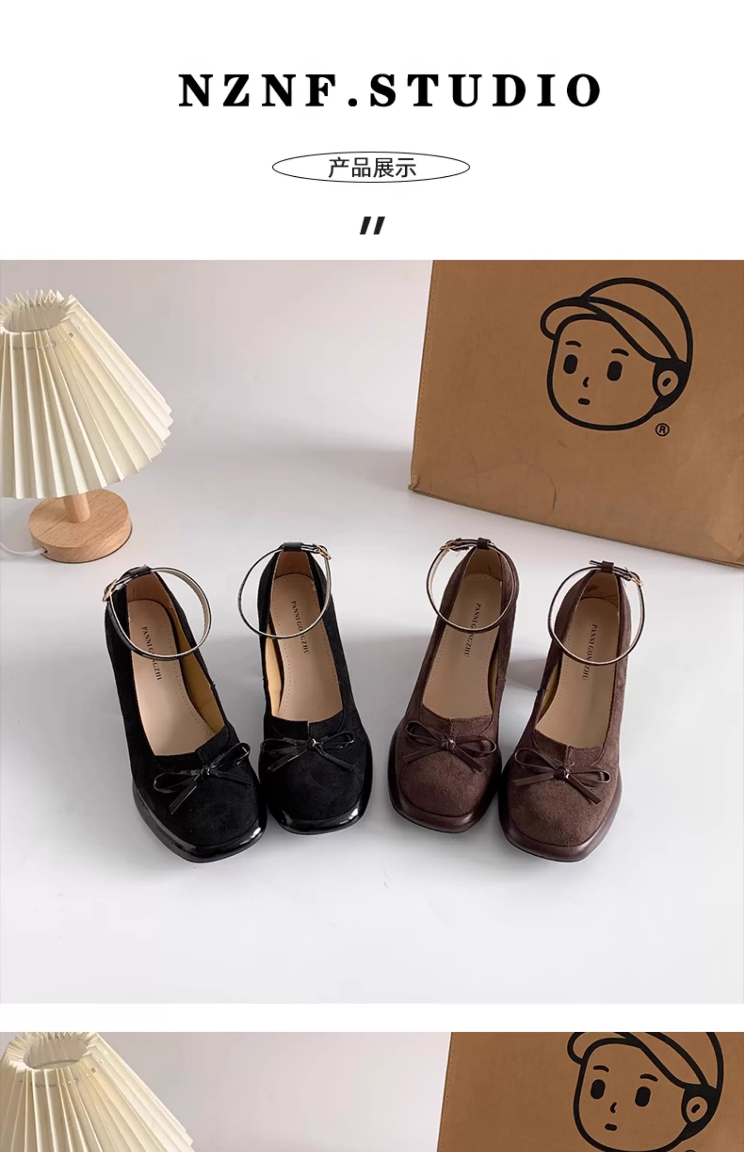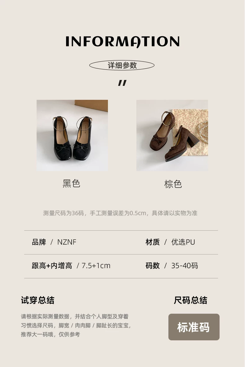 - Giày cao gót đế thô mũi vuông kiểu Pháp màu đen dành cho nữ, kiểu mới mùa thu 2025, đa năng phối với chân váy, giày Mary Jane tăng chiều cao.
