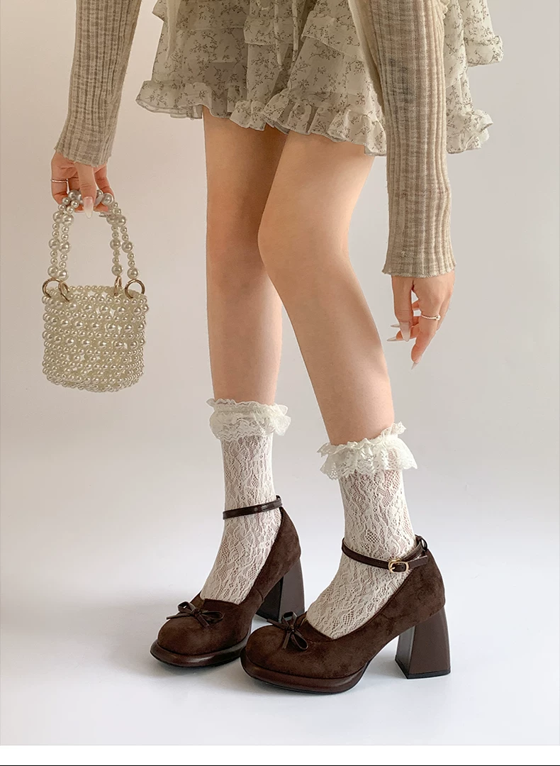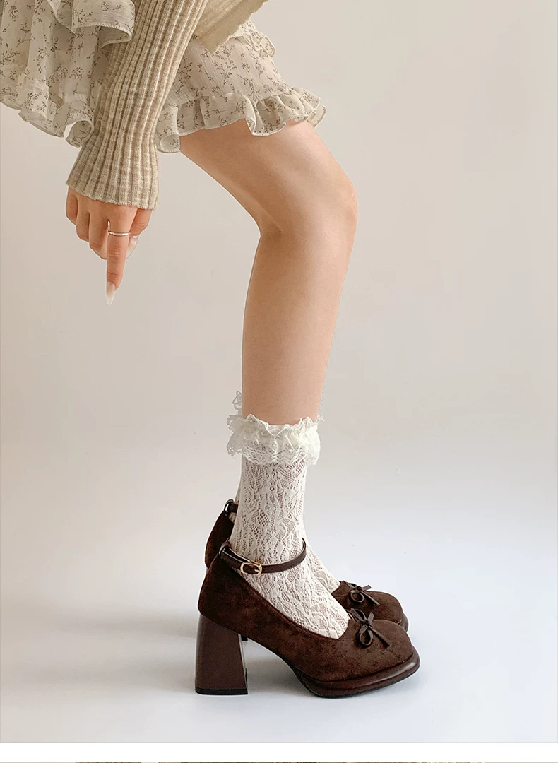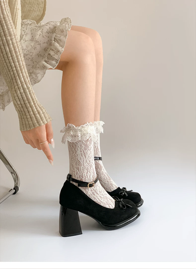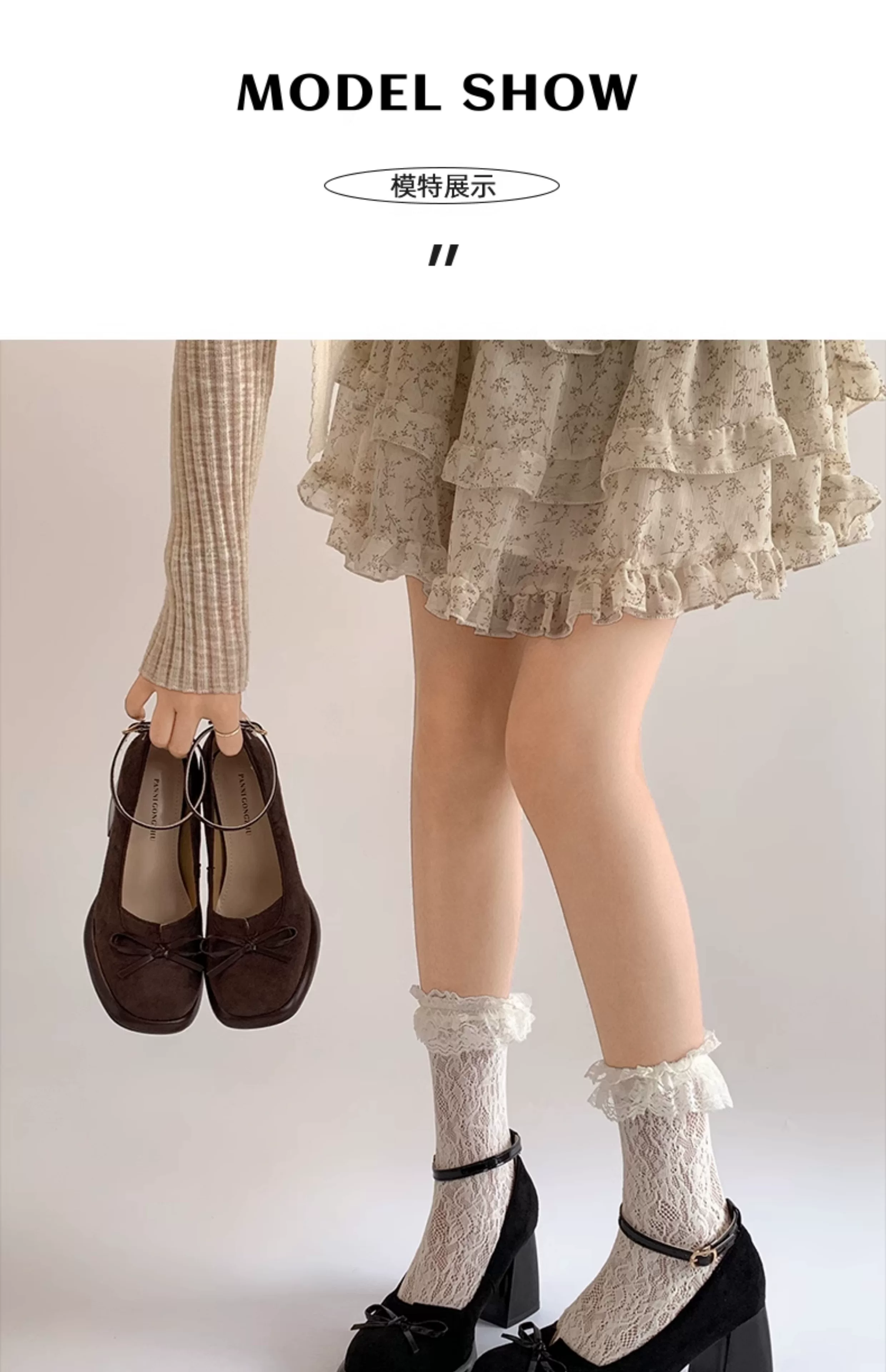 - Giày cao gót đế thô mũi vuông kiểu Pháp màu đen dành cho nữ, kiểu mới mùa thu 2025, đa năng phối với chân váy, giày Mary Jane tăng chiều cao.