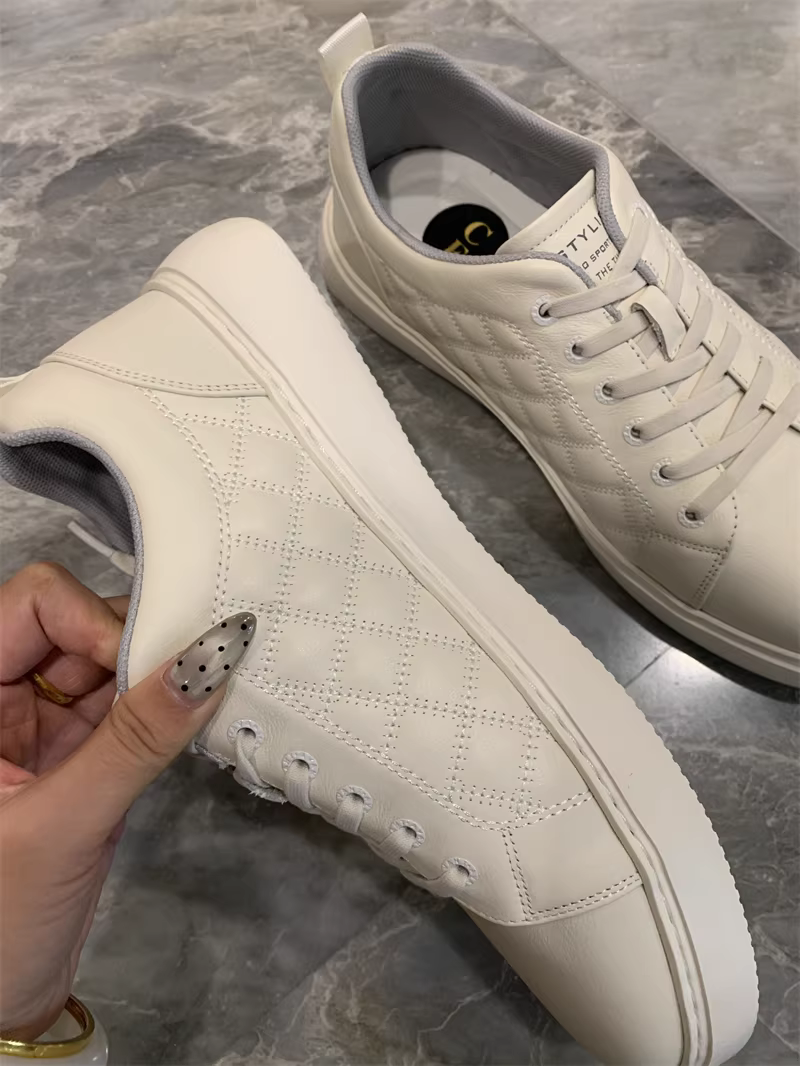 Giày da bò Don Quixote! Giày thể thao/giày da nam màu trắng nhẹ, chống sốc, mềm mại và dễ mang cho mùa xuân, mùa thu và mùa đông. Hợp thời trang.