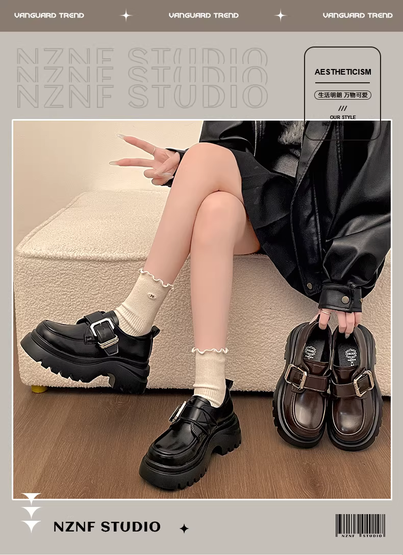 - Giày da đế dày tăng chiều cao kiểu Anh cổ điển màu đen dành cho nữ, kiểu dáng phổ biến mùa xuân thu 2025, giày lười đa năng phối hợp tốt với chân váy.