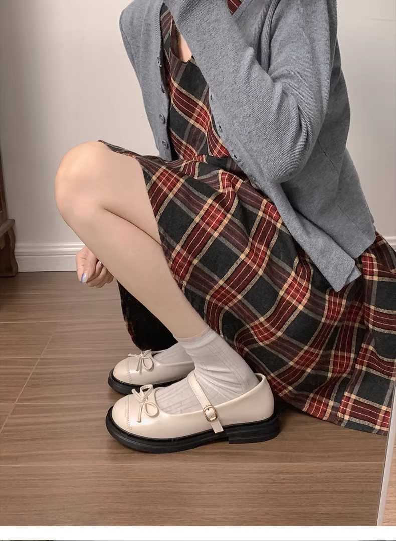 - Giày da nữ đế dày mũi tròn kiểu Anh đen thời thượng, mẫu mới thu đông 2025, phối chân váy, giày Mary Jane tăng chiều cao