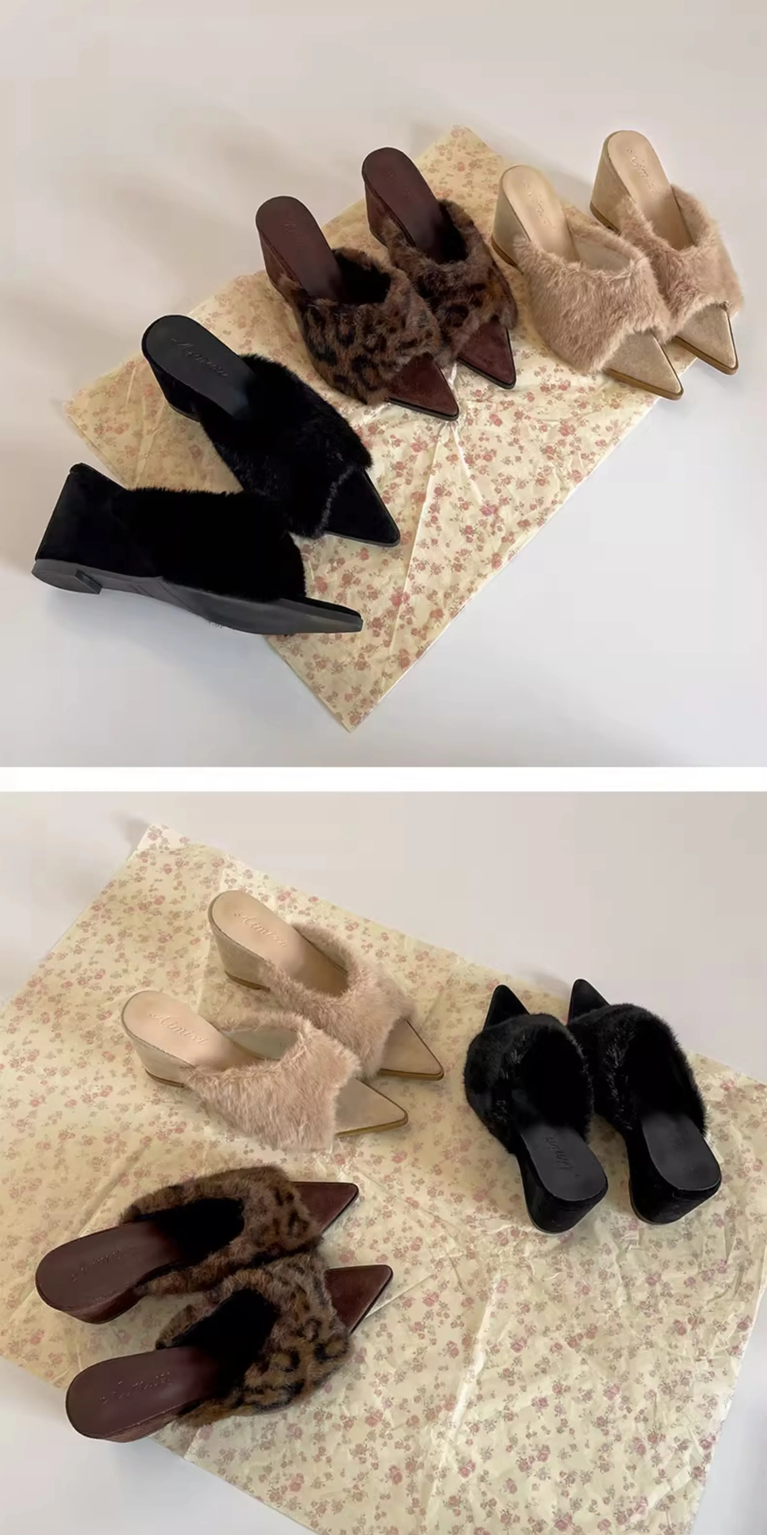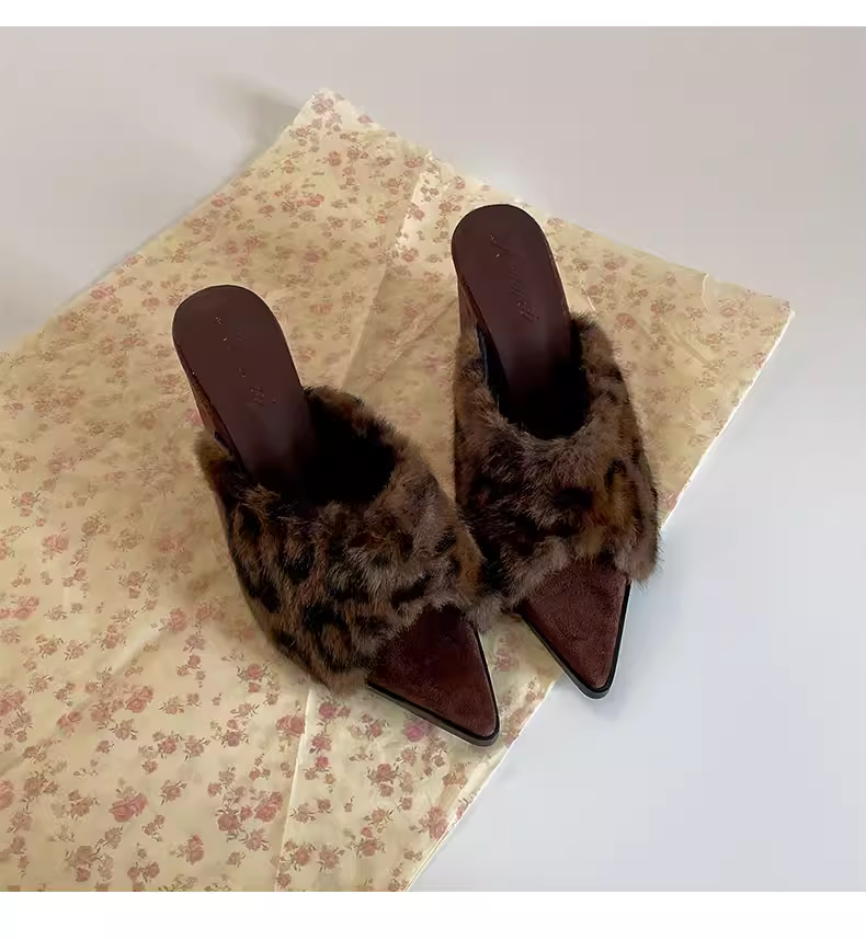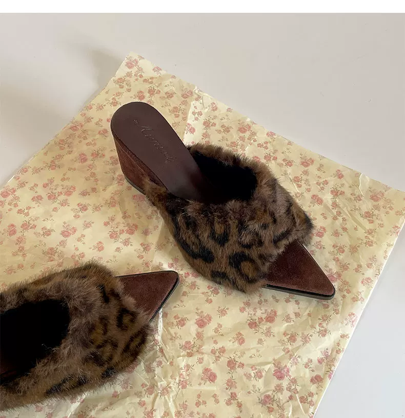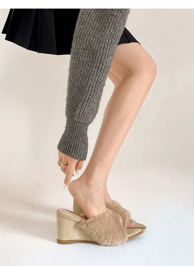 - Giày dép lông dày đế xuồng chống trơn mũi nhọn kiểu retro đen dành cho nữ, mặc ngoài trời mùa đông, kiểu mới 2025, kiểu lười tăng chiều cao bằng vải cotton.