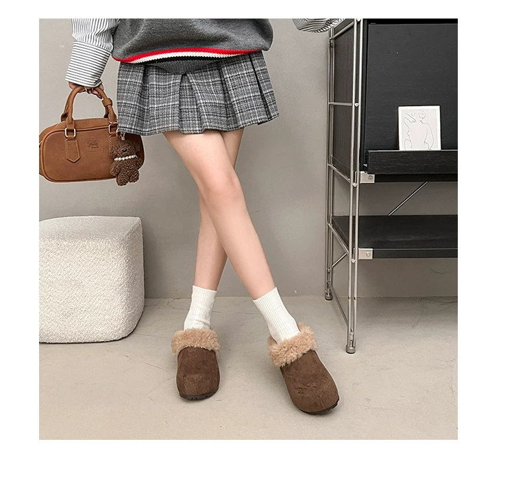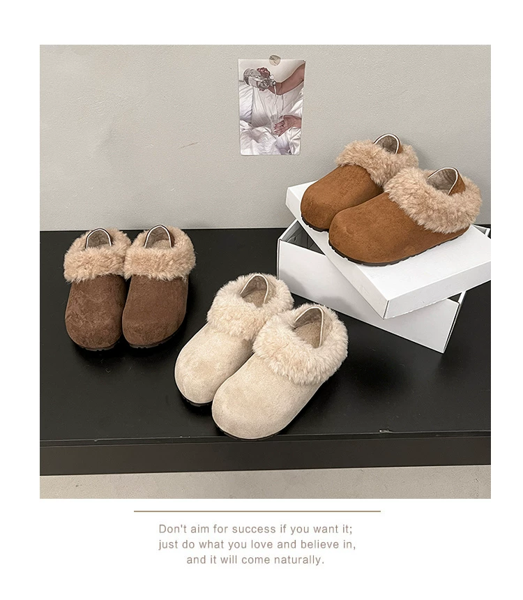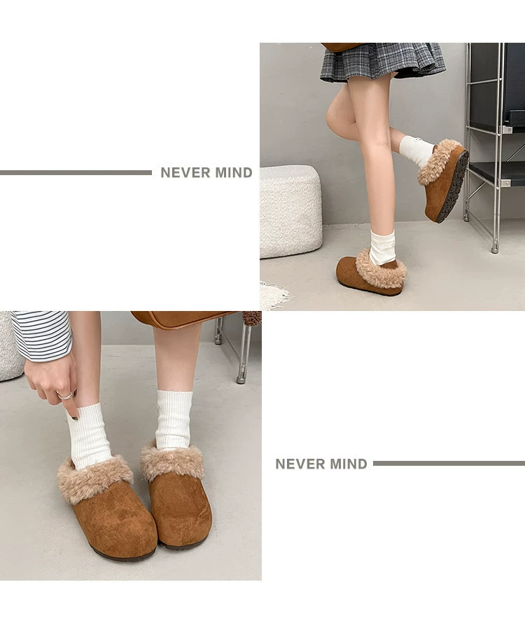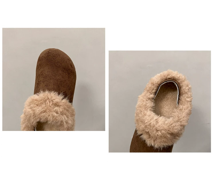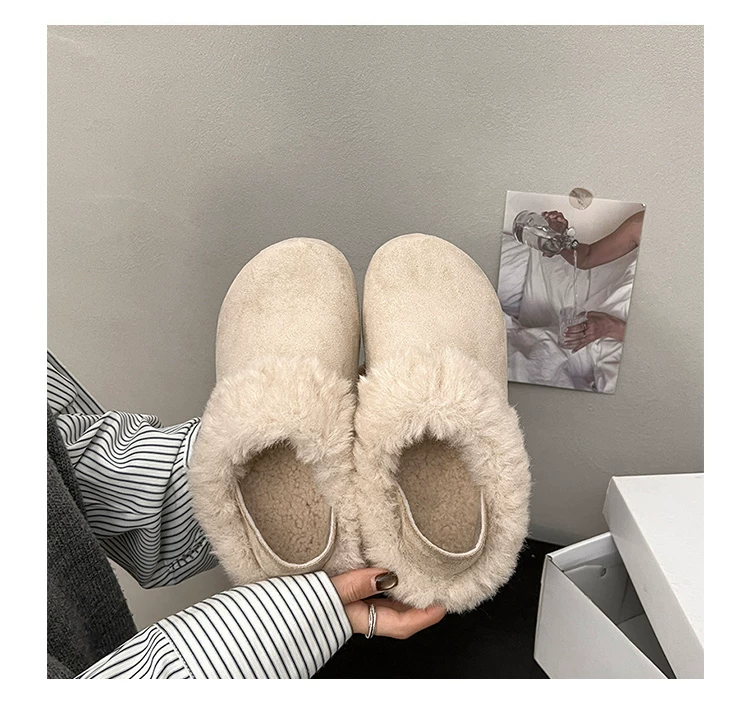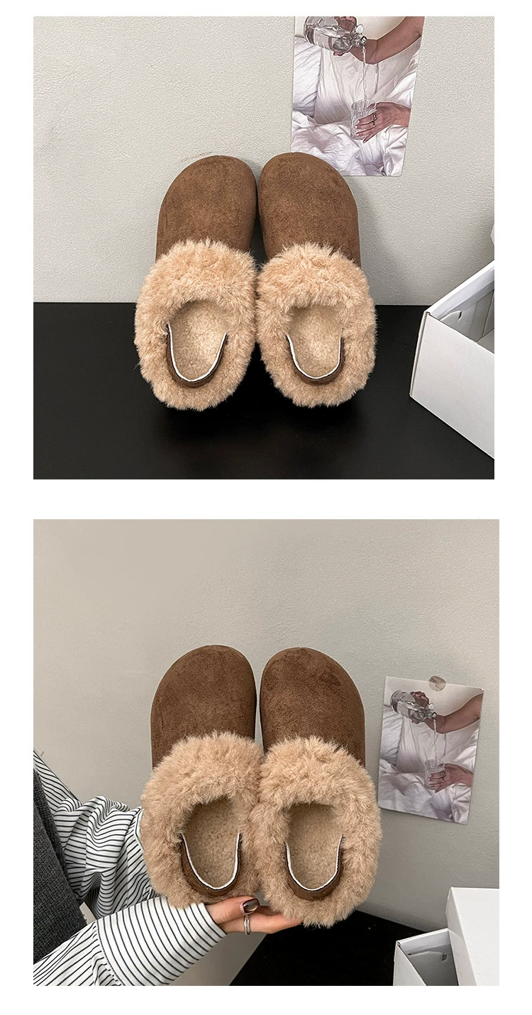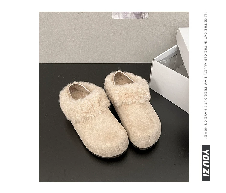 • Giày kiểu Birkenstock đế dày màu trắng, mũi kín, kiểu lười dành cho nữ, mẫu mới mùa đông 2025, dép bông lông retro ấm áp đi ngoài trời.