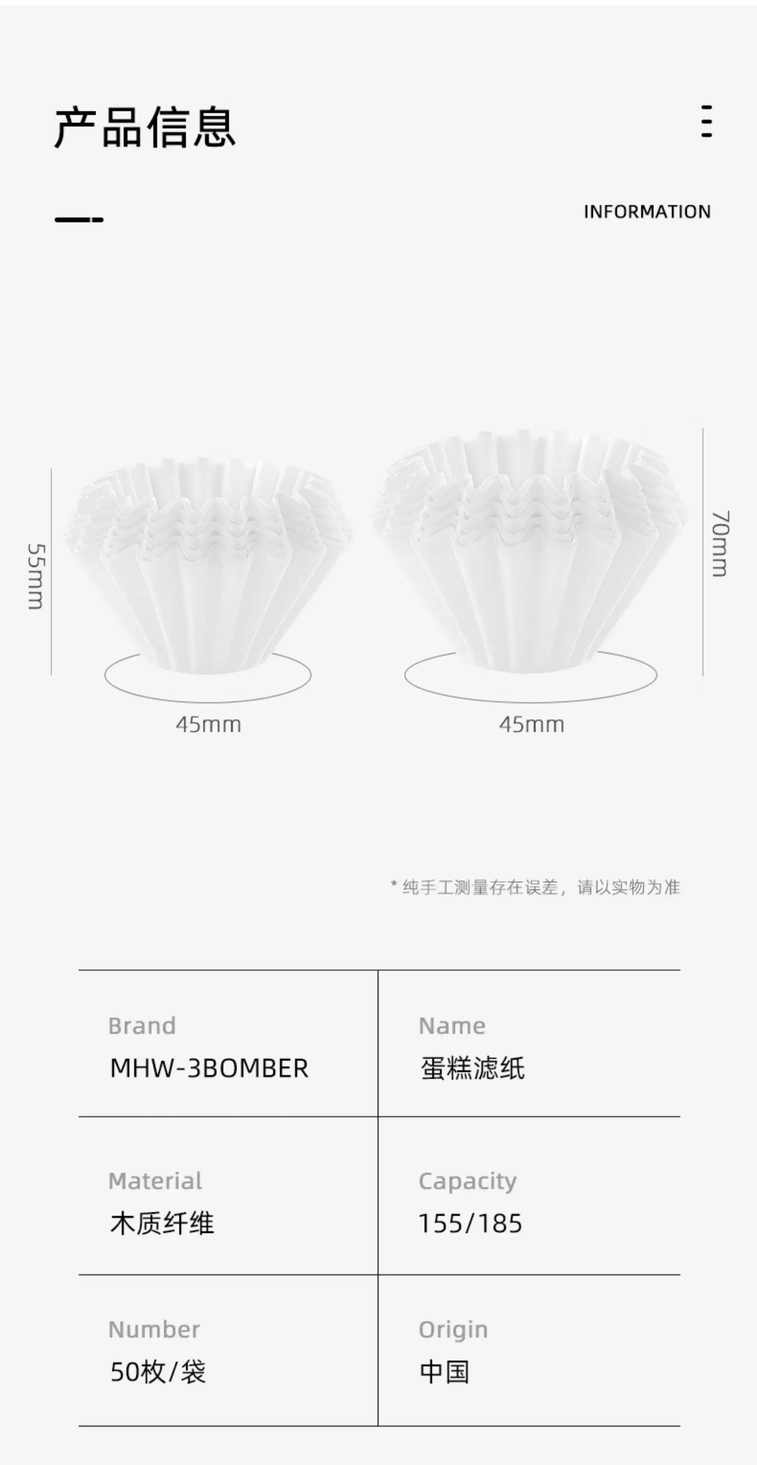 Giấy lọc bánh Bomber MHW họa tiết sóng 155 cốc lọc giấy lọc cà phê pha thủ công đáy phẳng 185 Du Jia Ning