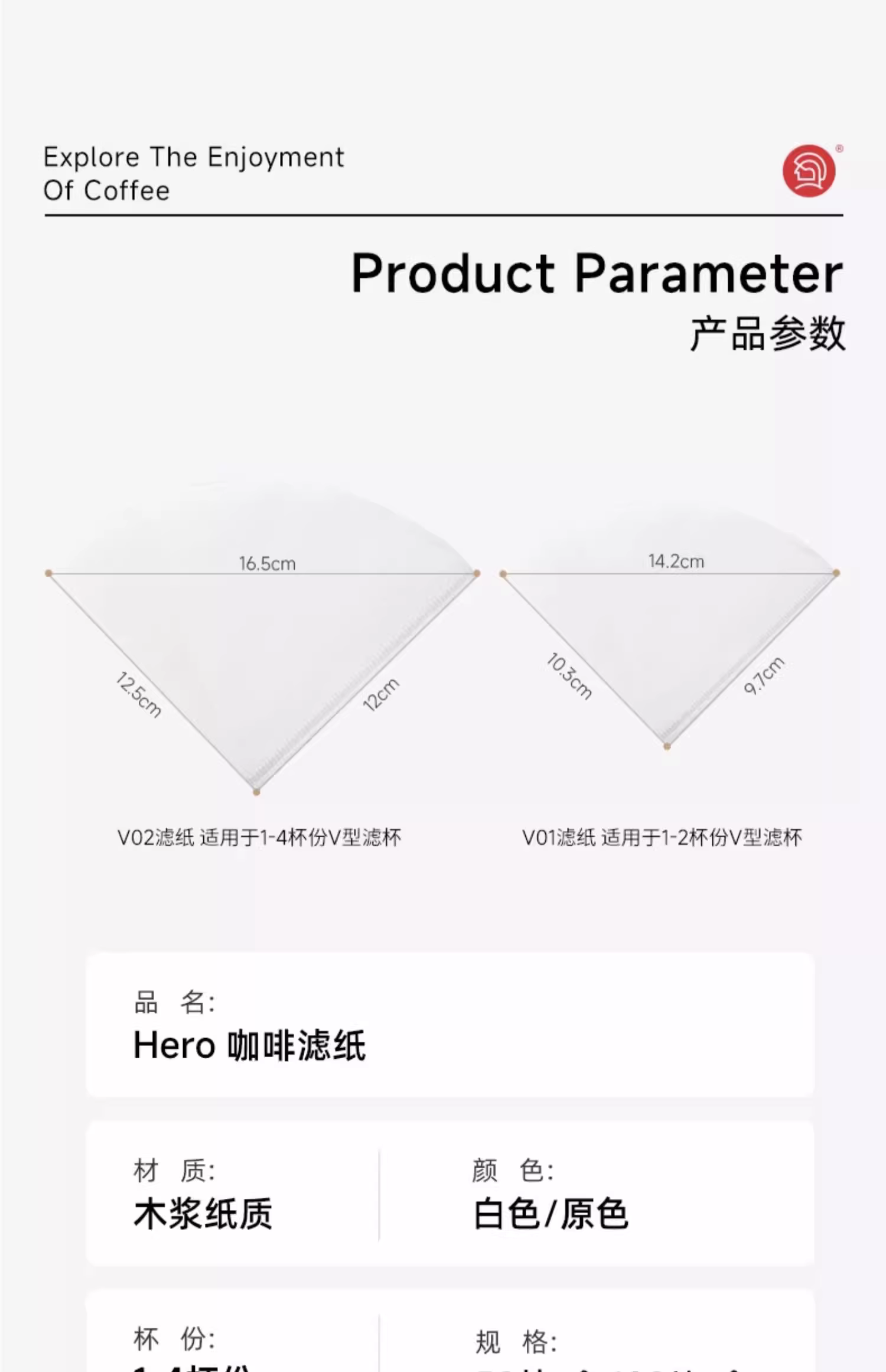 Giấy lọc cà phê Hero V60 hình nón nhập khẩu Nhật Bản, dòng pha cà phê thủ công kiểu nhỏ giọt, giấy lọc Origami Taimo