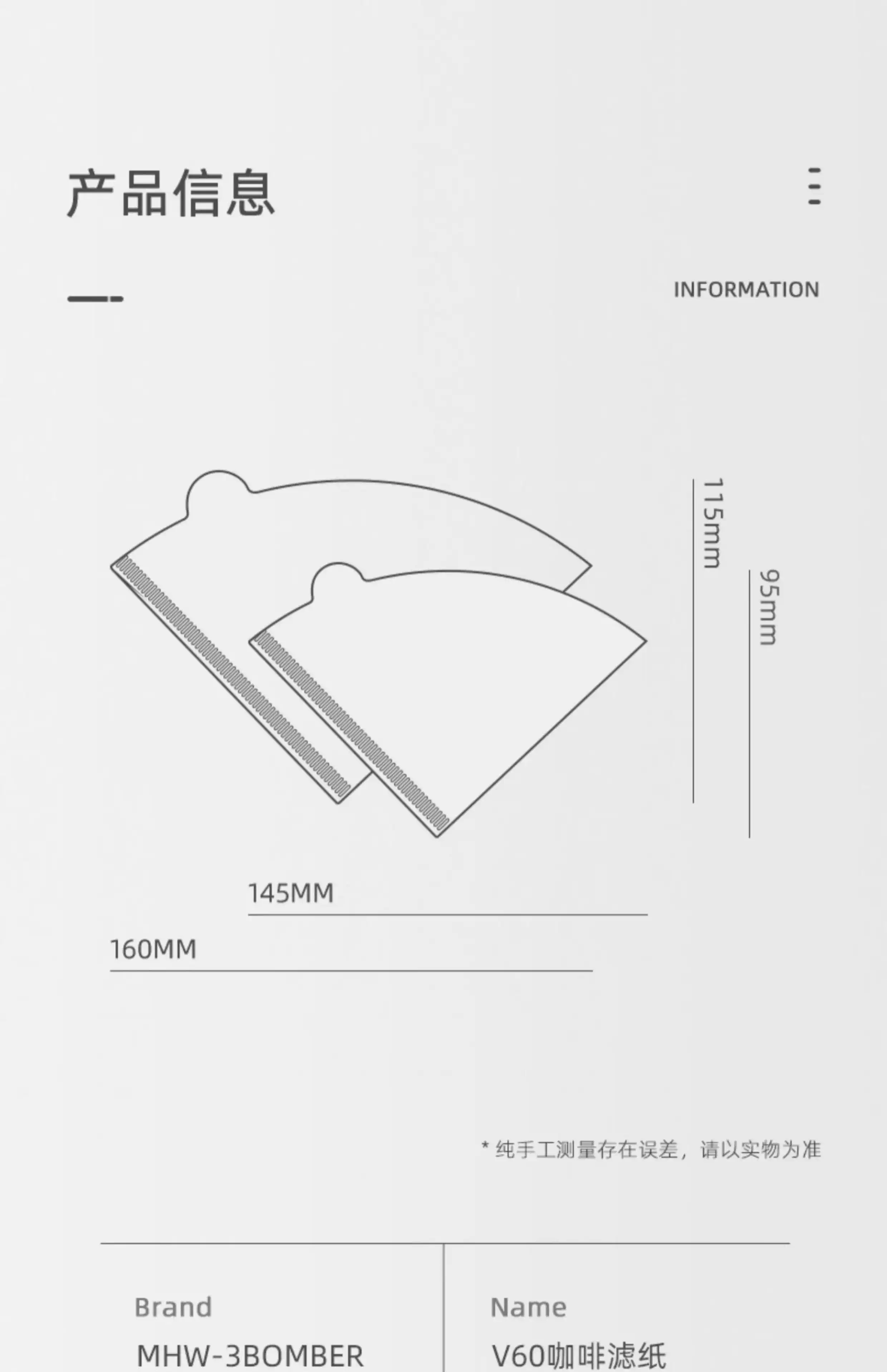 - Giấy lọc cà phê hình nón V60 Bomber MHW, giấy lọc cà phê thủ công làm từ bột gỗ tẩy trắng, giấy lọc hình origami, giấy lọc Hero.