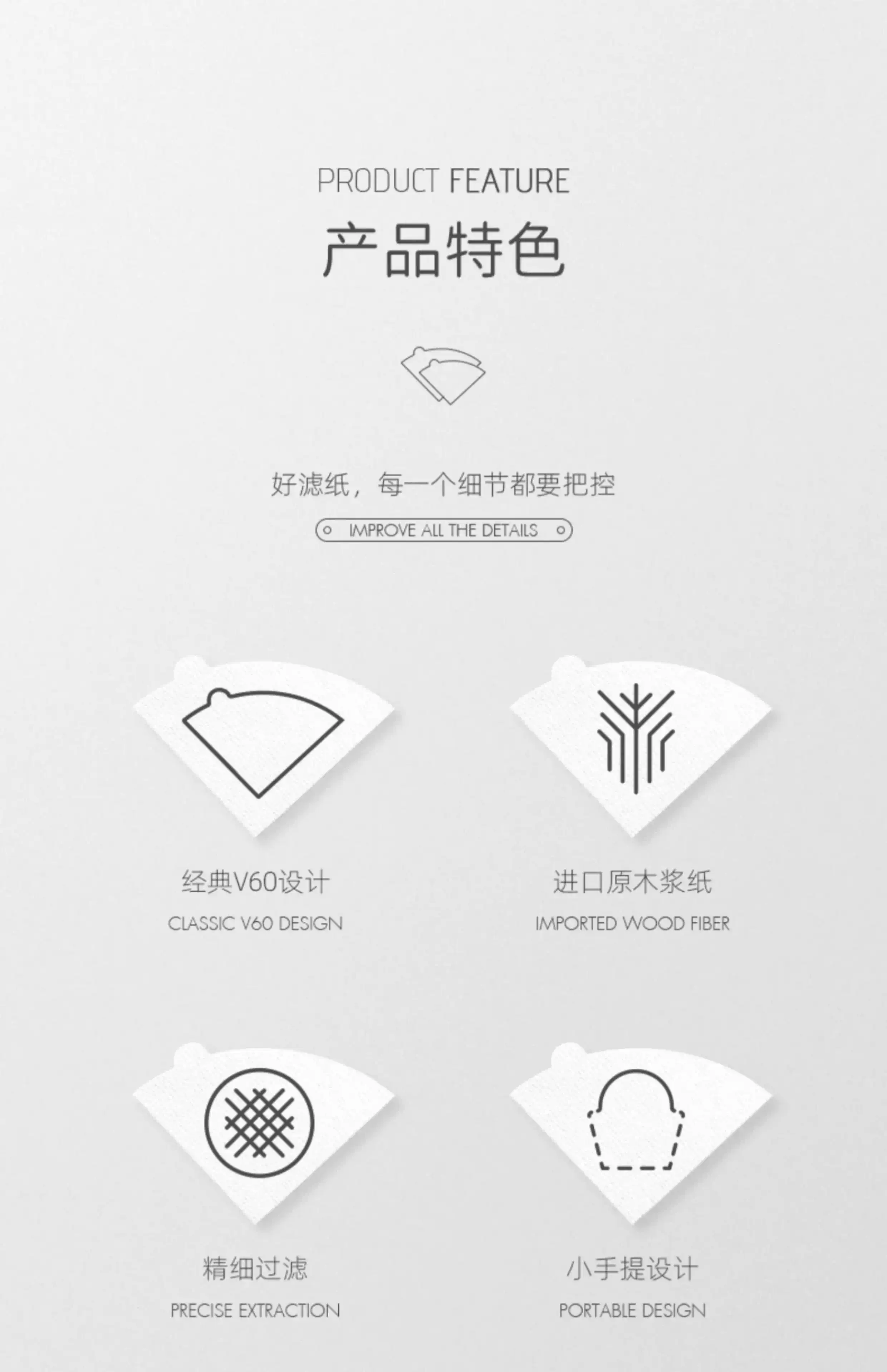 Giấy lọc cà phê hình nón V60 Bomber MHW, giấy lọc cà phê thủ công làm từ bột gỗ tẩy trắng, giấy lọc hình origami, giấy lọc Hero.