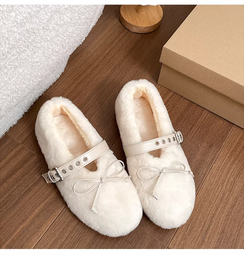 - Giày lông dày dặn, đế dày chống trơn, giữ ấm, tăng chiều cao, chất liệu bông, dành cho nữ, mẫu mới mùa đông 2025, đi ngoài trời