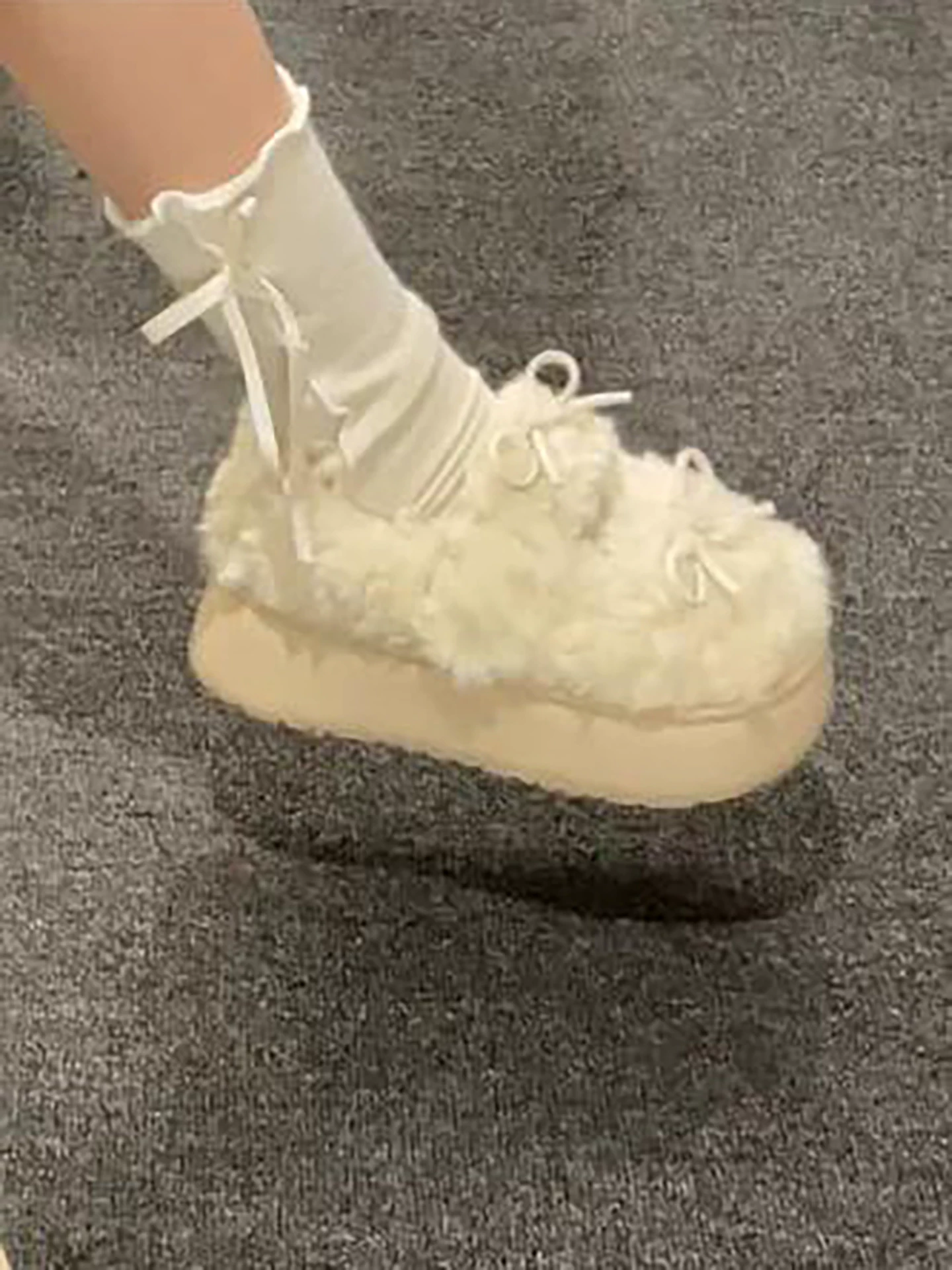- Giày lông dày đế dày kiểu Pháp màu trắng đa năng dành cho nữ, thích hợp đi ngoài trời, mẫu mới mùa đông 2025, lót lông cừu, dày dặn, tăng chiều cao, giày cotton ấm áp.