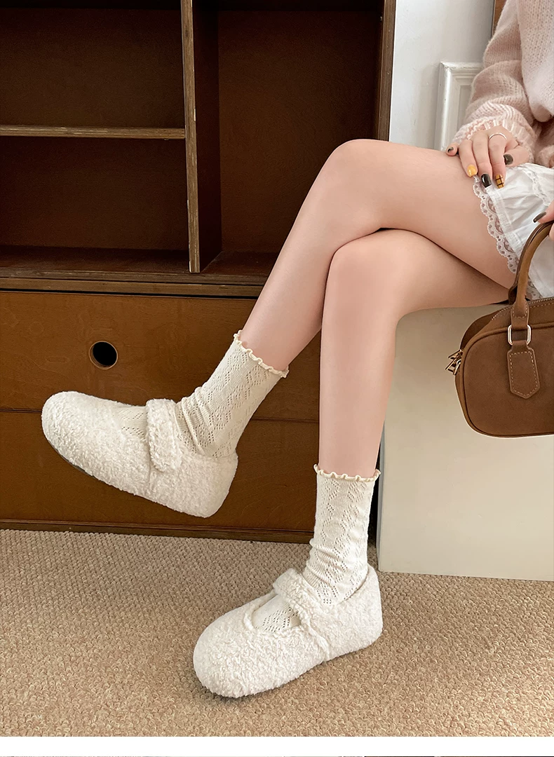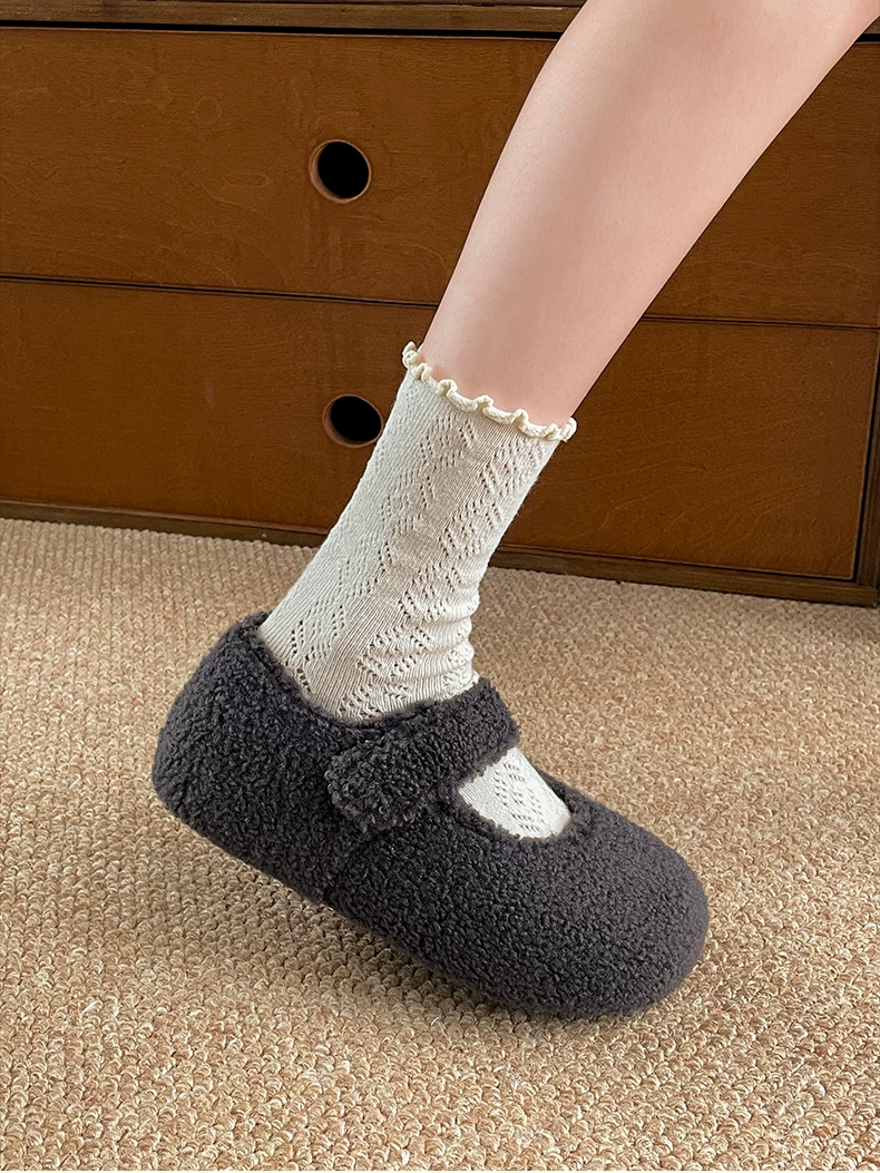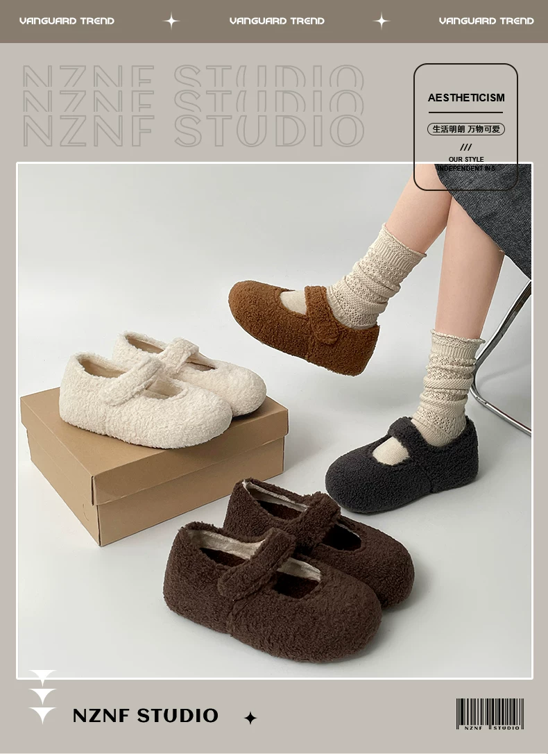 Giày Mary Jane lót lông cừu dày đế dày dành cho nữ, mặc ngoài trời mùa đông, kiểu mới 2025, tăng chiều cao, giày bông giữ ấm đi tuyết.