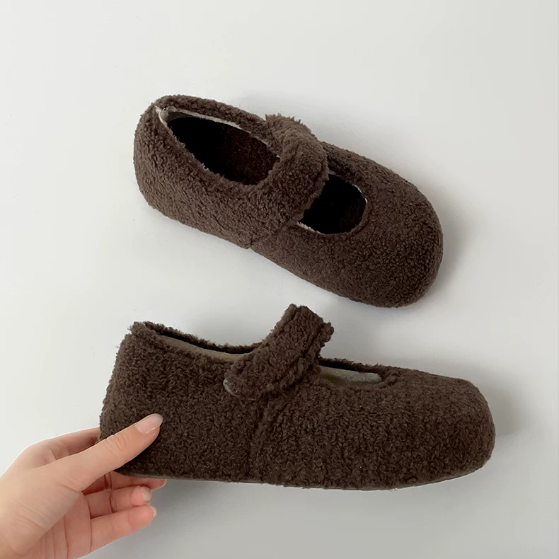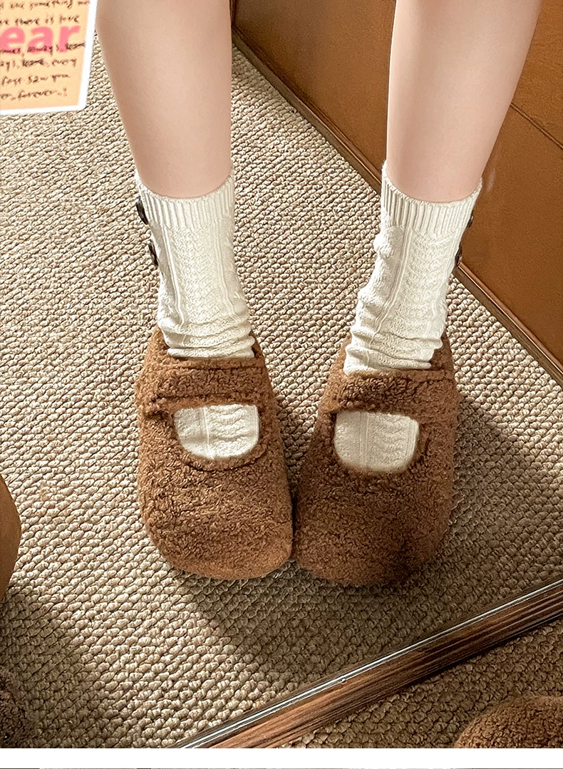 - Giày Mary Jane lót lông cừu dày đế dày dành cho nữ, mặc ngoài trời mùa đông, kiểu mới 2025, tăng chiều cao, giày bông giữ ấm đi tuyết.