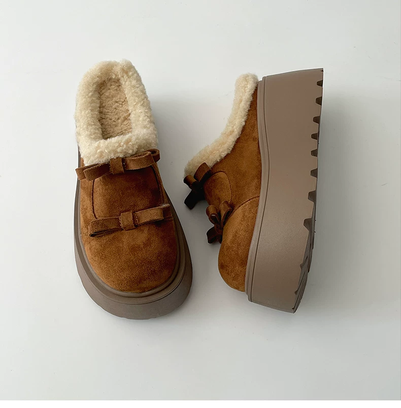 Giày Nan Zai Nanbian màu trắng lót lông ấm áp, đế dày kiểu Birkenstock dành cho nữ, mẫu mới mùa đông 2025, dép bông lông tăng chiều cao