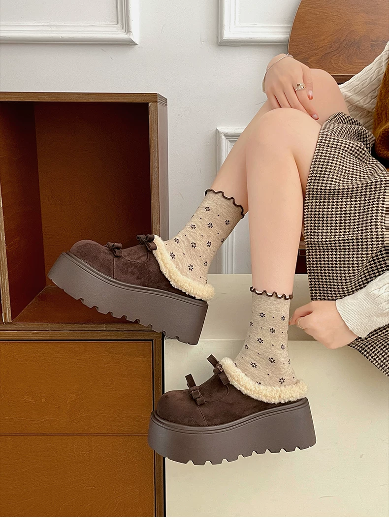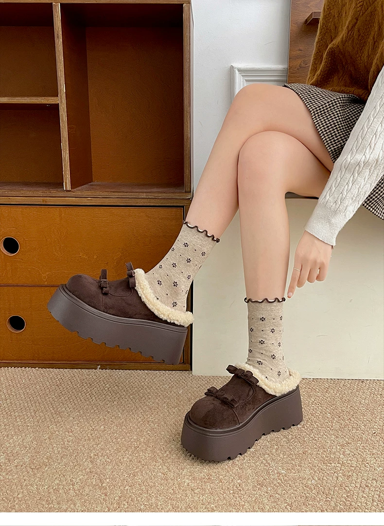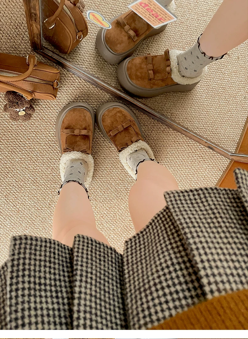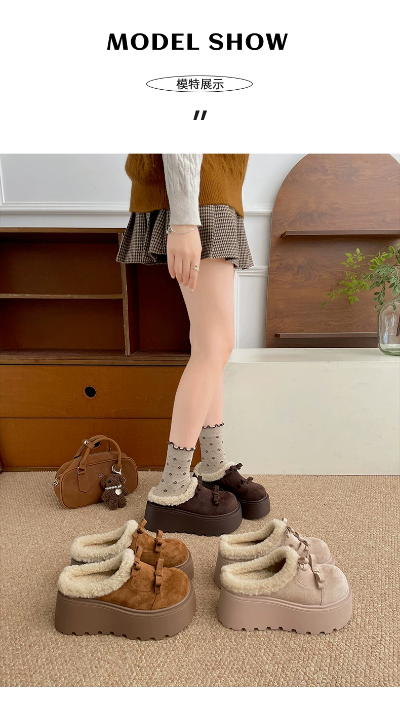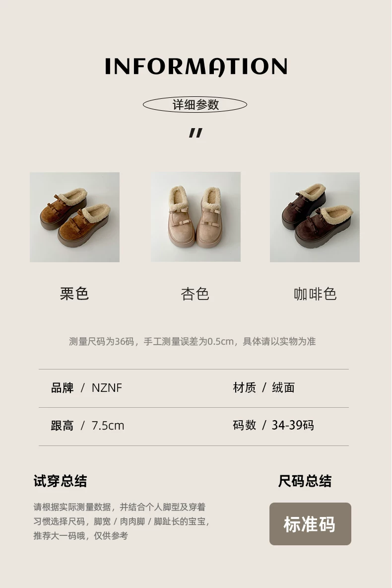 - Giày Nan Zai Nanbian màu trắng lót lông ấm áp, đế dày kiểu Birkenstock dành cho nữ, mẫu mới mùa đông 2025, dép bông lông tăng chiều cao