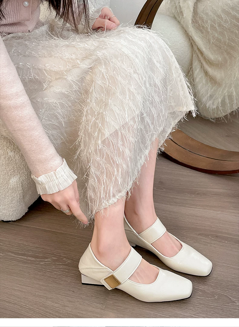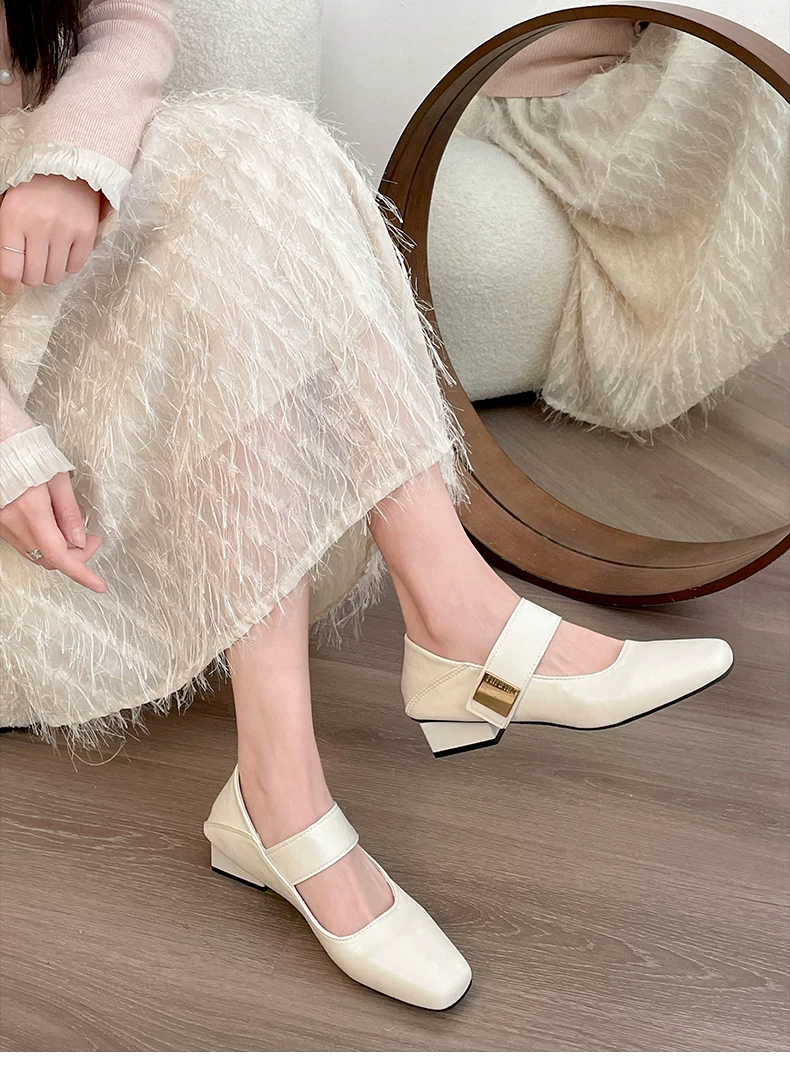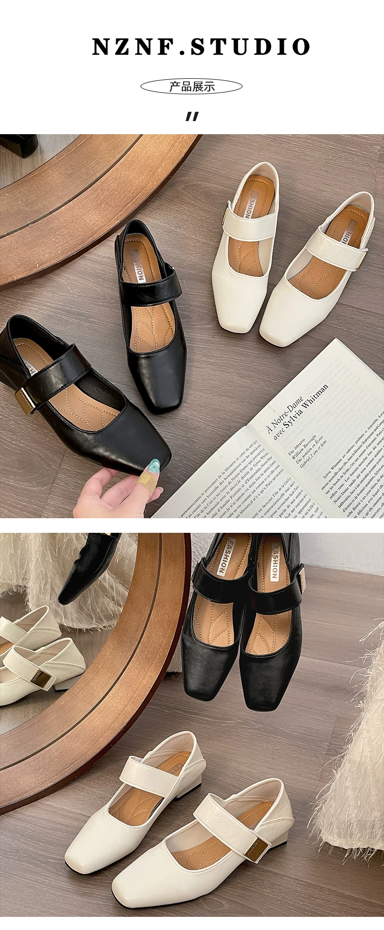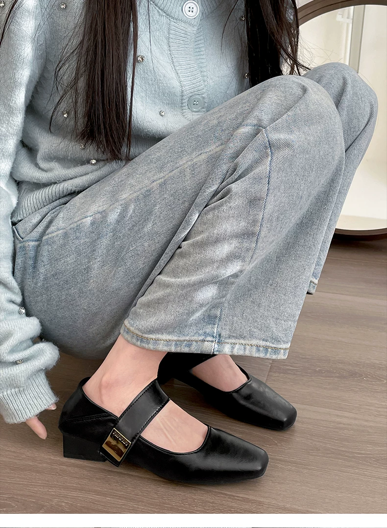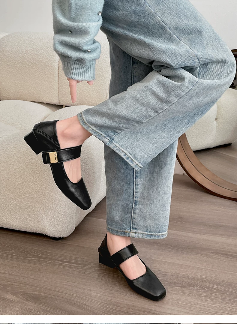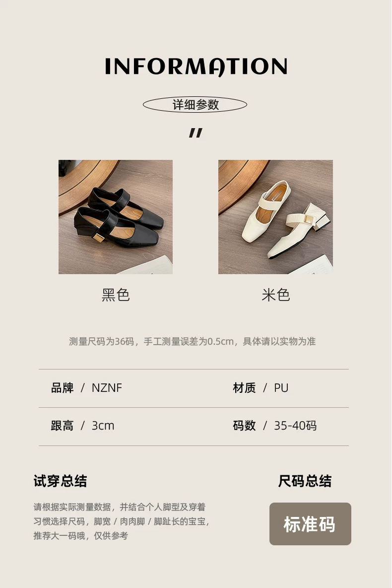 - Giày nữ đế vuông, mũi vuông, miệng nông, gót dày, kiểu dáng mới mùa thu 2025, phối cùng chân váy, giày da Mary Jane kiểu Pháp tăng chiều cao.