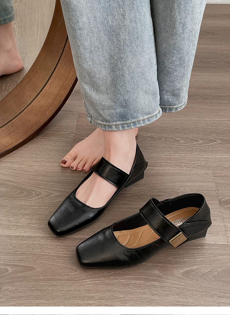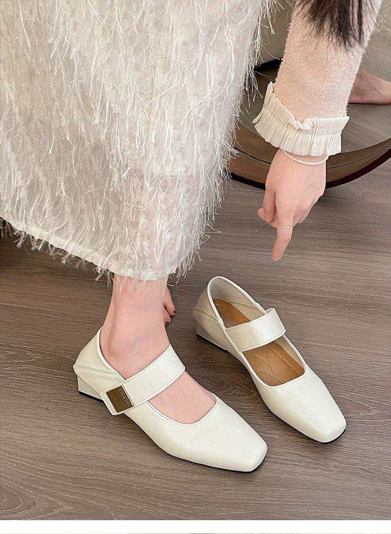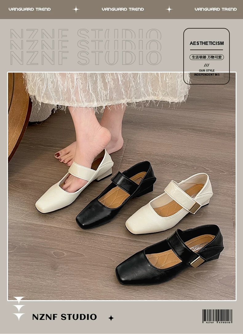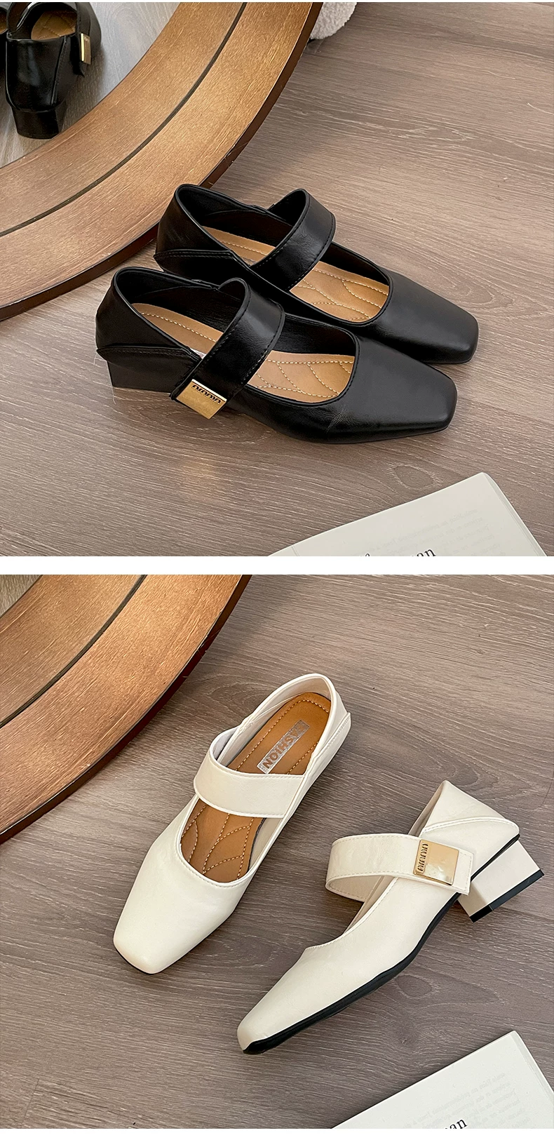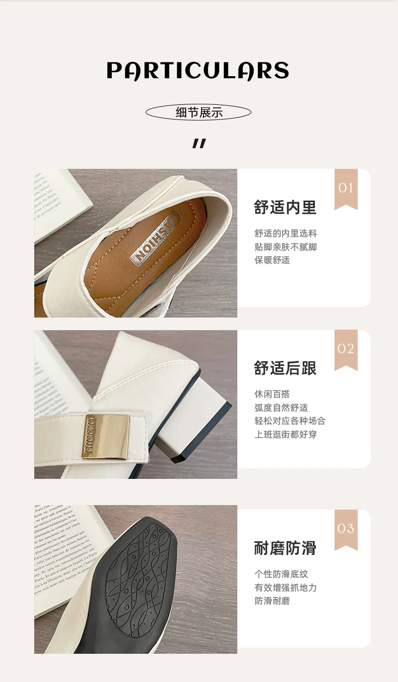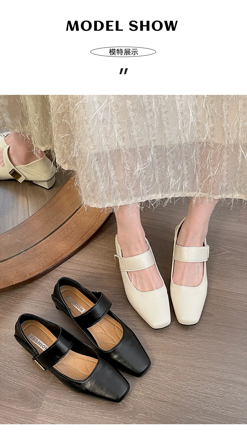 - Giày nữ đế vuông, mũi vuông, miệng nông, gót dày, kiểu dáng mới mùa thu 2025, phối cùng chân váy, giày da Mary Jane kiểu Pháp tăng chiều cao.