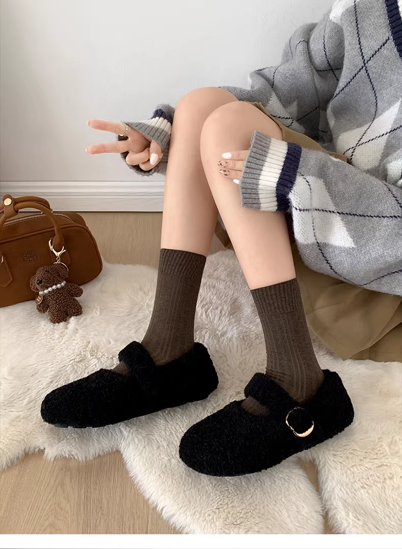 - Giày nữ Nanzai Southern Black Retro đế dày lót lông mềm mùa đông 2025 mới giữ ấm chống trơn, thích hợp đi ngoài trời