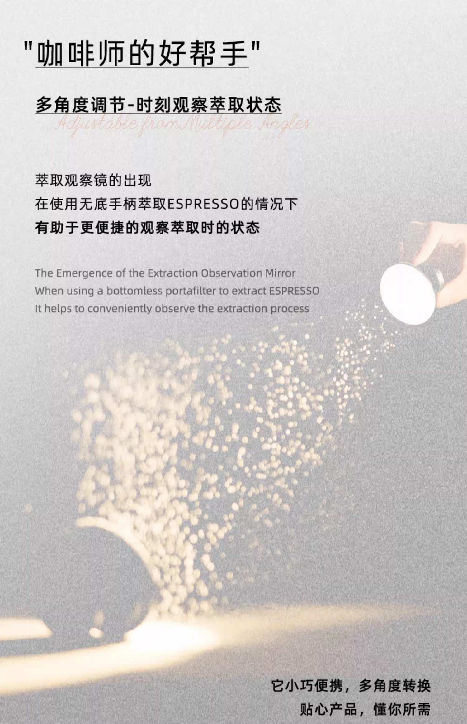 - Gương quan sát chiết xuất MHW của máy bay ném bom, tay cầm xoay đa góc, quan sát chất lỏng espresso