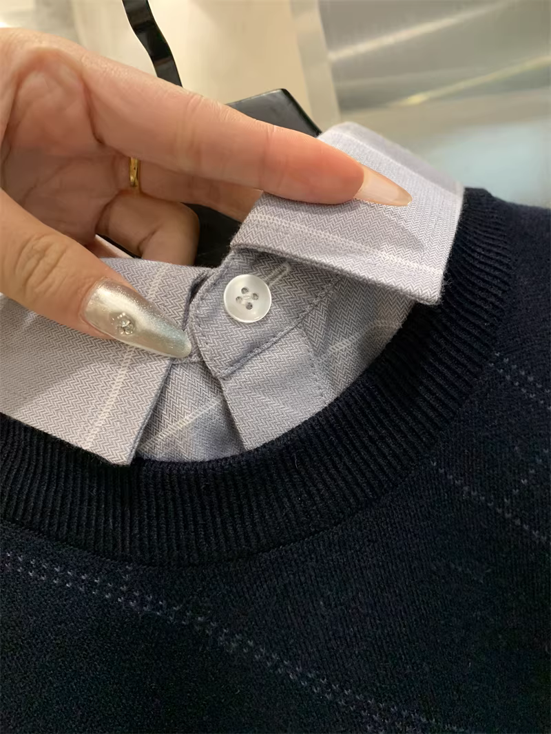 - Hàng hiệu Don Quixote H! Chất liệu len pha! Áo len giả hai mảnh cổ sơ mi công sở nhẹ nhàng mùa thu đông