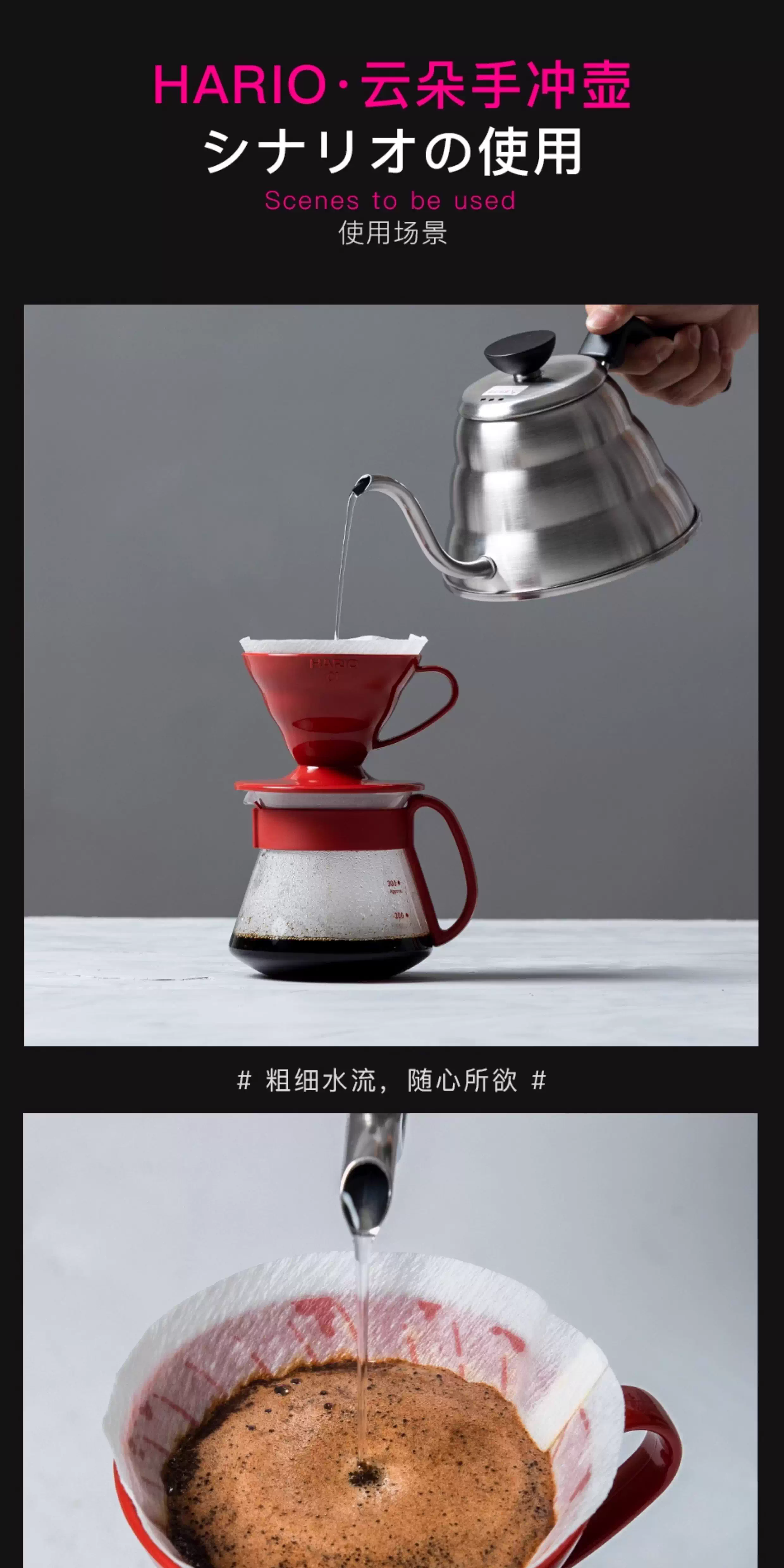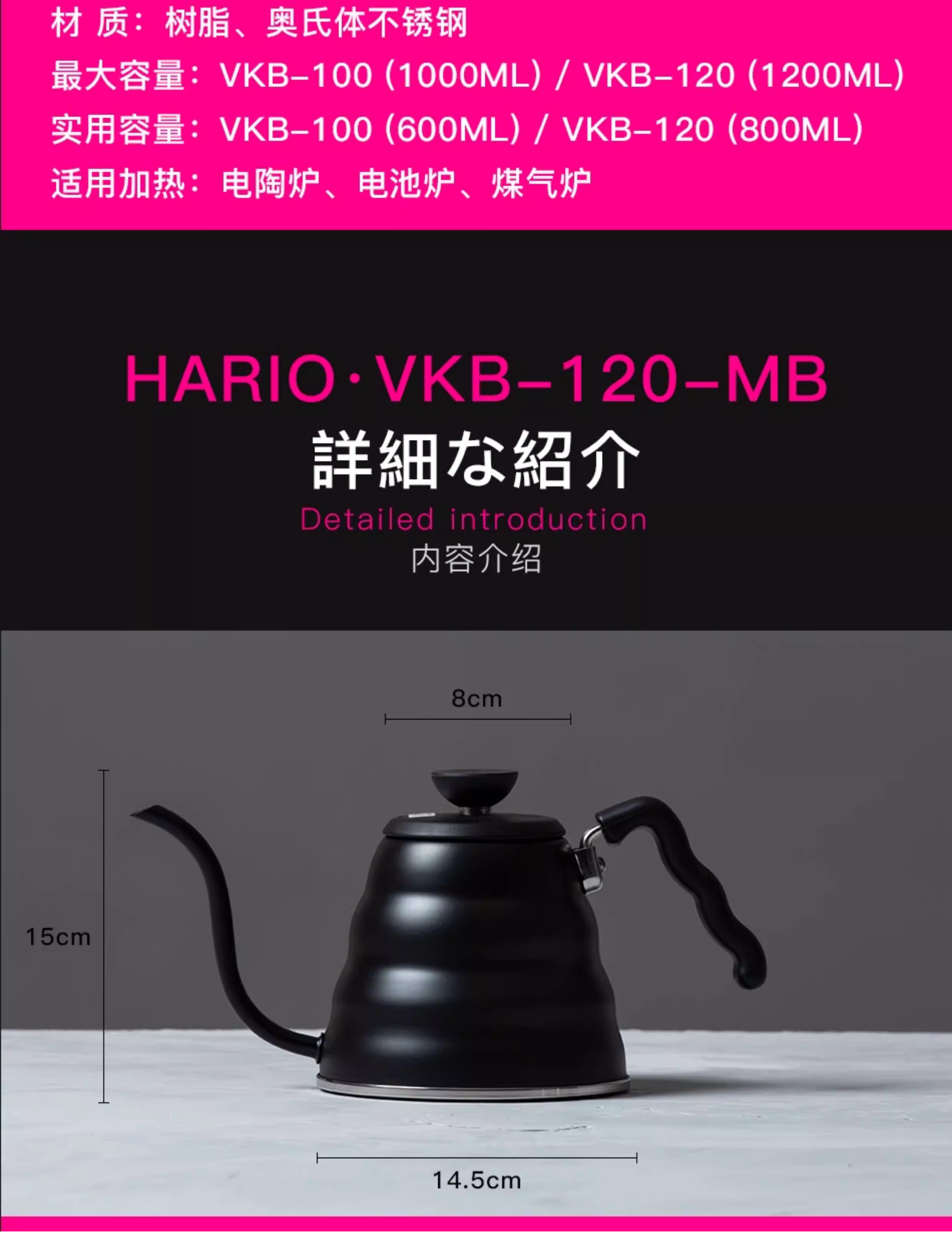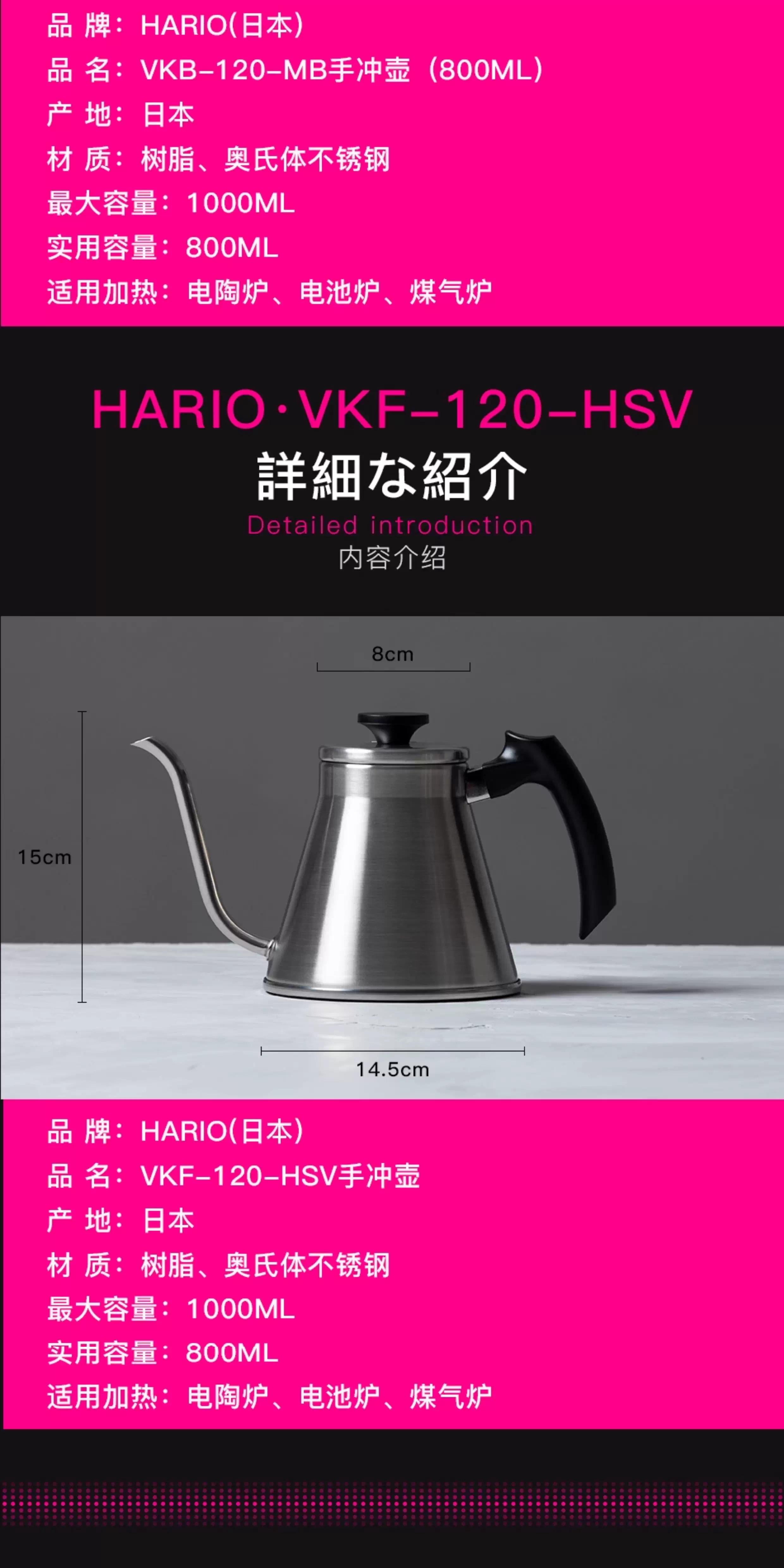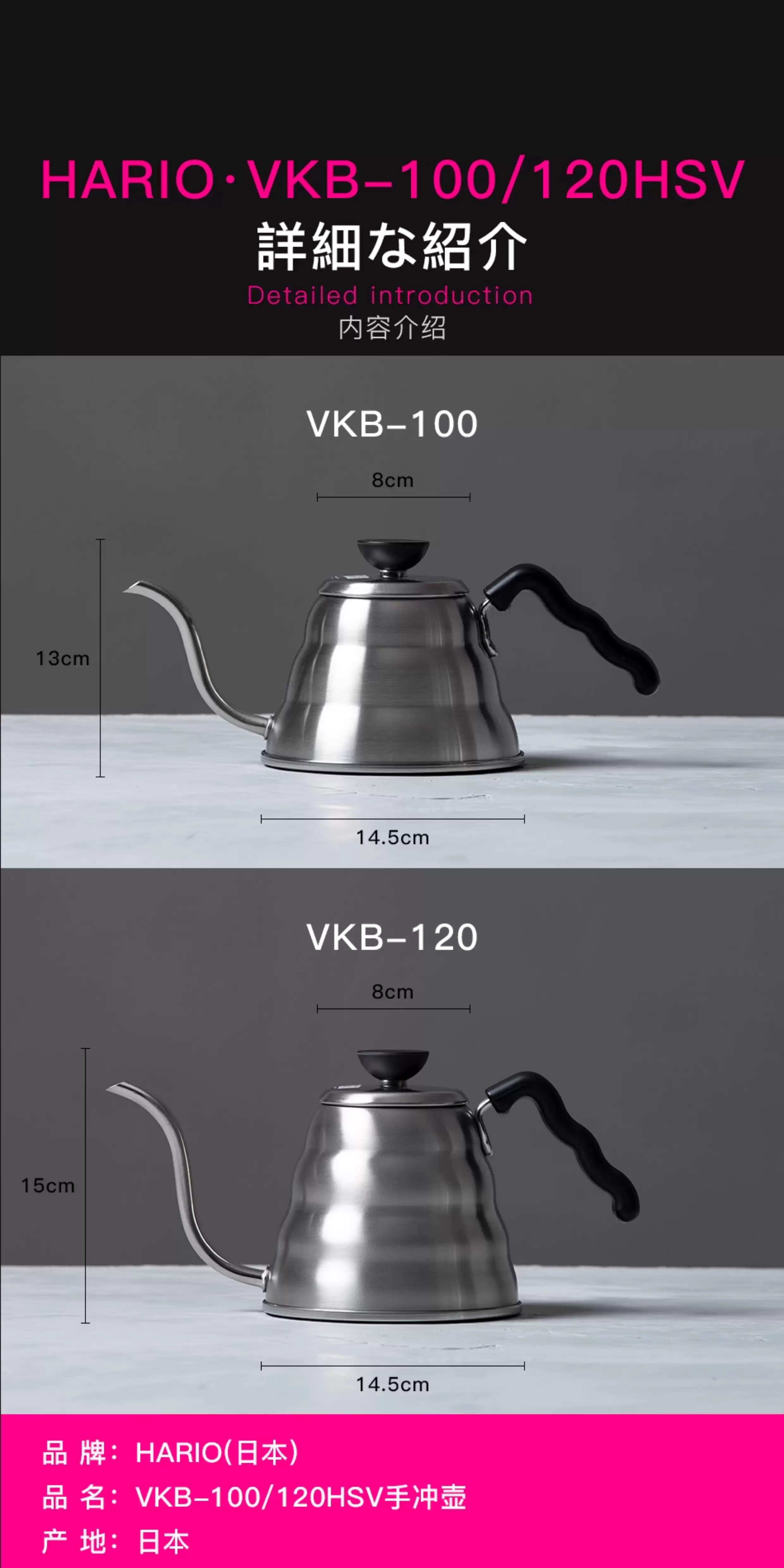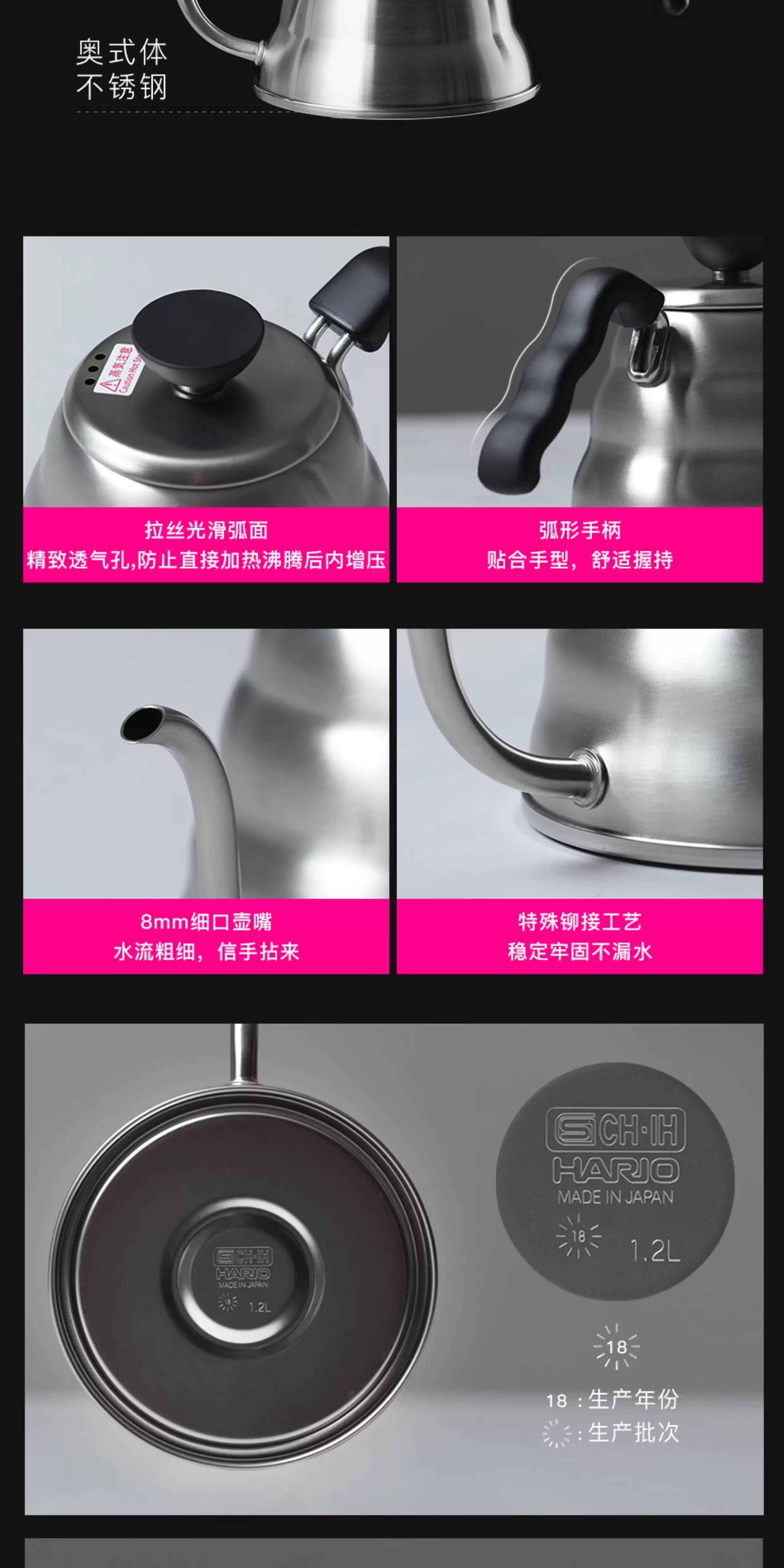 - HARIO Nhật Bản Cà phê nguyên chất nhập khẩu chính hãng Pour Over Pot V60 Bình pha cà phê miệng hẹp bằng thép không gỉ VKB-100/120