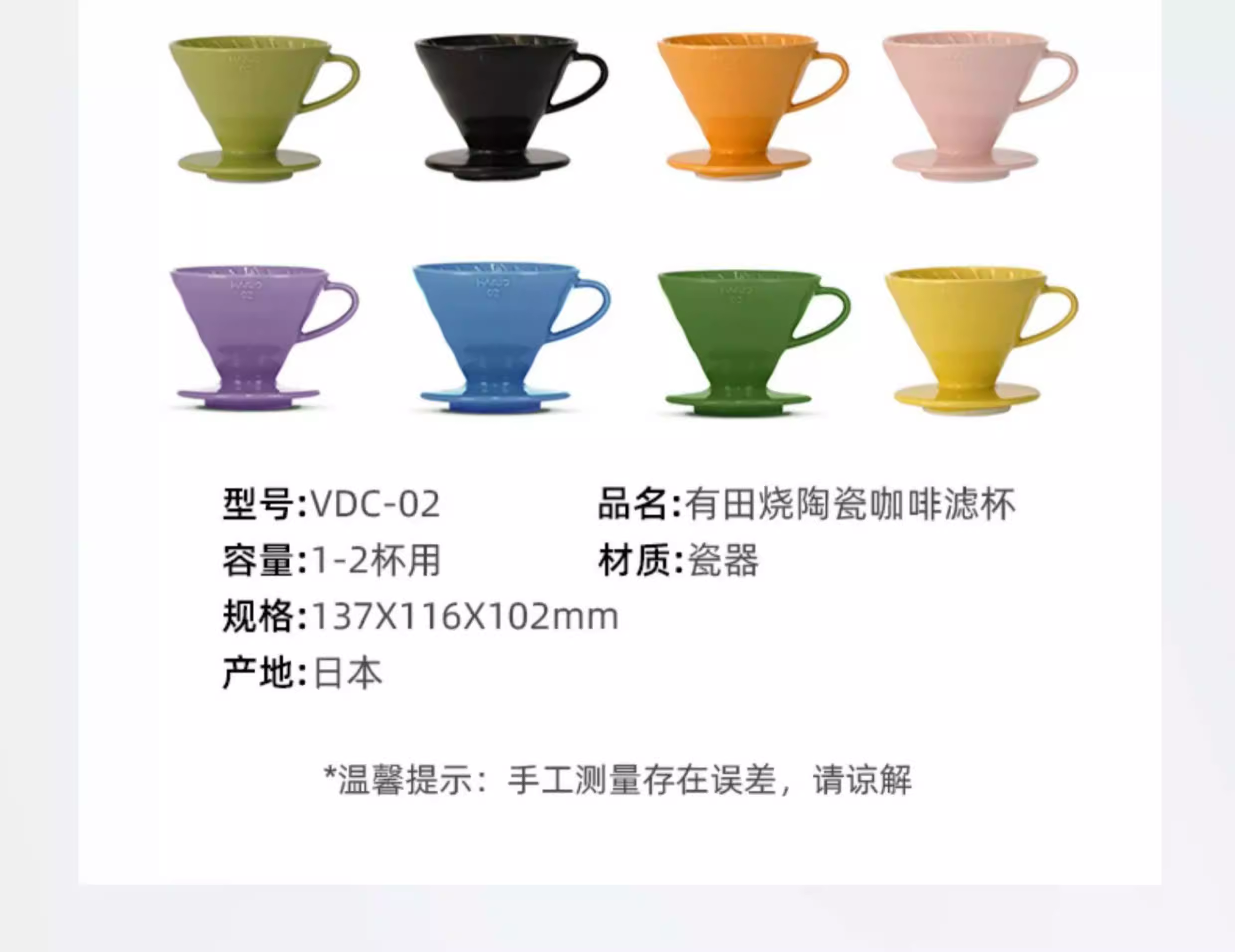 - HARIO Nhật Bản Nhập khẩu chính hãng V60 Arita Ware Cốc lọc gốm sứ pha cà phê thủ công Cốc lọc nhỏ giọt VDC