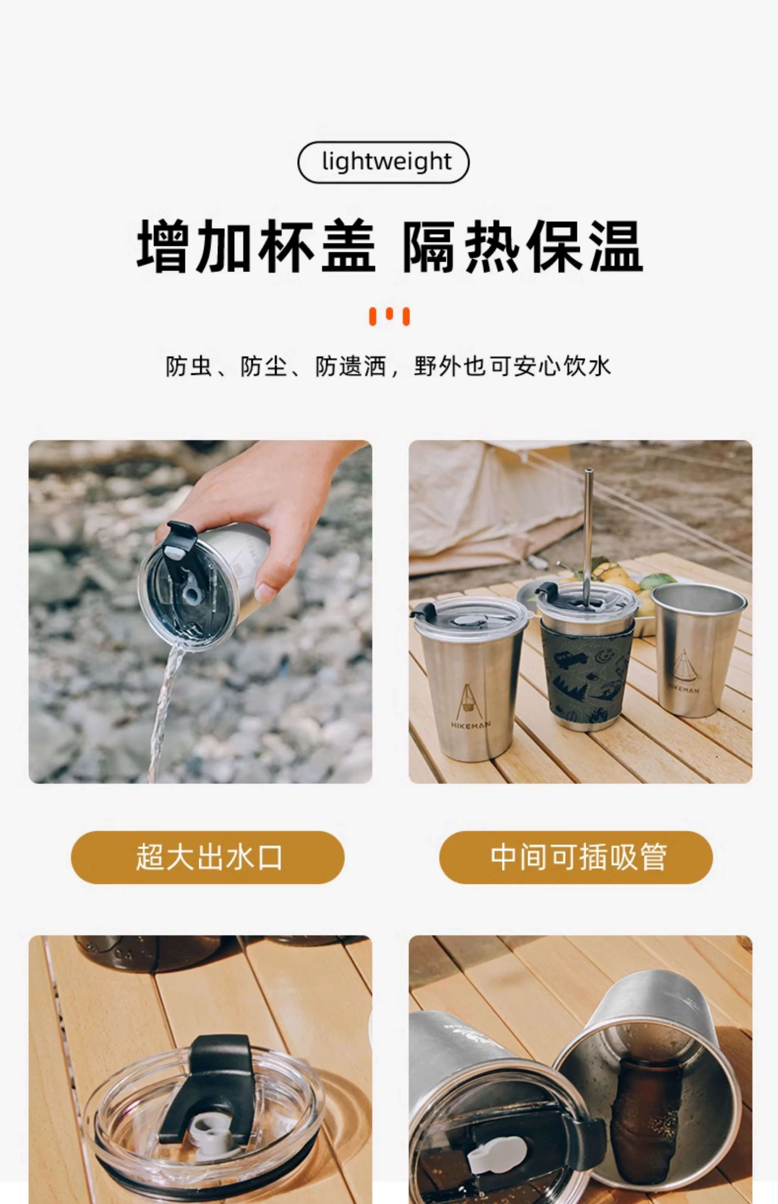 - HIKEMAN cắm trại ngoài trời cốc cắm trại di động cốc trà và cà phê cốc nước thép không gỉ 304 bộ cốc một lớp