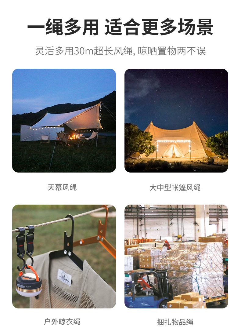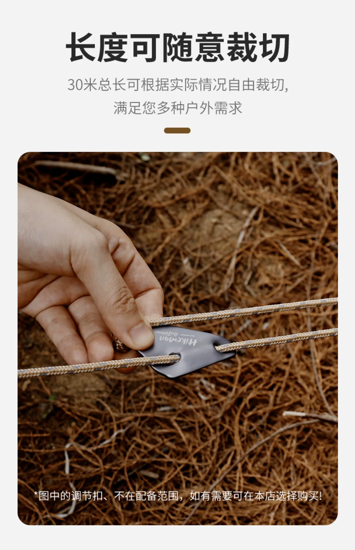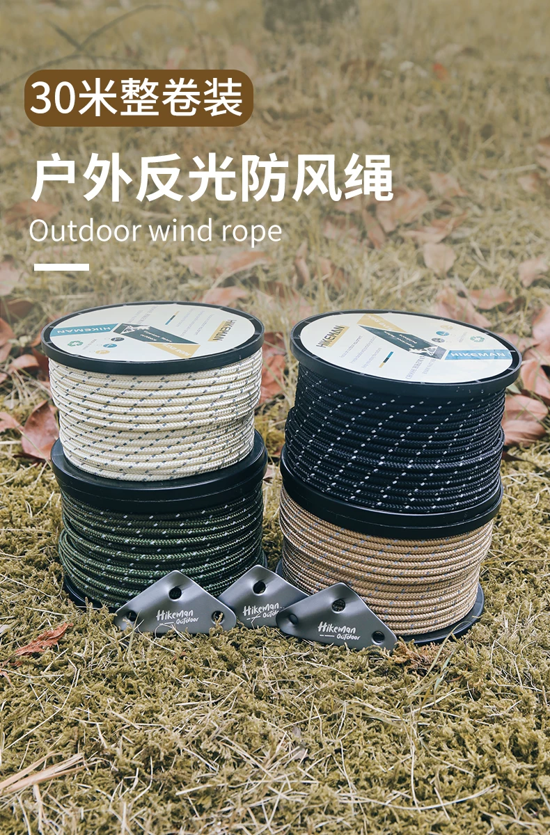 - HIKEMAN ngoài trời tán chống gió dây 30m lều phản quang trại dây khóa tam giác cố định kéo dây phơi quần áo