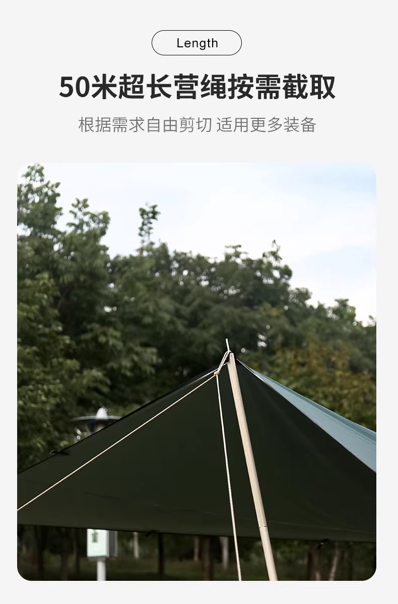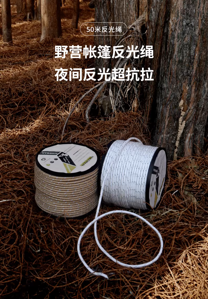 - HIKEMAN ngoài trời tán chống gió dây dày 5mm phản quang cắm trại dây lều cố định dây 50m dây phơi quần áo