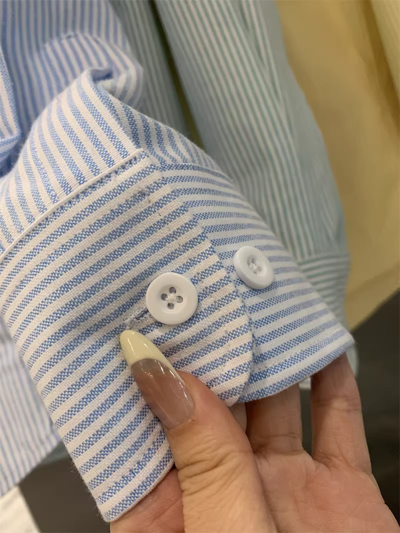 - Họa tiết sọc dọc nhiều màu của Don Quixote! Xu hướng áo sơ mi dài tay thêu đơn giản phong cách Hàn Quốc dành cho cặp đôi mùa xuân và mùa thu.