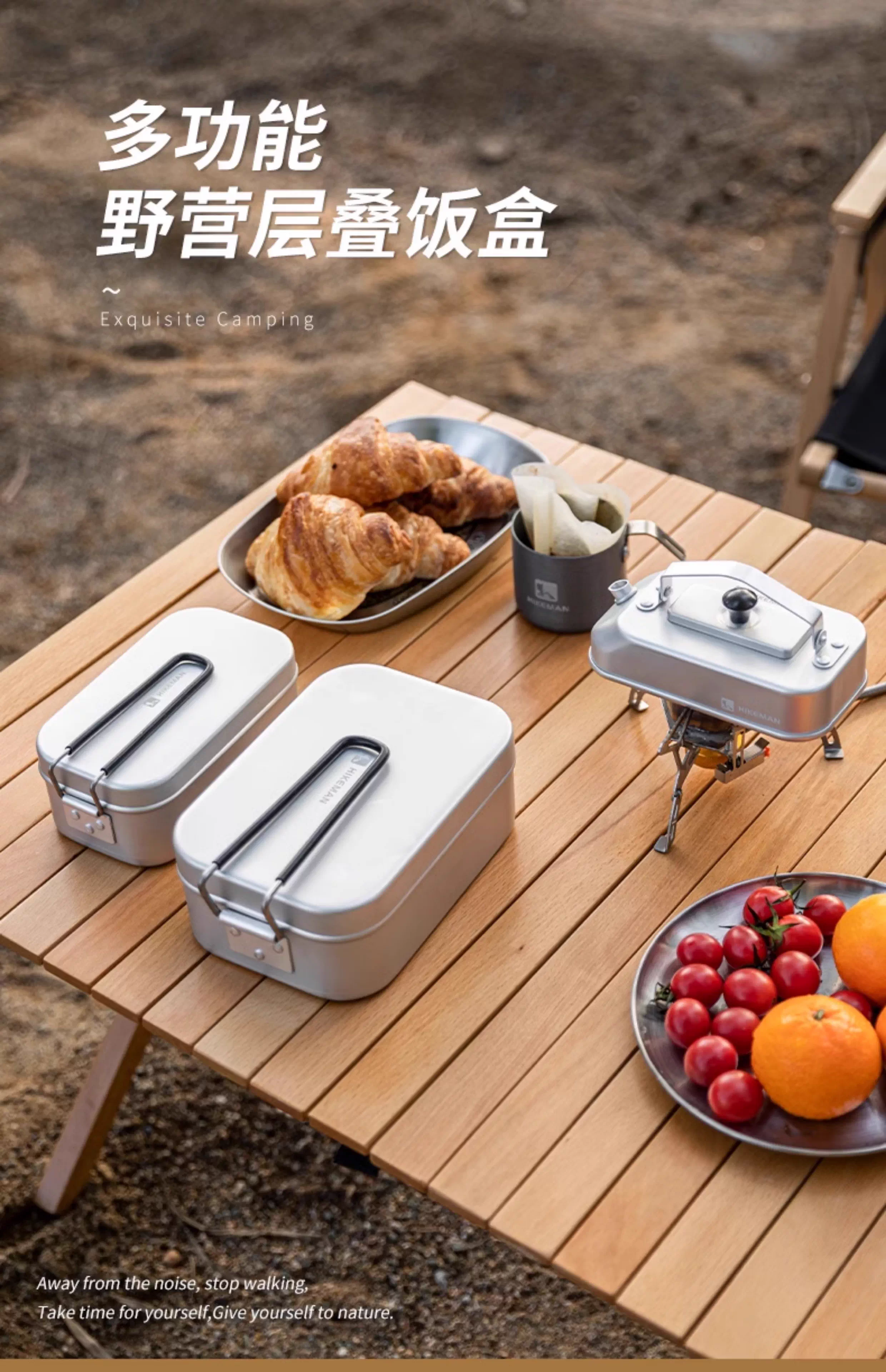 - Hộp cơm trưa bằng hợp kim nhôm ngoài trời, bộ đồ ăn dã ngoại, ấm đun nước, hộp cơm đa năng, bộ dụng cụ nấu ăn dã ngoại cá nhân cho lính, bộ di động