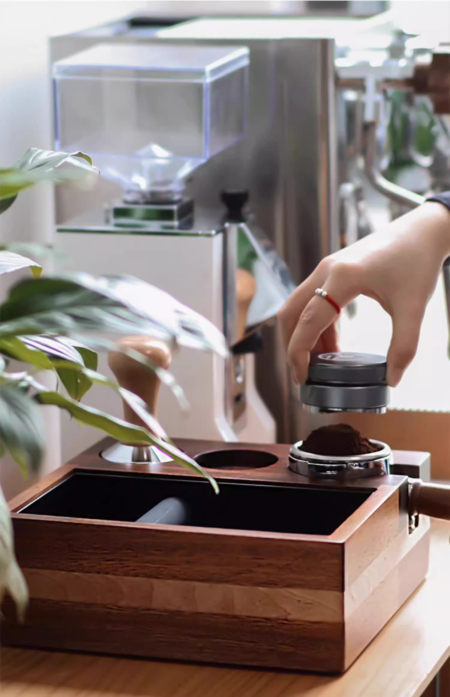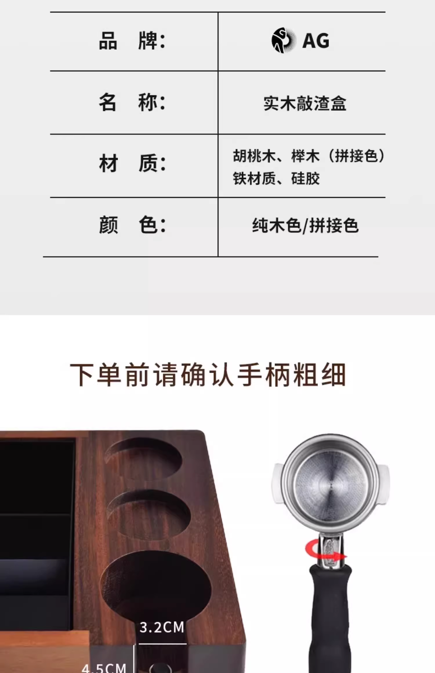 - Hộp đựng bã cà phê đa năng AG, giá đỡ máy pha cà phê, hộp đựng bã cà phê, dụng cụ tán bột cà phê, tay cầm phân phối, giá đỡ, giá đỡ tamper 58mm, gỗ nguyên khối