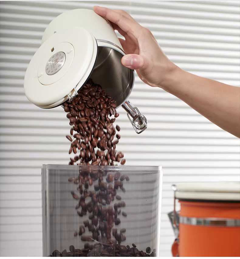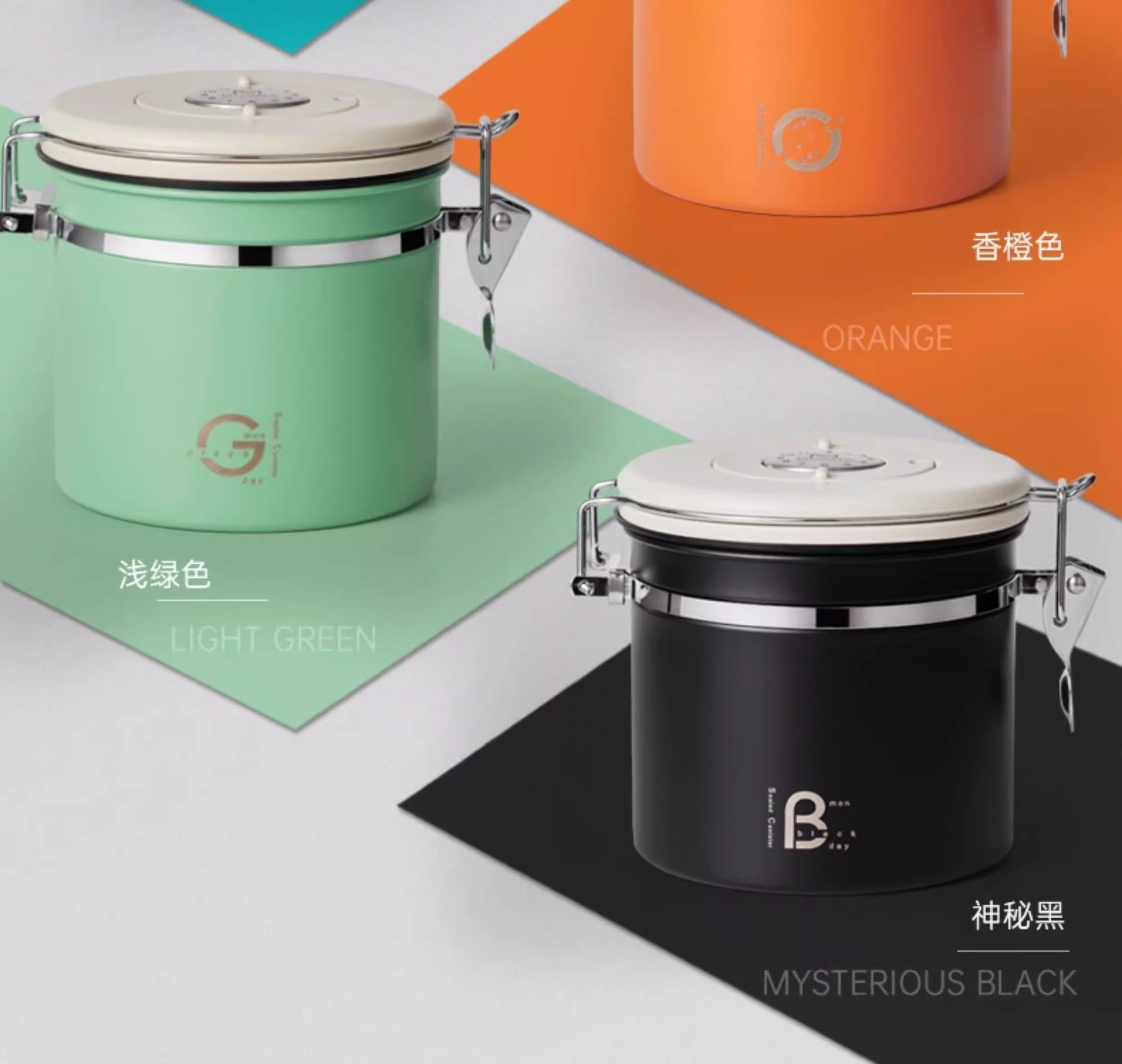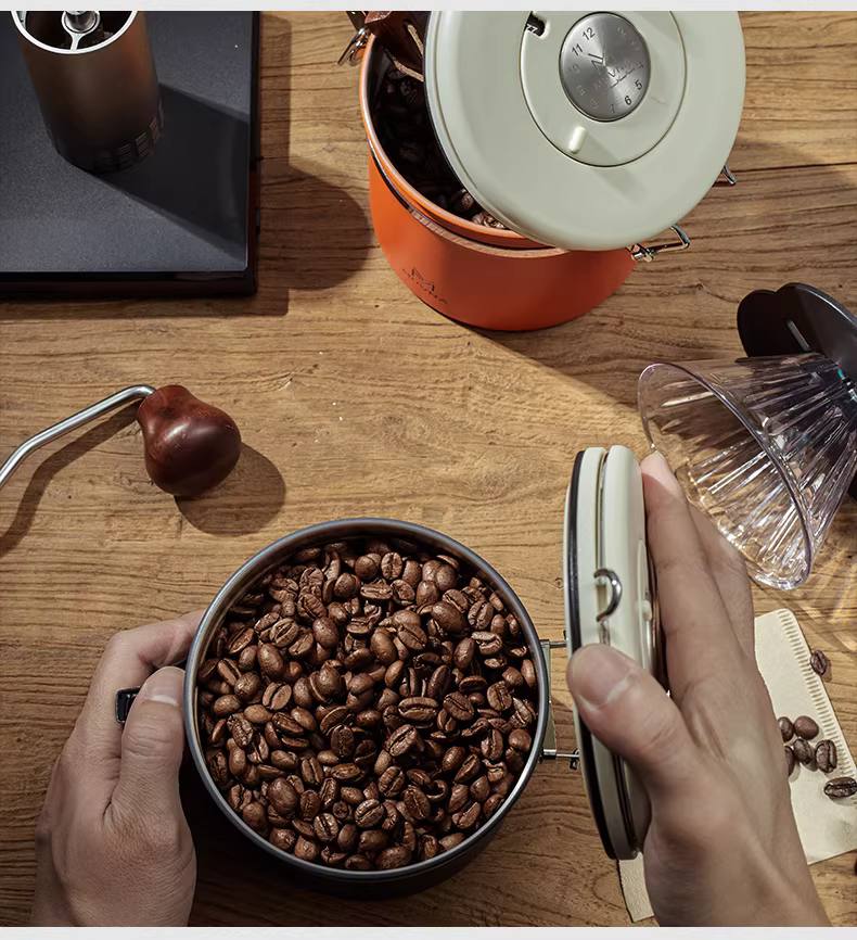 - Hộp đựng cà phê bằng thép không gỉ MUVNA, kín khí, có van một chiều để bảo quản và ủ cà phê.
