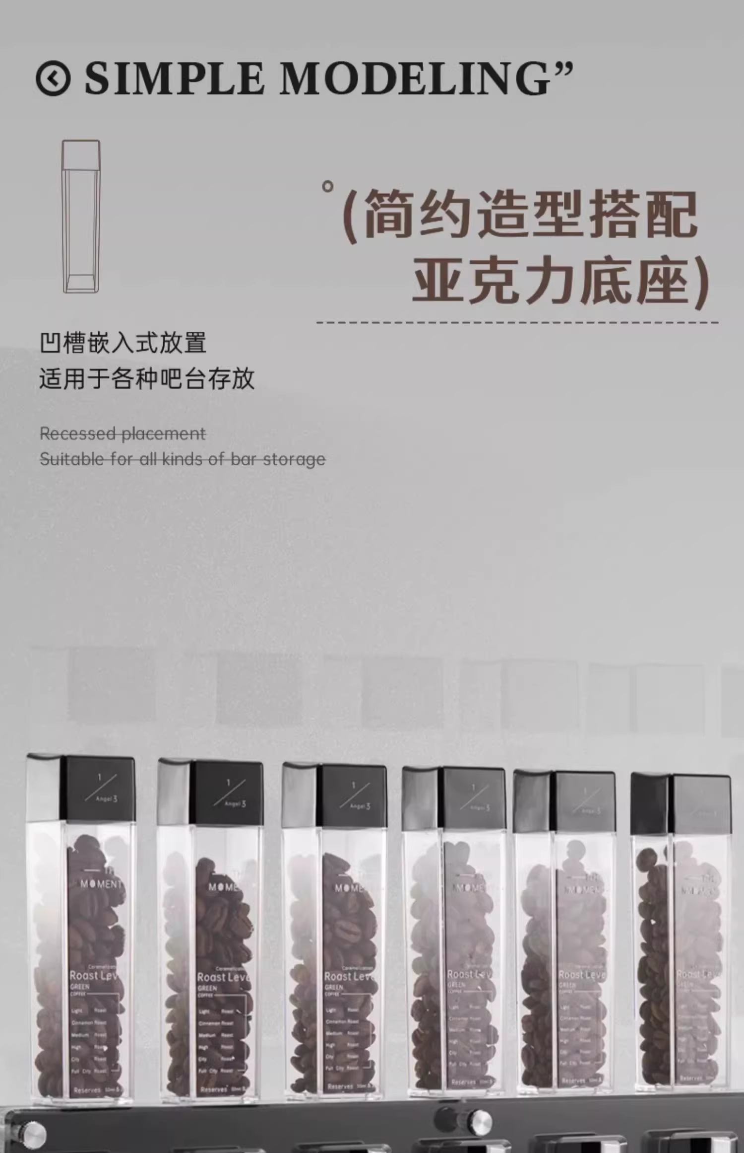 Hộp đựng cà phê bột MUVNA, ống trưng bày kín khí, ống nghiệm phân phối, giá trưng bày ống nghiệm, chai đựng hương thơm KONA