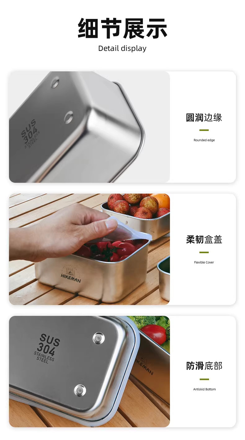 Hộp giữ lạnh cắm trại bằng thép không gỉ 304, hộp đựng đồ ăn ngoài trời, hộp bảo quản kín có nắp, hộp cơm trưa dã ngoại
