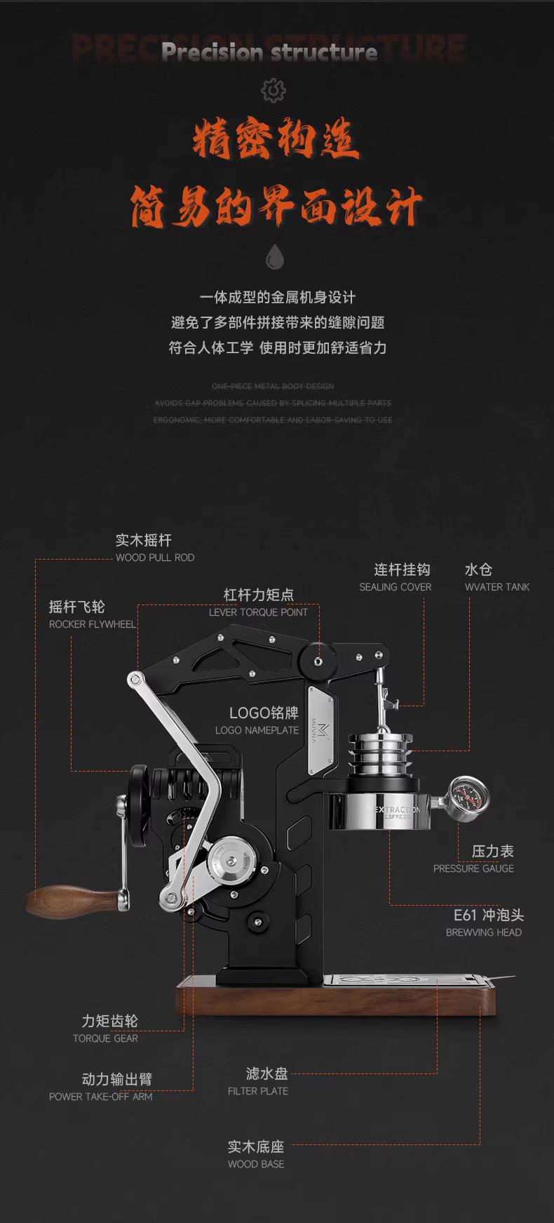 - Hướng dẫn sử dụng máy pha cà phê Ý MUVNA bán tự động E61 Mach M8 hoàn toàn cơ khí, chiết xuất áp suất espresso 58
