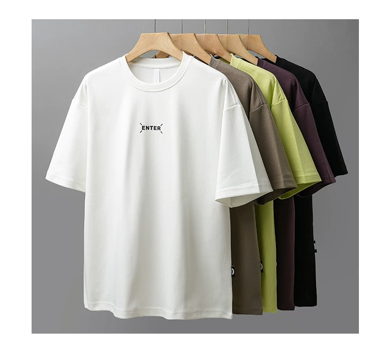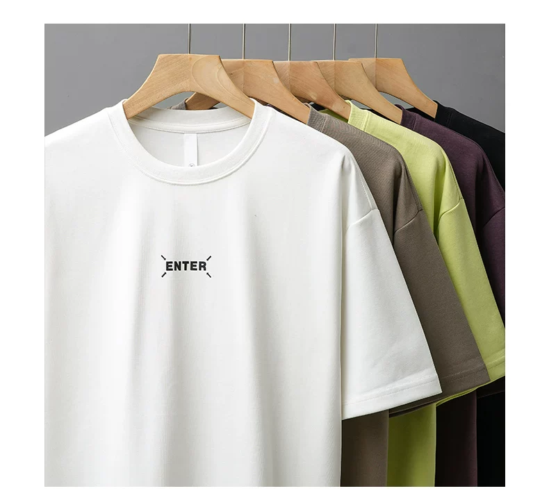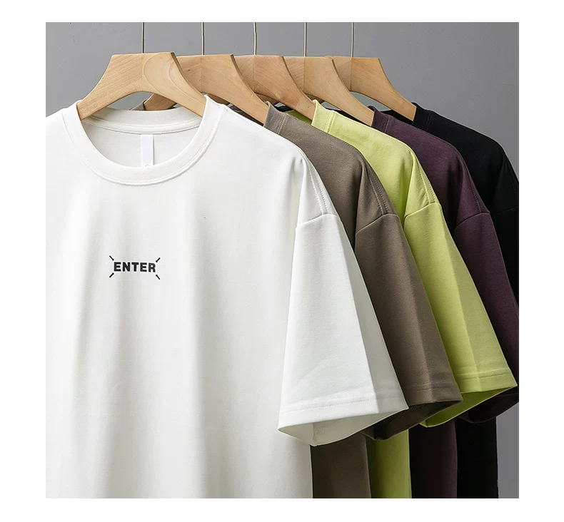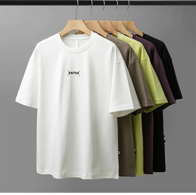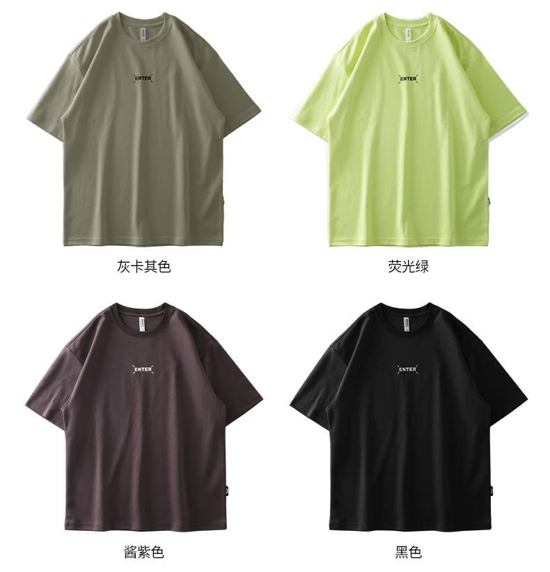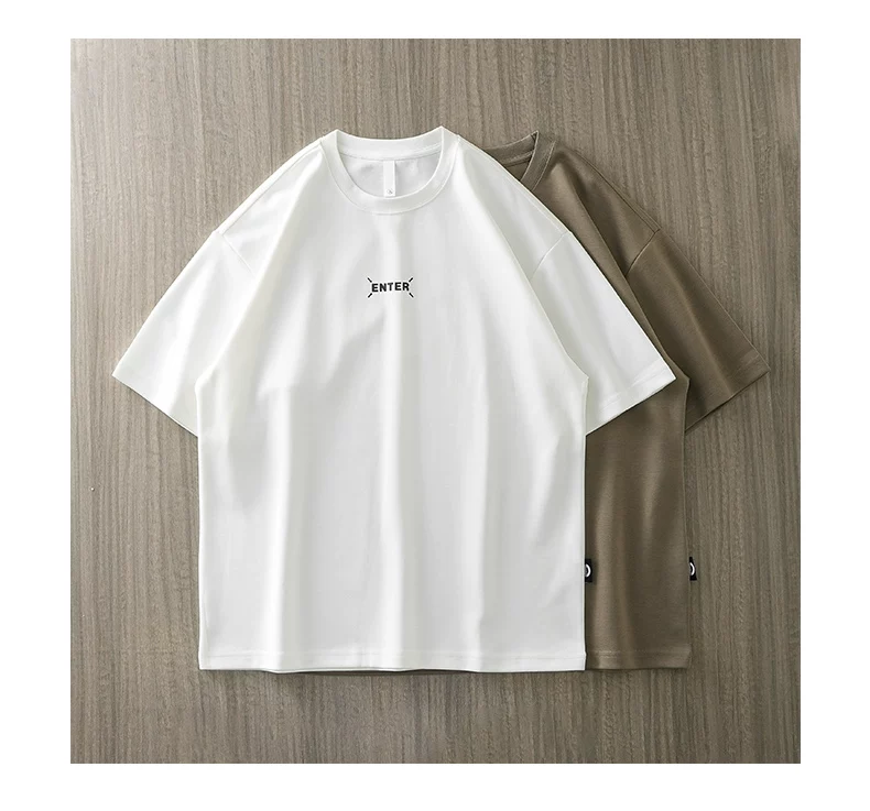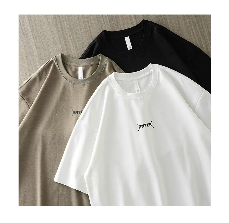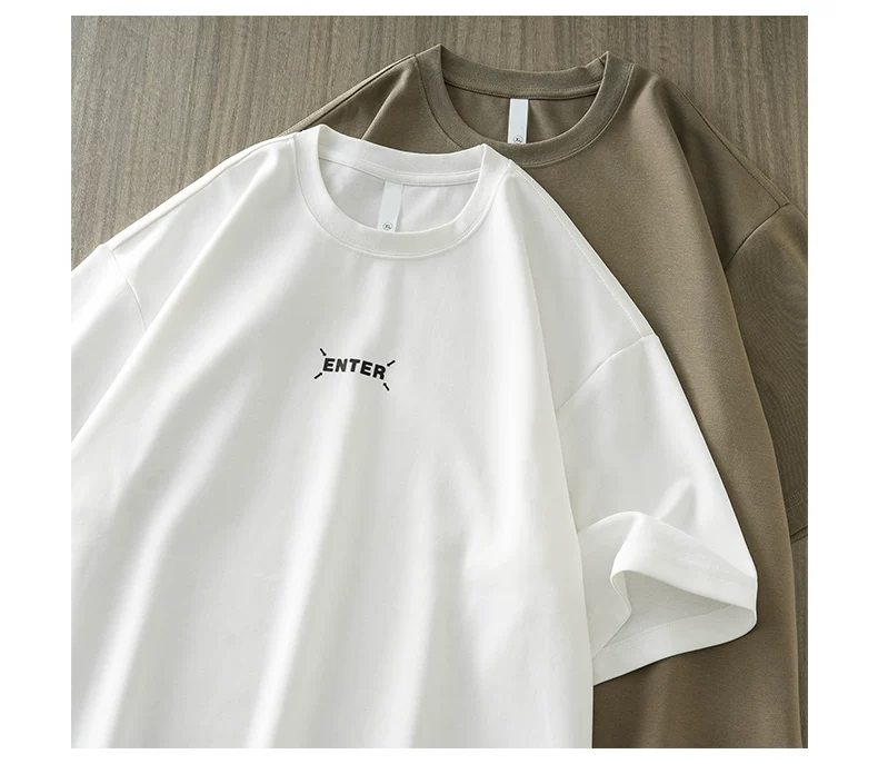 - [In nhãn nhỏ] Áo thun ngắn tay hạng nặng 300G kiểu Mỹ dành cho nam, áo sơ mi cổ tròn nửa tay dáng rộng mùa hè dành cho cặp đôi
