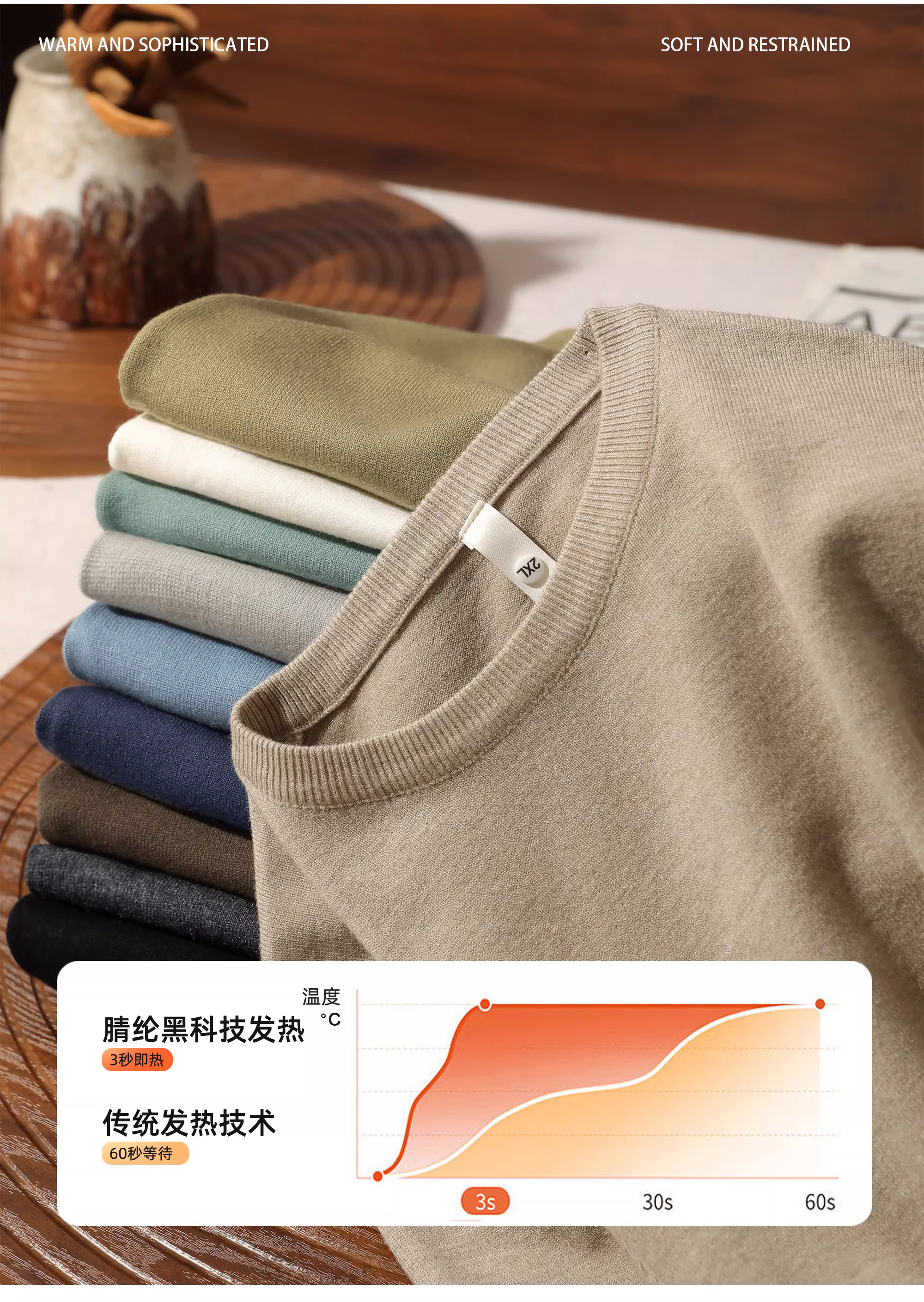 JIEYI Nhiều tùy chọn màu sắc】Áo sơ mi dệt kim màu trơn dành cho nam, ấm áp và có thể mặc một mình hoặc làm áo khoác ngoài, áo len chui đầu cổ tròn, hợp thời trang