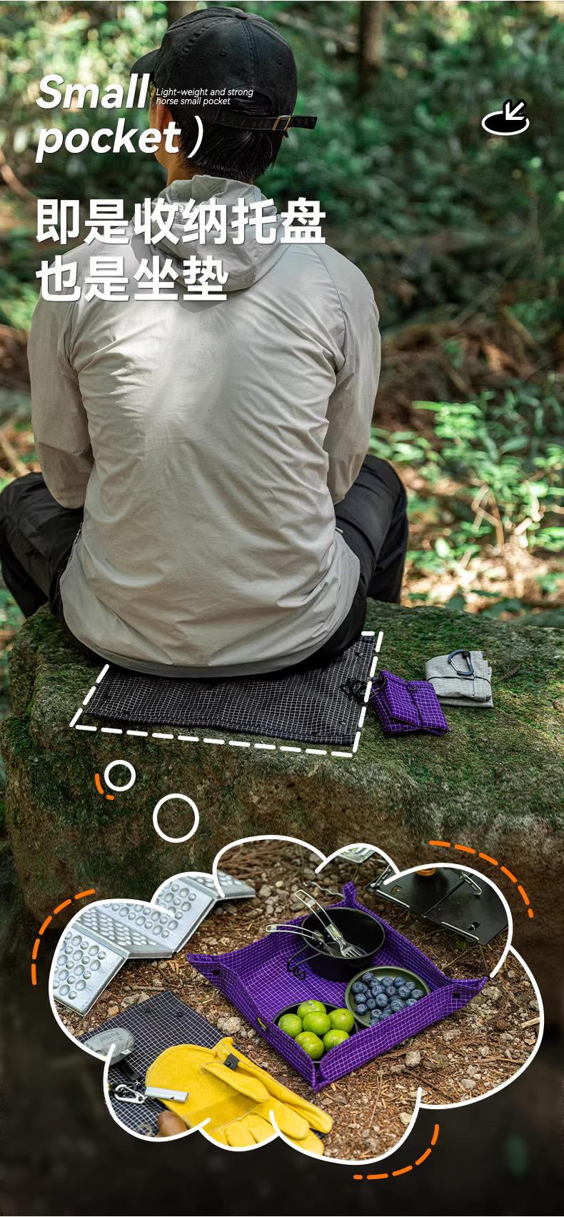 - Khay đựng đồ nhỏ gọn, nhẹ, dùng cho đi bộ đường dài ngoài trời, bàn cắm trại bền, chống thấm nước, thảm leo núi di động